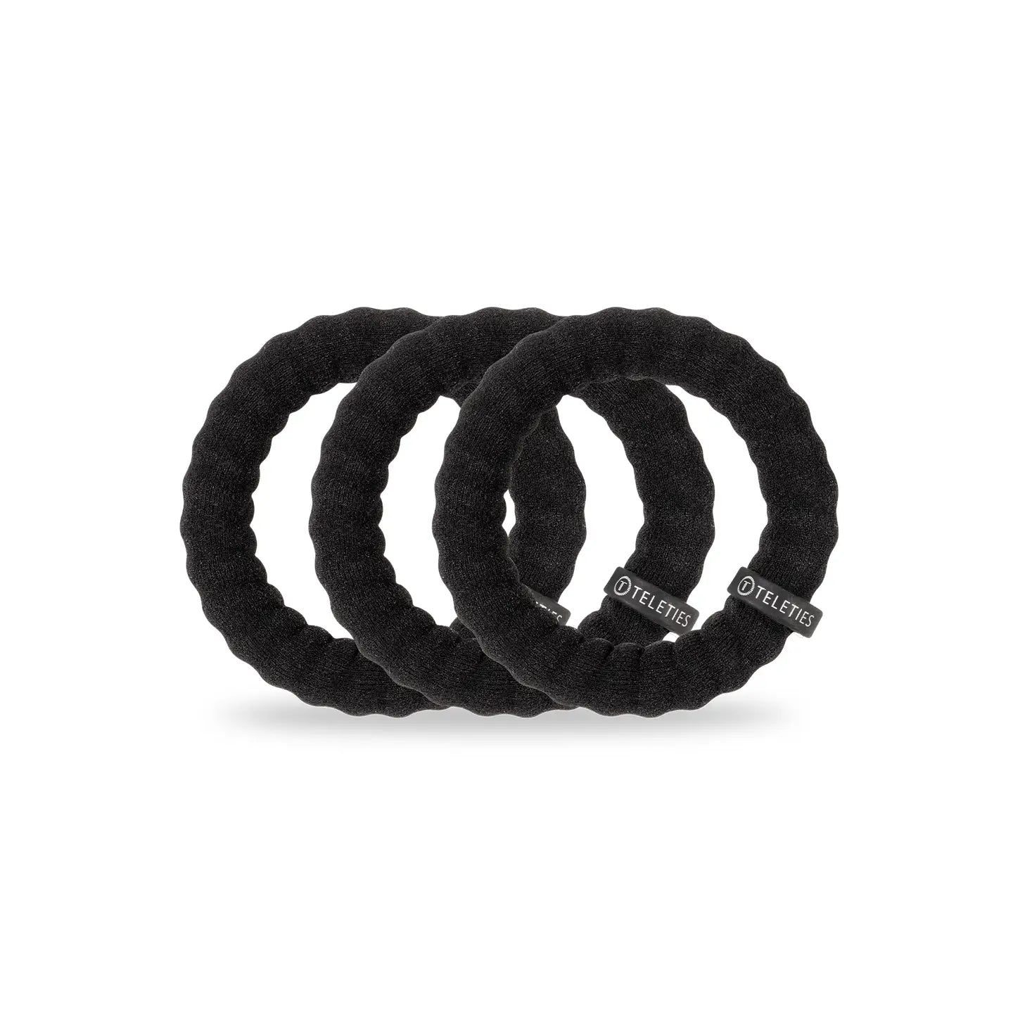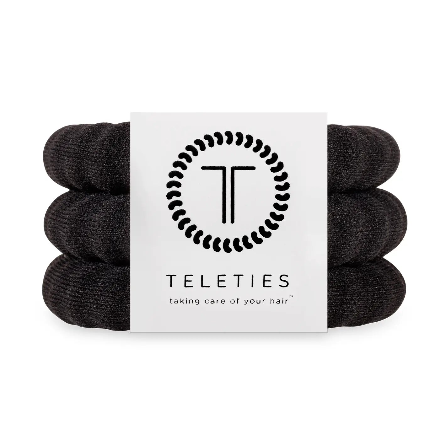 Meet the curl-friendly upgrade your pony has been waiting for. TELETIES’ Jet Black Large Nylon Hair Ties feature their iconic coil design wrapped in ultra-soft nylon for added comfort, reduced creasing, and maximum curl + texture protection. Strong enough for thick hair days and gentle enough for curls that need extra love.