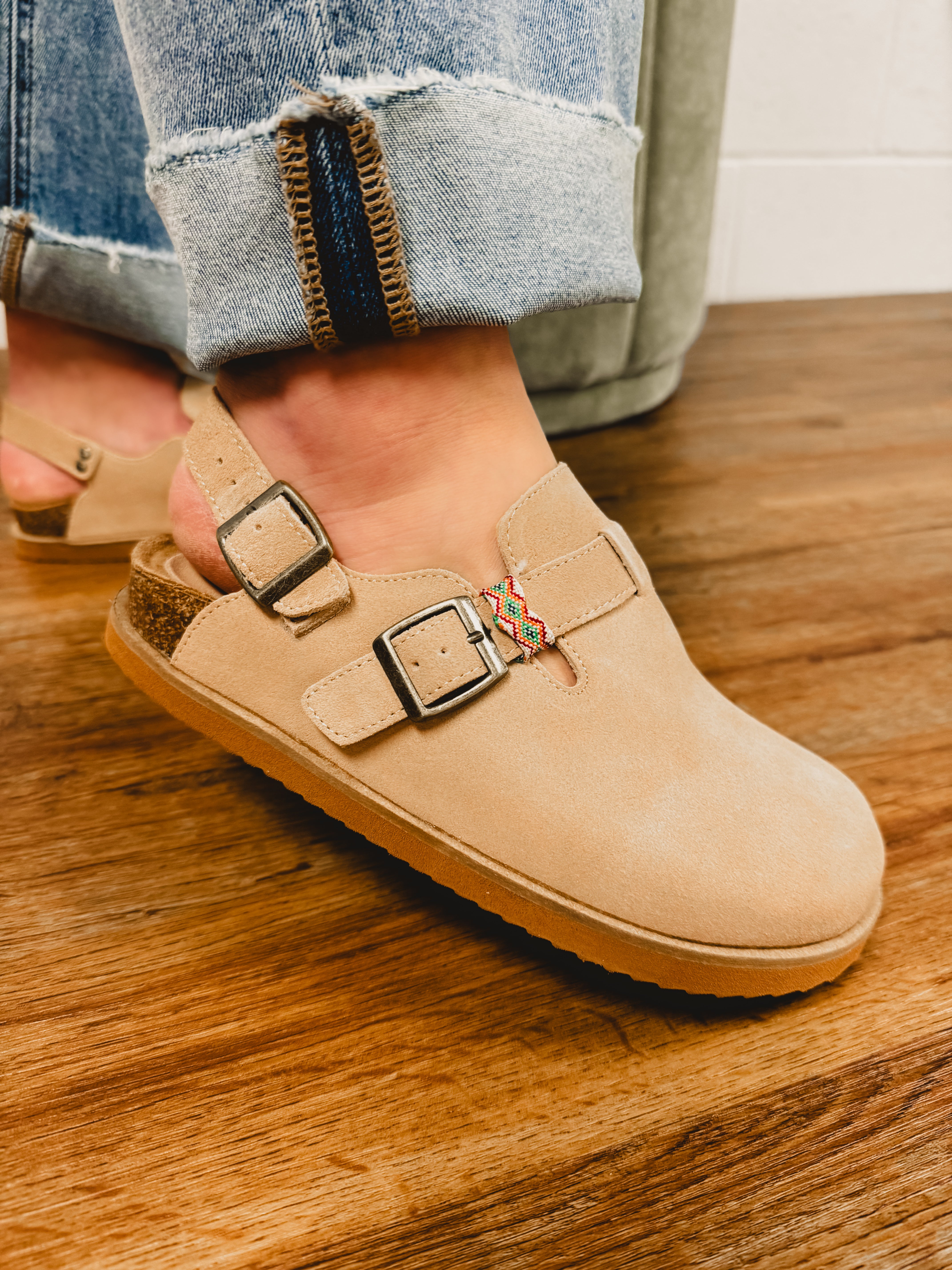 Step into effortless comfort and timeless style with the Estelle slingback clog. Designed with a soft suede finish and a secure slingback strap, this versatile clog blends relaxed boho charm with everyday practicality.