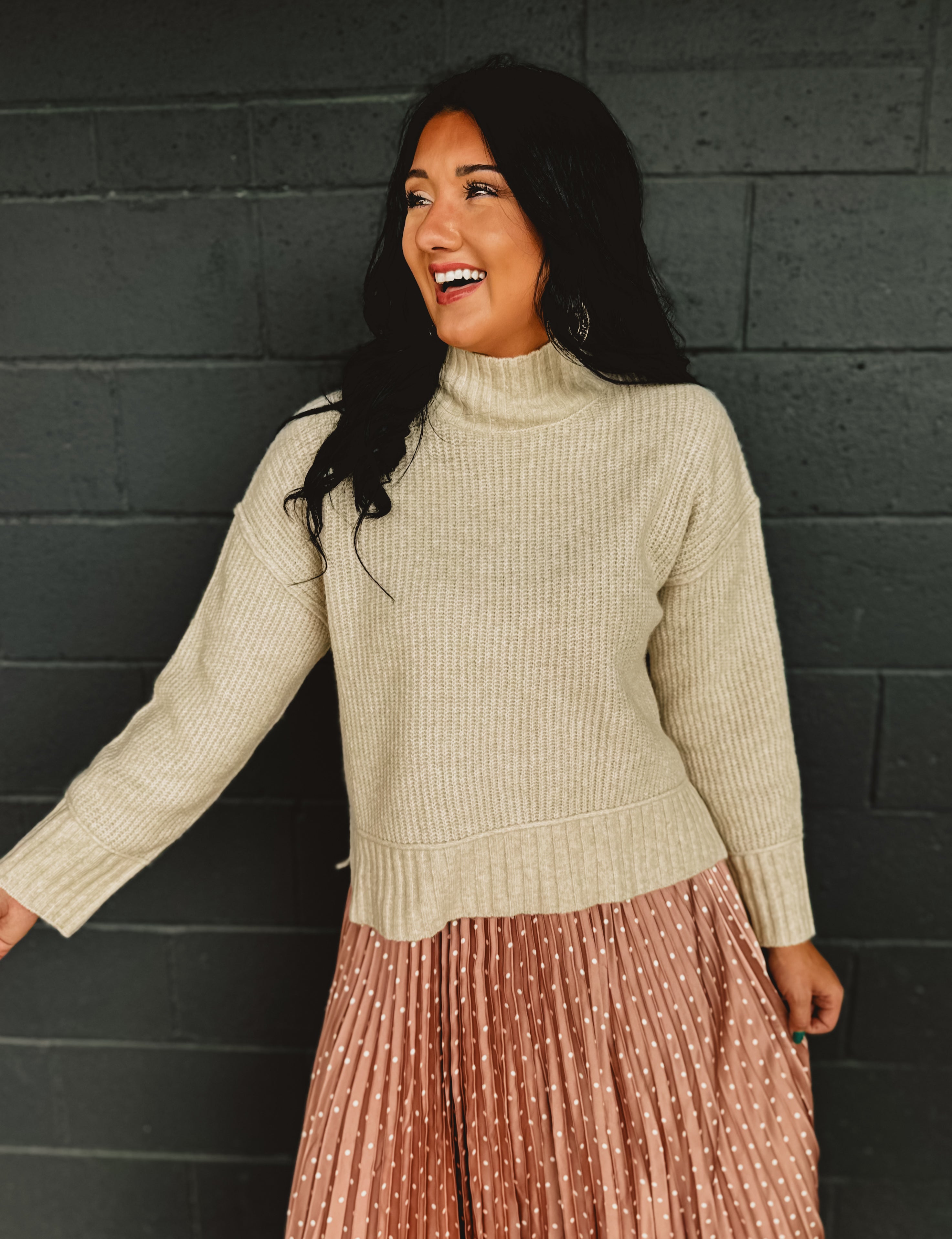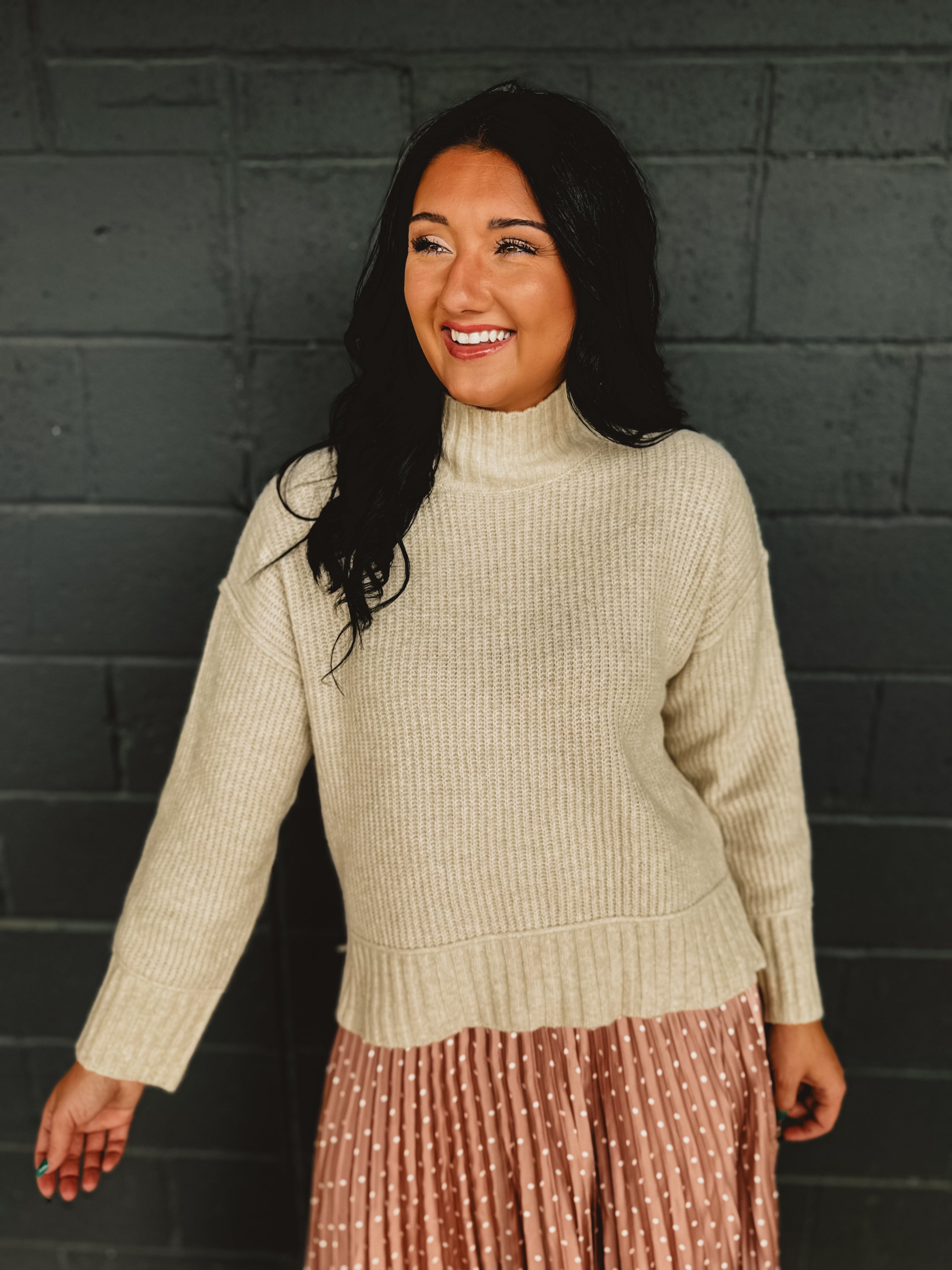 A timeless sweater designed with a mock neck and soft knit feel, it balances casual comfort with a clean style that works from lounging at home to stepping out in the city.
