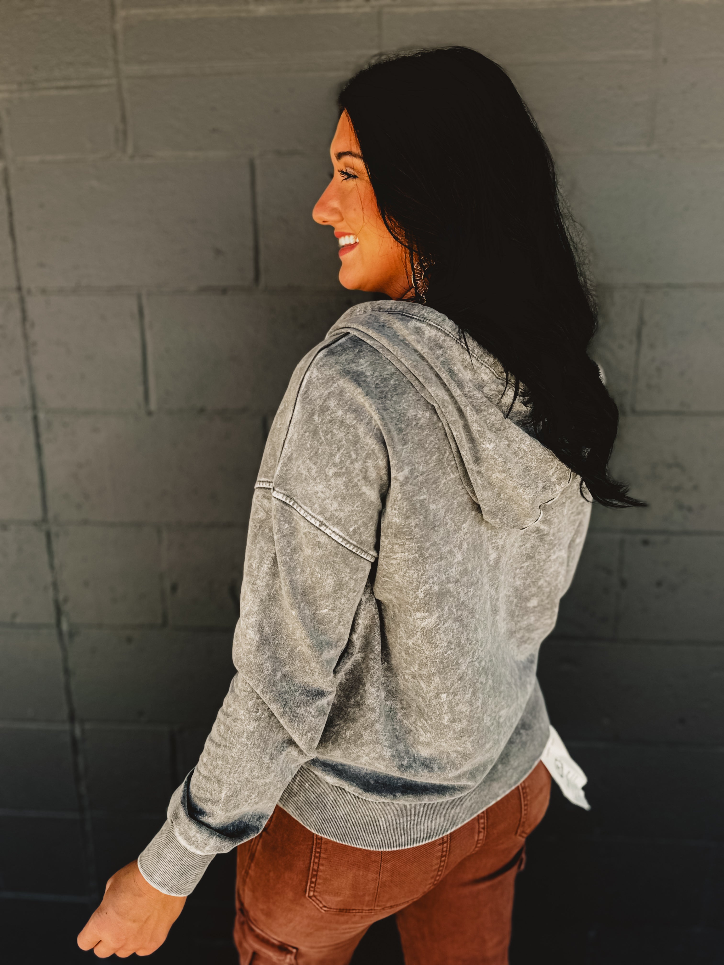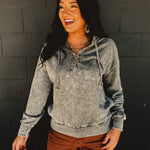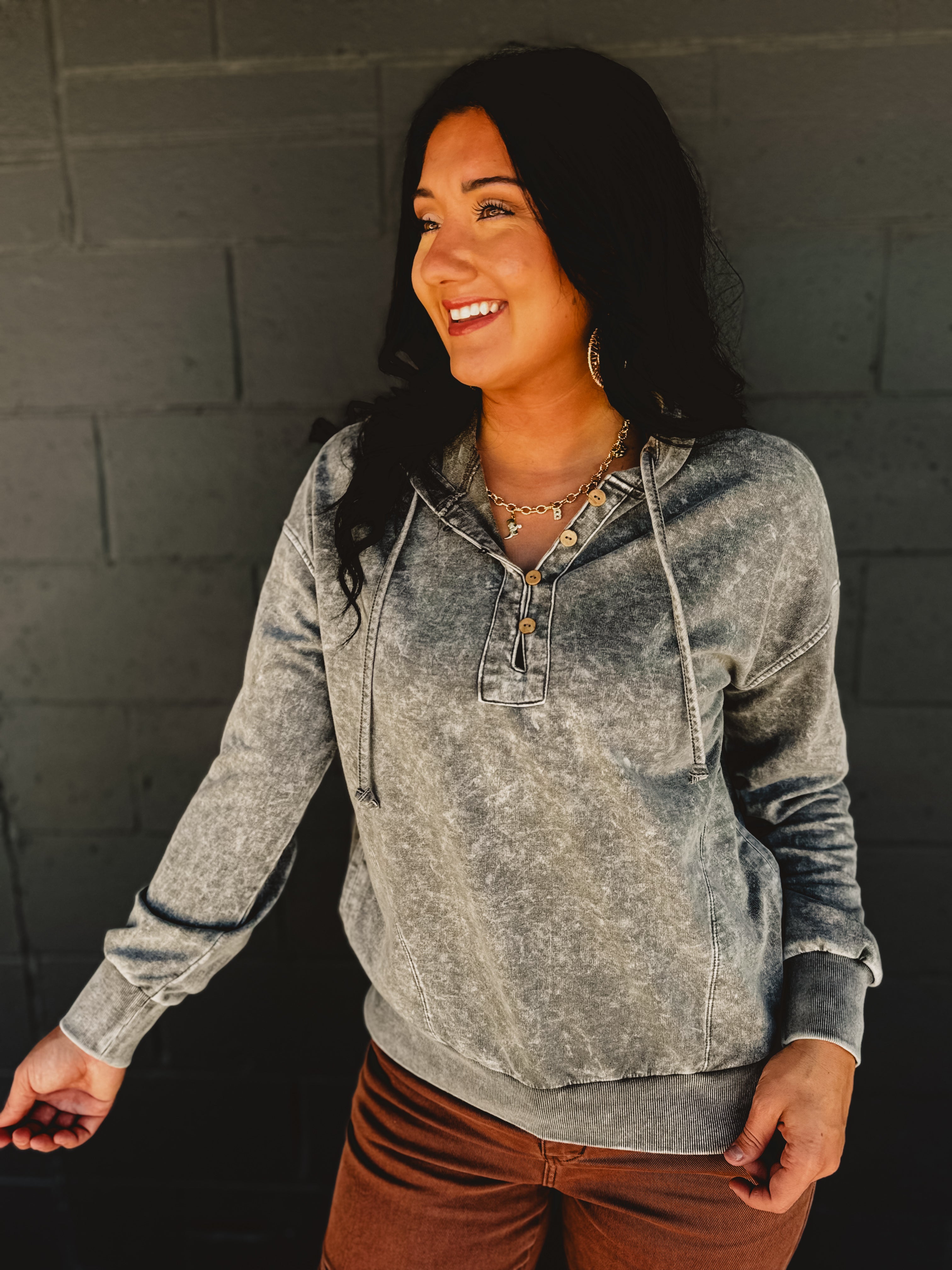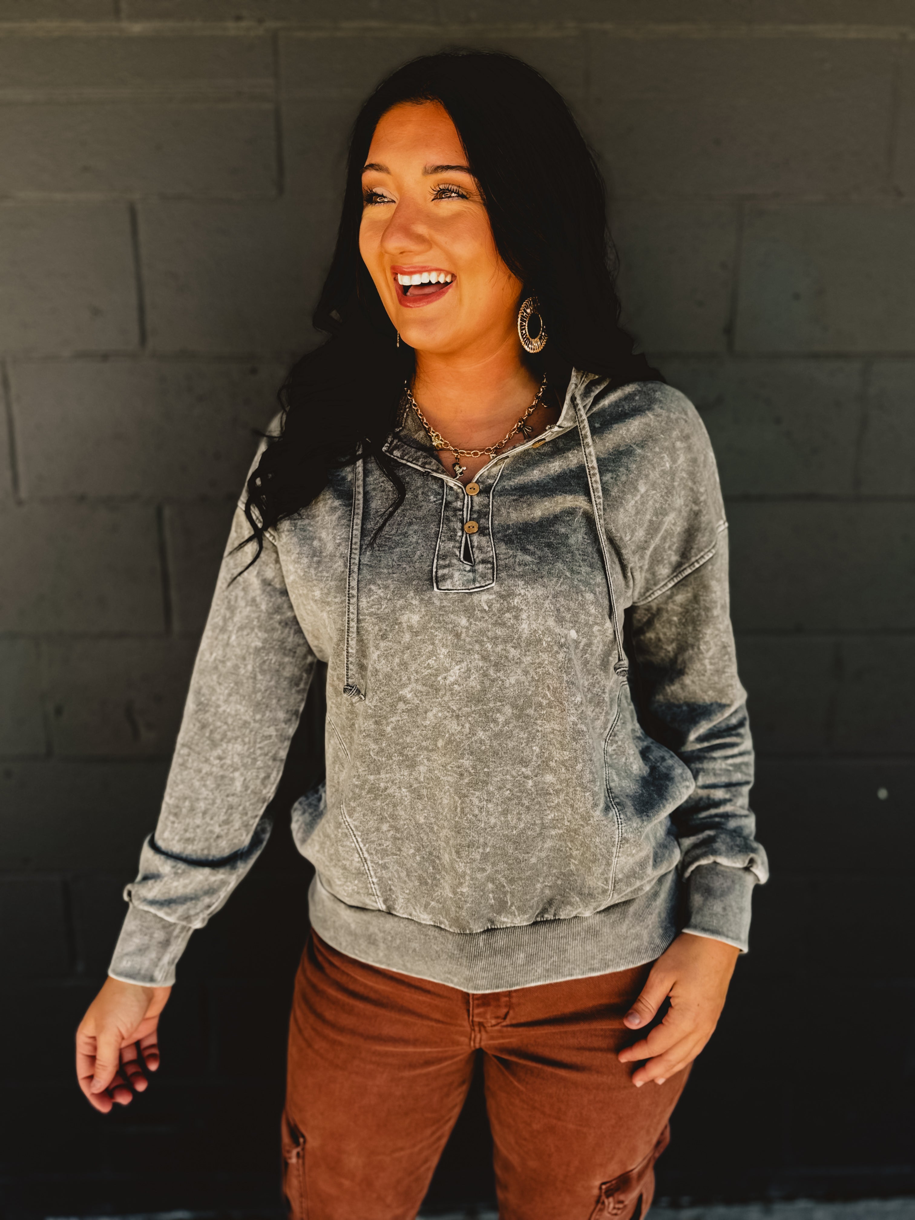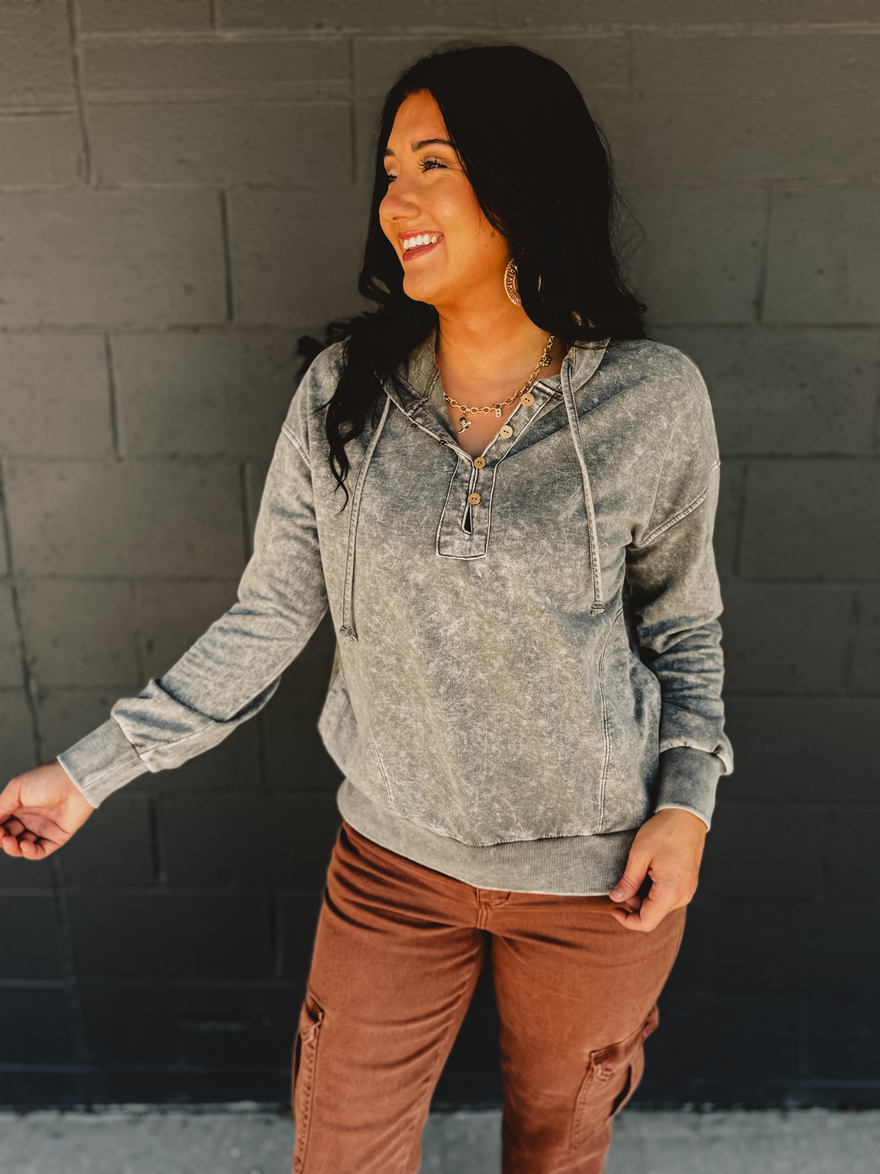 Laid-back and effortless, this washed hooded top in stone features button details for a casual-chic finish. The perfect throw-on style for everyday wear.