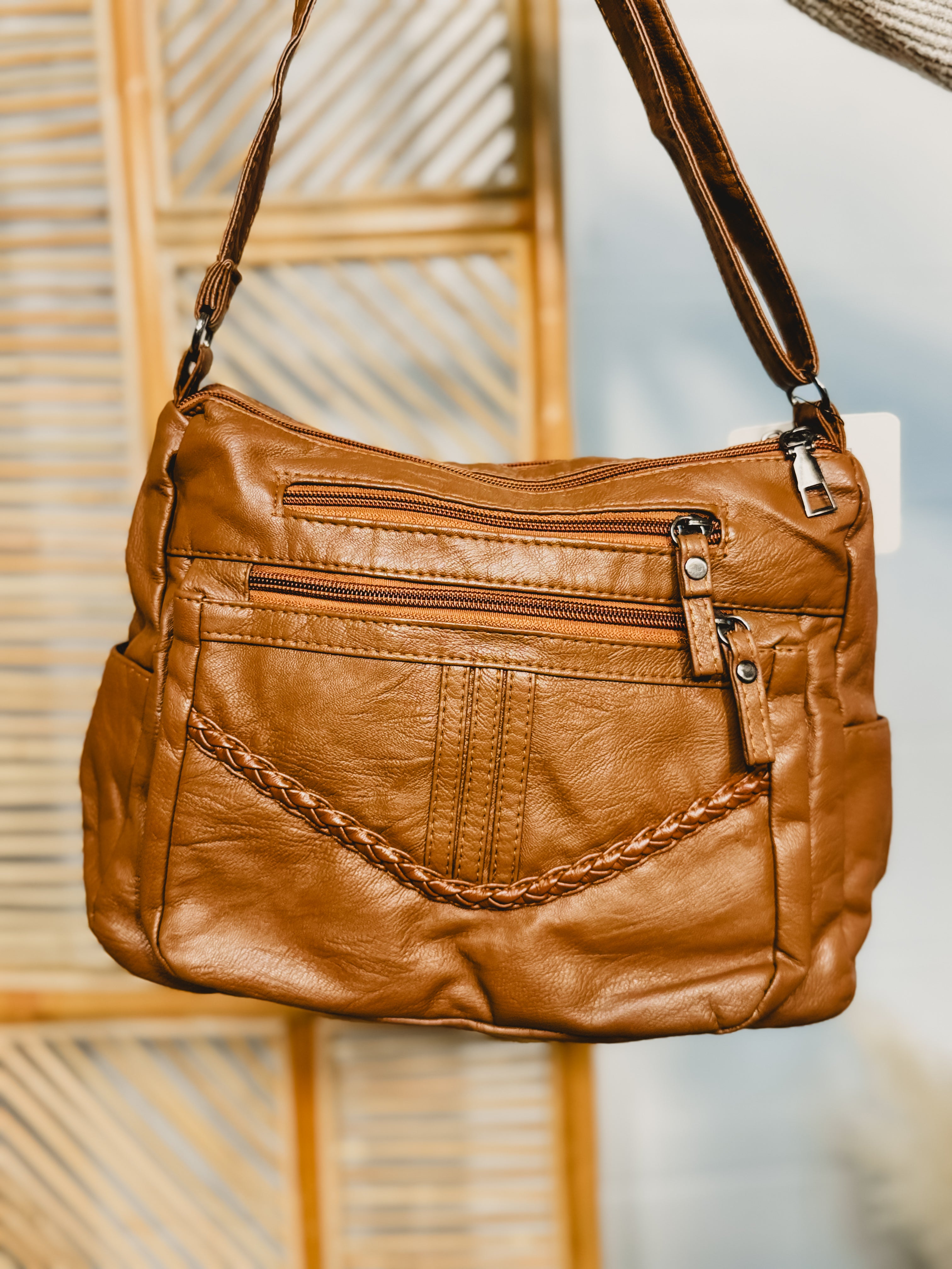 Warm, timeless, and effortlessly western — this camel shoulder bag offers a roomy interior, rustic charm, and everyday practicality. Its soft neutral tone makes it an easy match for any outfit, from denim days to weekend outings.