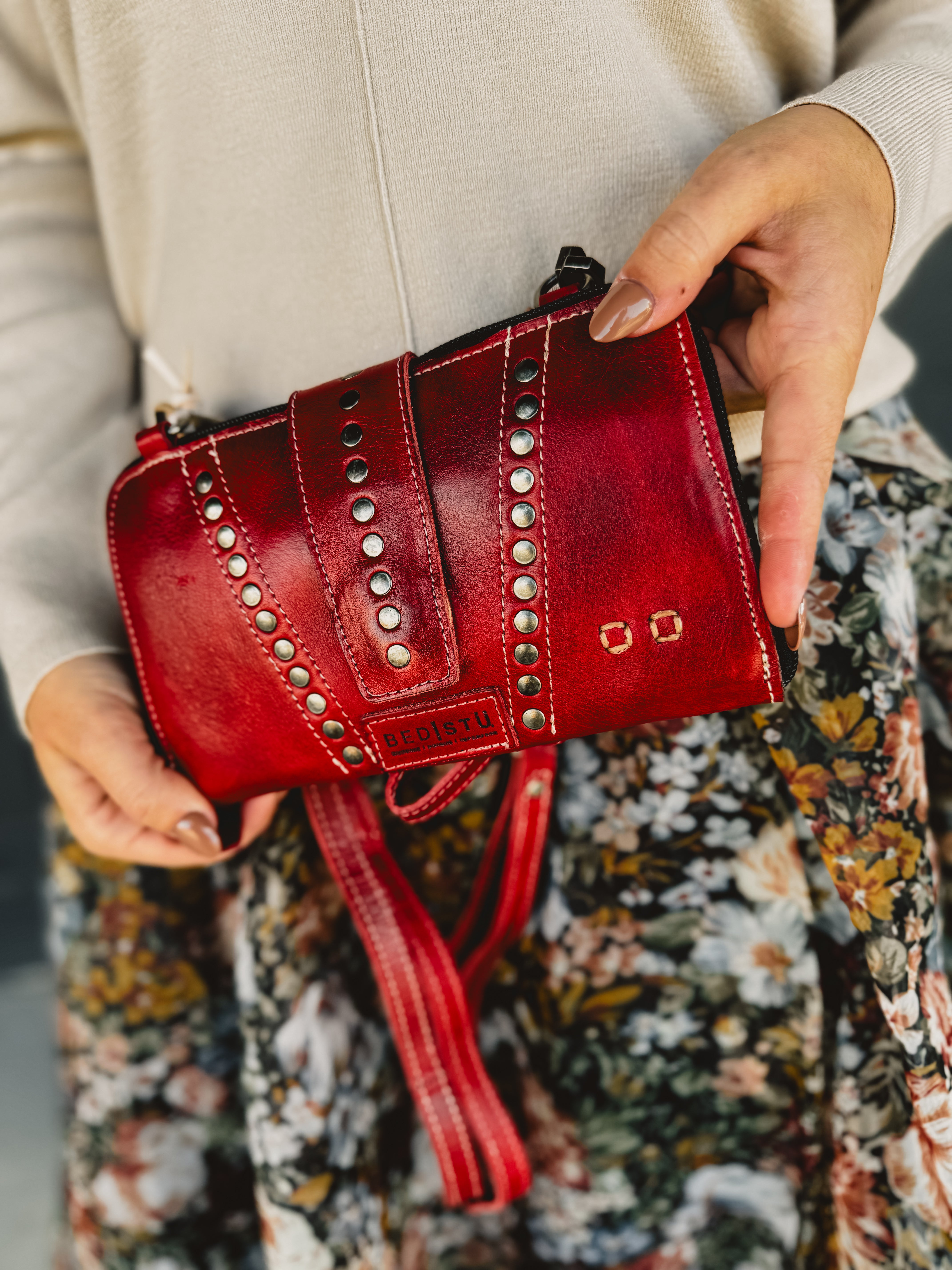 Crafted with artisan detail, the Bedstu Flee Wallet in deep red offers a bold yet timeless look with practical design, perfect for everyday essentials.