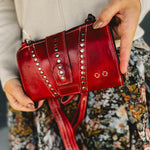 - Multi-purpose wallet and crossbody bag with stud details on front flap, adjustable and removable strap