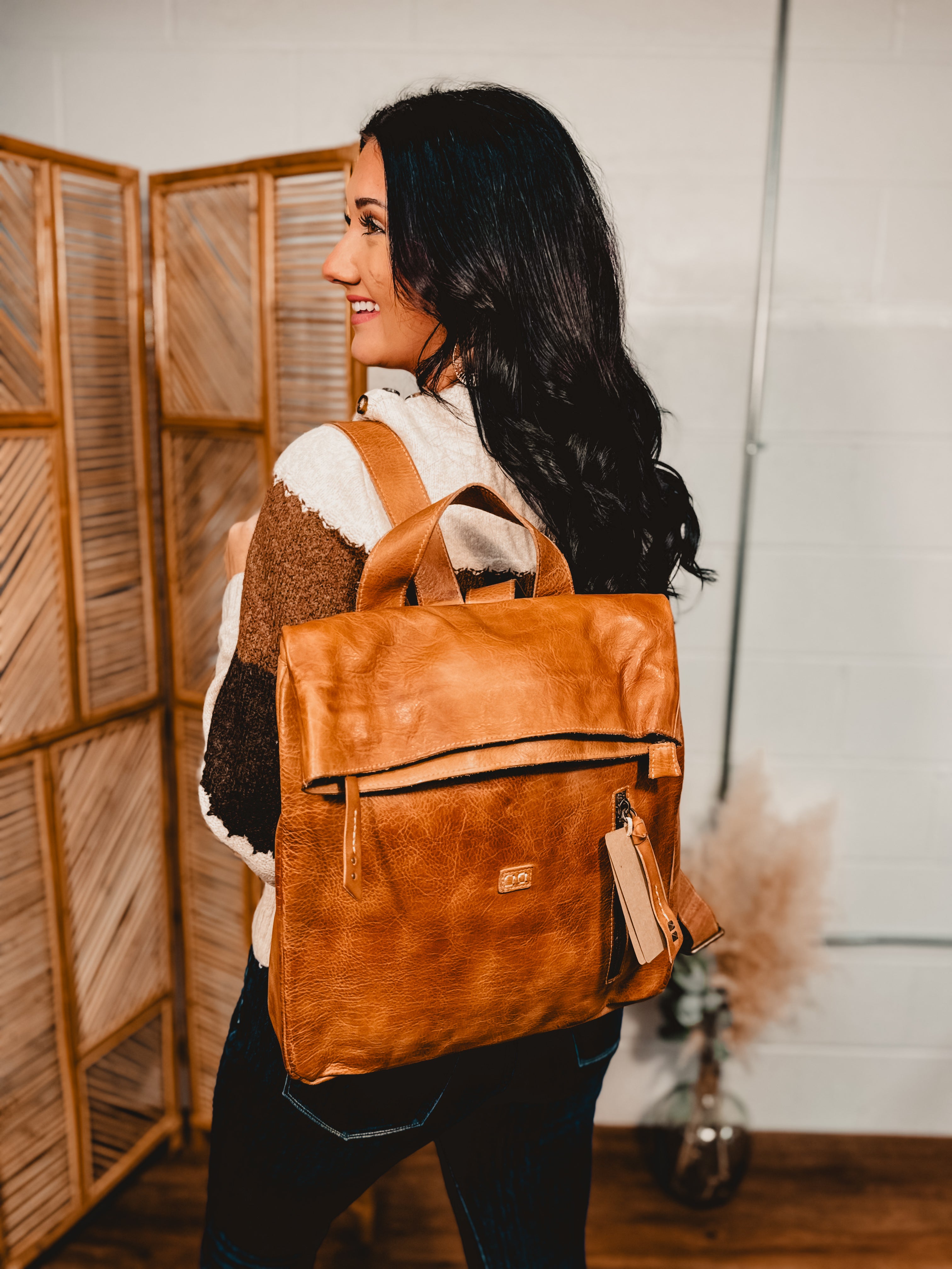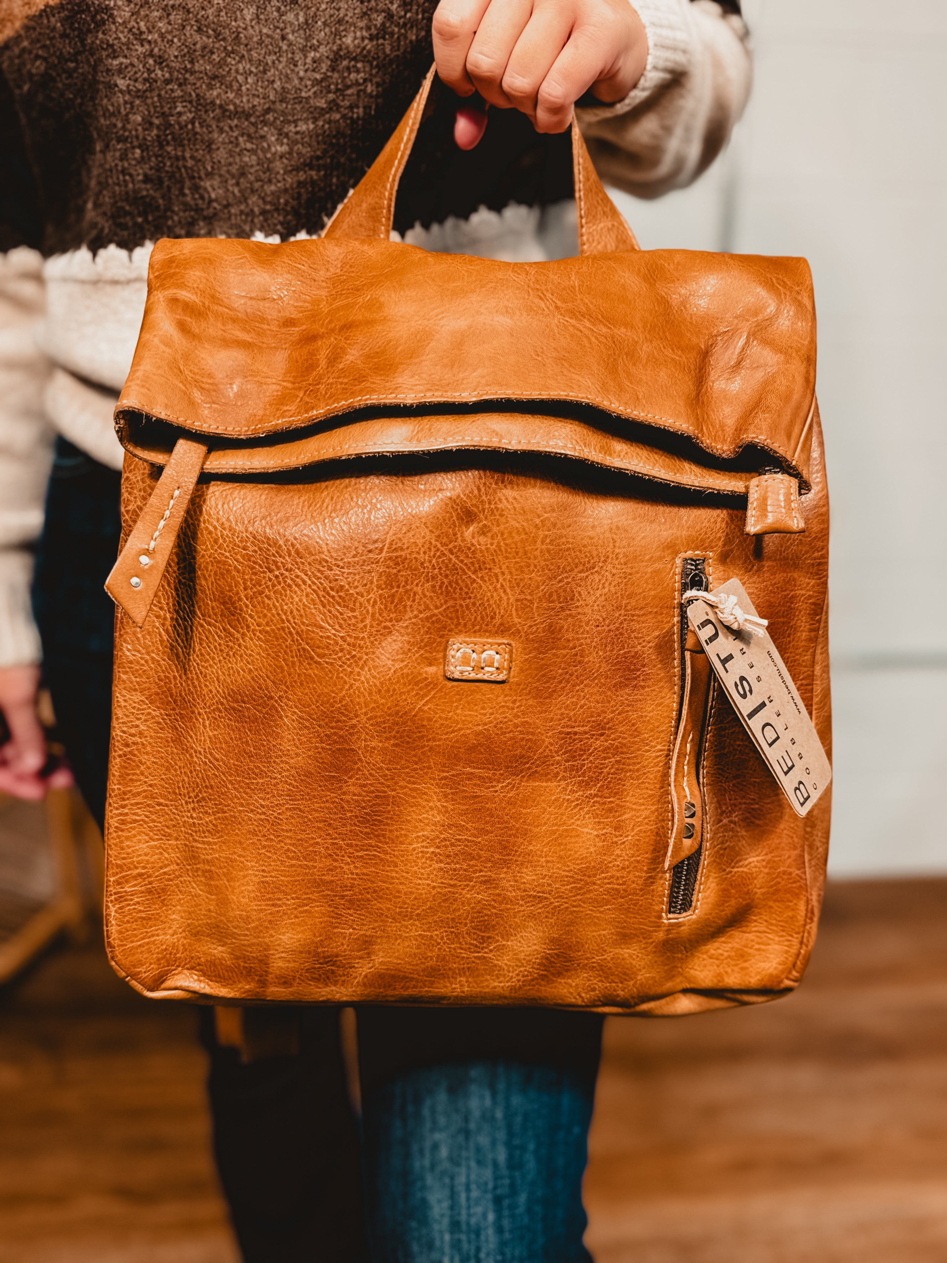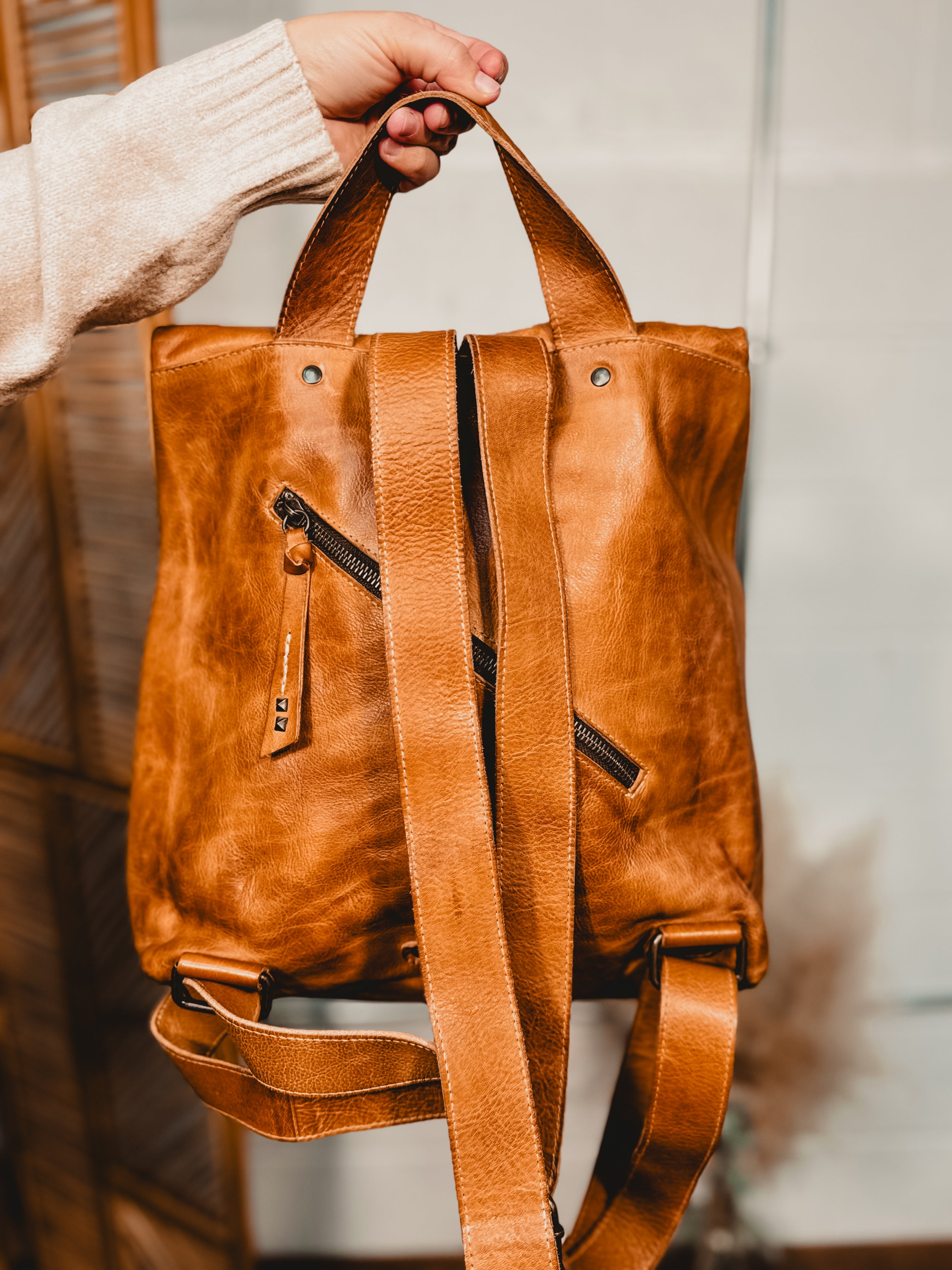 Crafted in hand-finished rustic tan leather, this artisan backpack combines timeless style with practical design, perfect for workdays or weekend adventures!