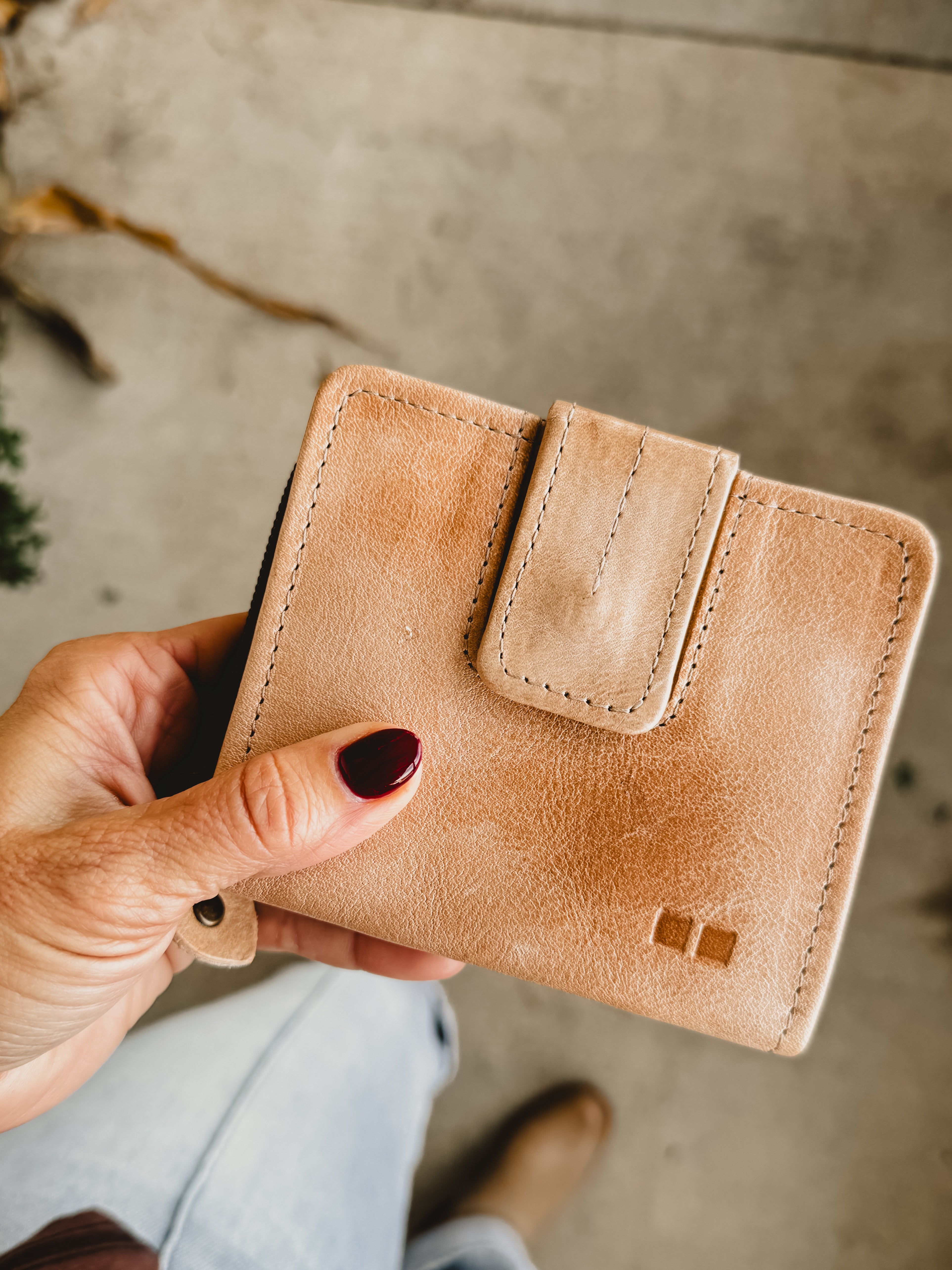 Made from genuine leather, this wallet in an oats finish blends timeless Bedstu craftsmanship with practical design, keeping your essentials organized in style.