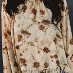 Floral Print Ruffle Chiffon Blouse - Taupe