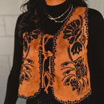 Boho-chic and timeless, this mocha vest features intricate crochet detailing and a flattering front tie closure—perfect for layering over your favorite fall looks!