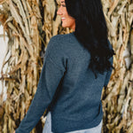 Waffle Knit Henley Side Slit Top - Dark Teal