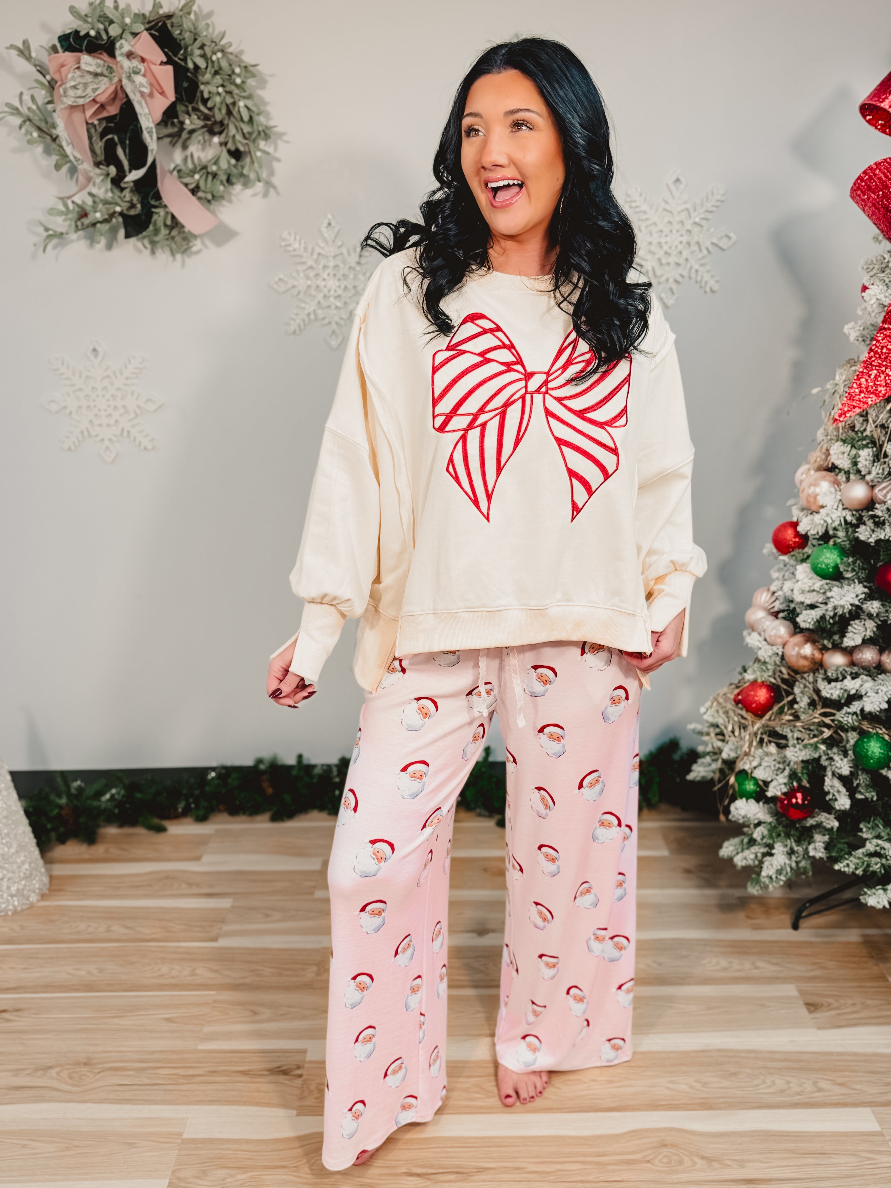 Santa Claus Christmas Pajama Pants - Baby Pink
