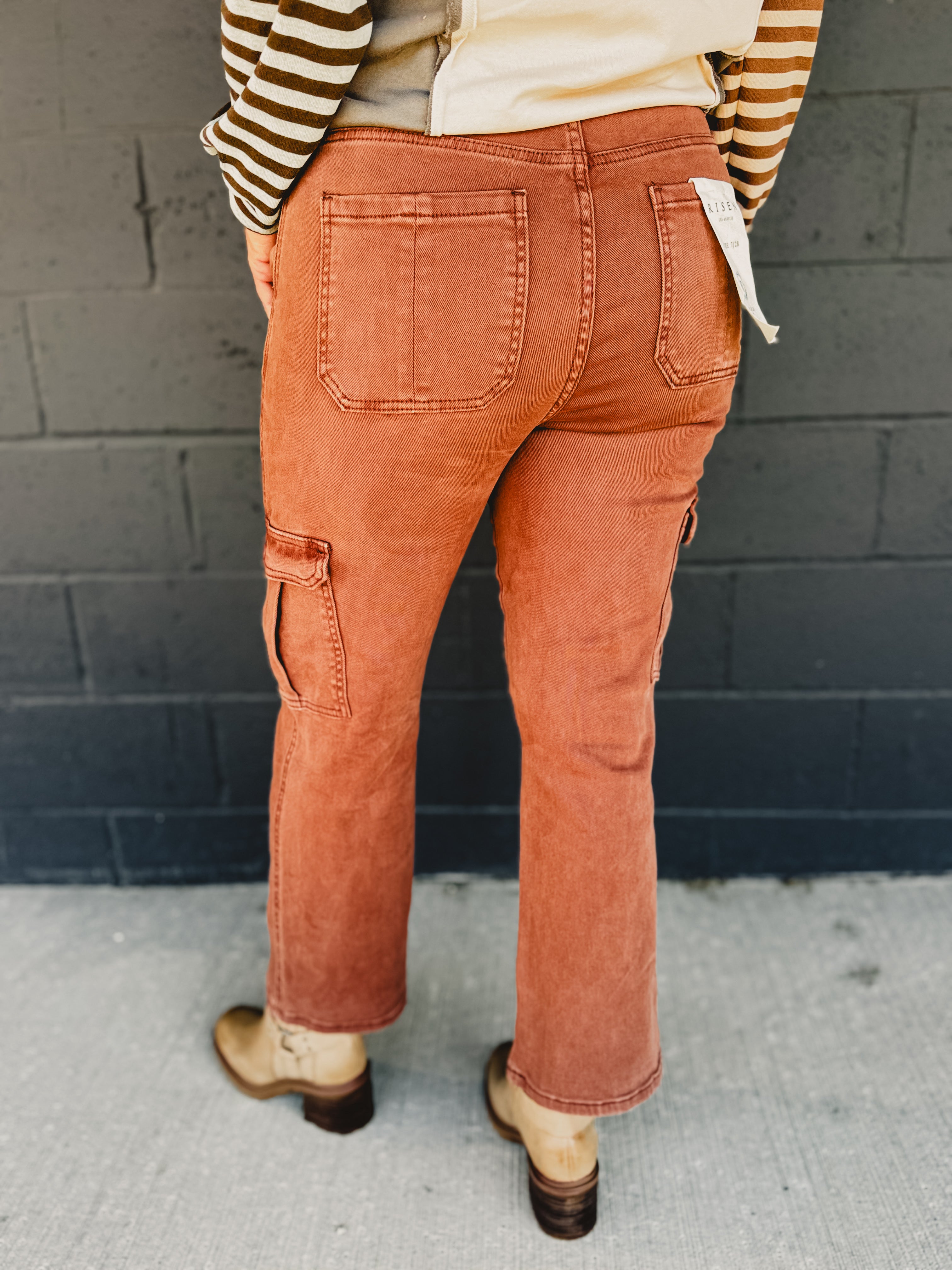 Utility meets style with these high rise cropped straight cargo pants in a rich espresso shade. Effortlessly cool and versatile, they’re perfect for everyday wear!