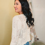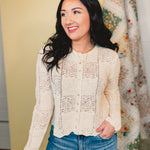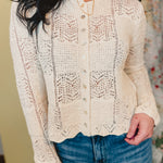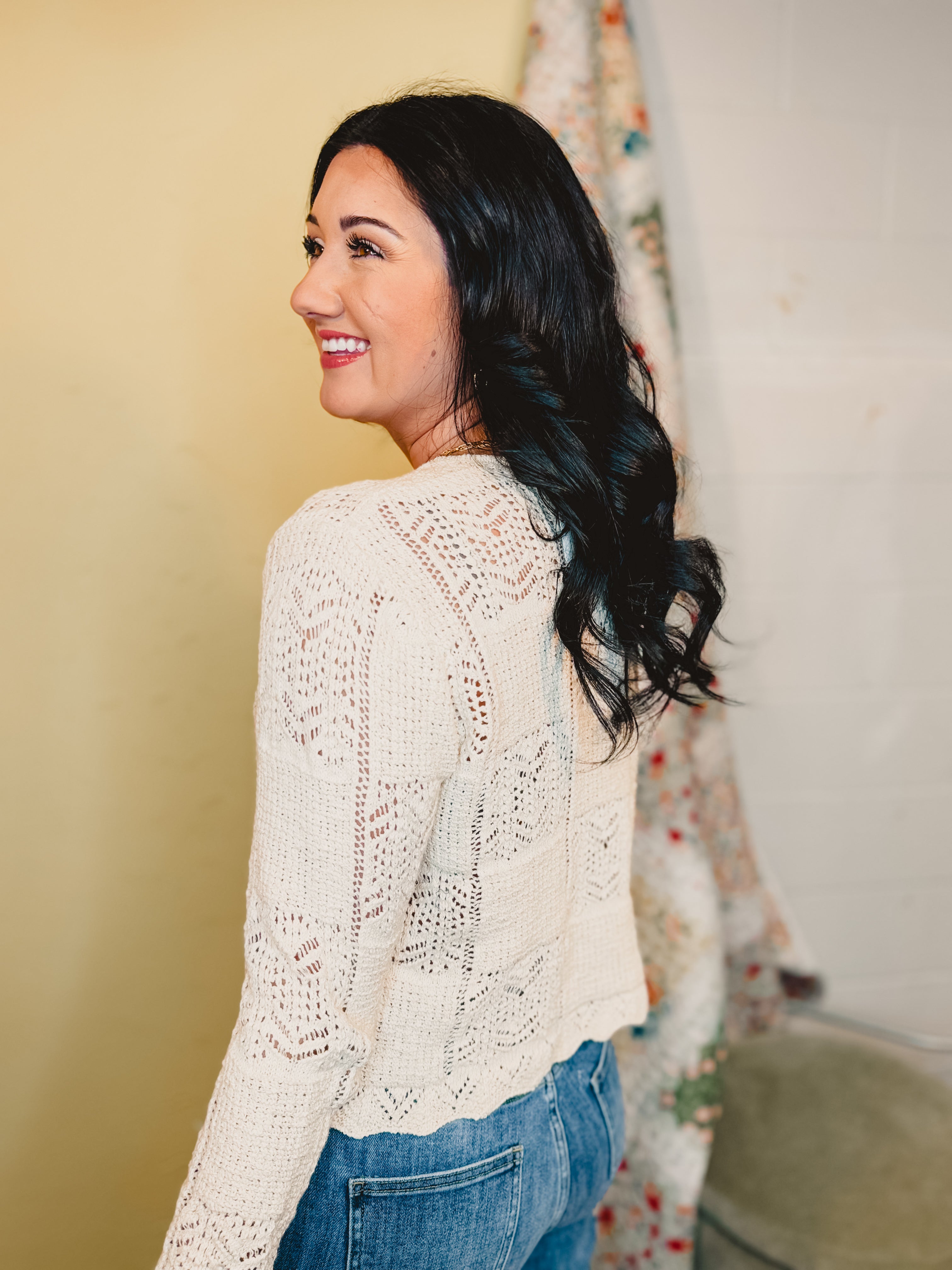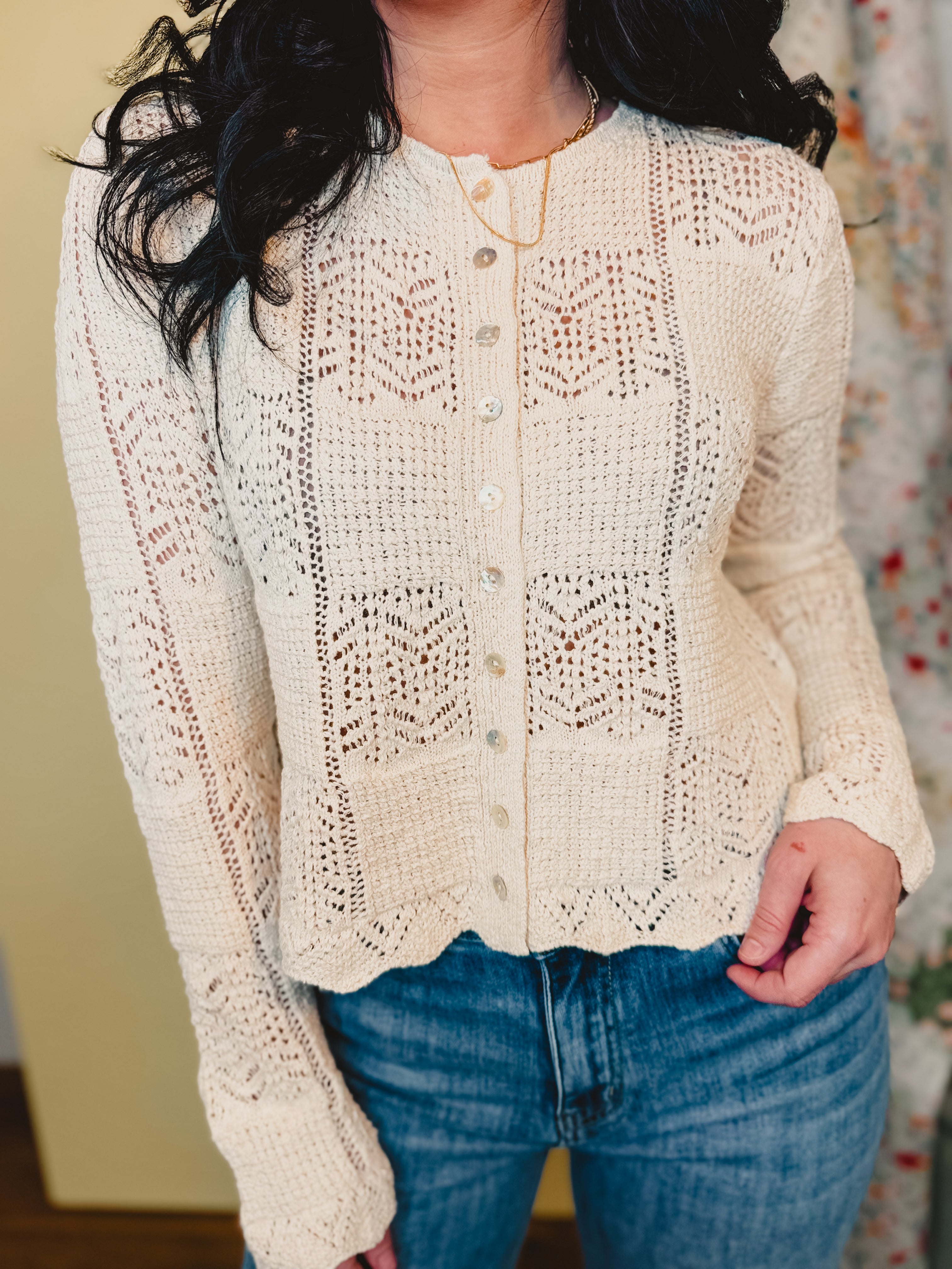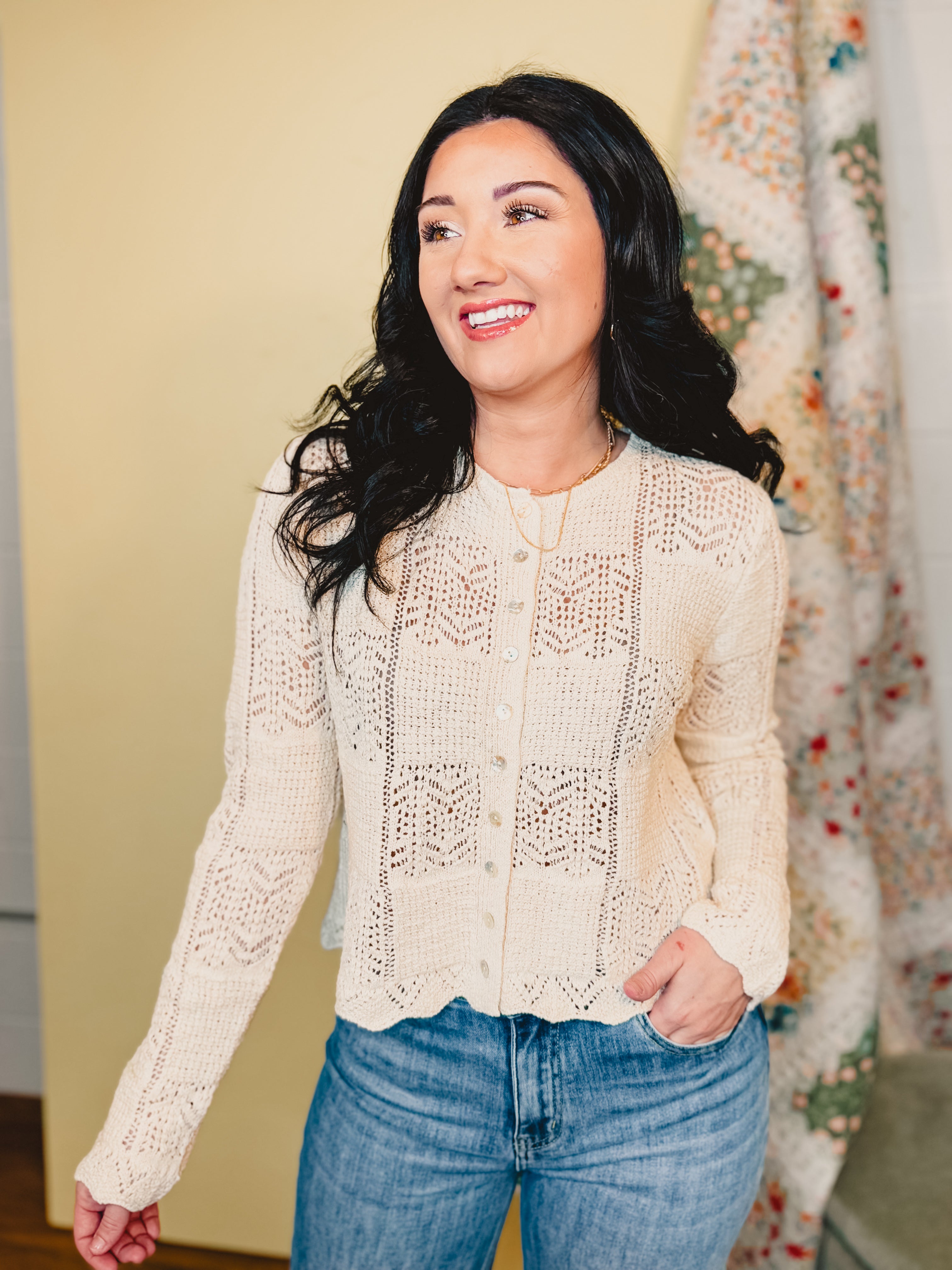 Add texture and charm to any outfit with this multi-crochet button-up sweater. Perfect for layering over dresses and adding pattern to your fit!