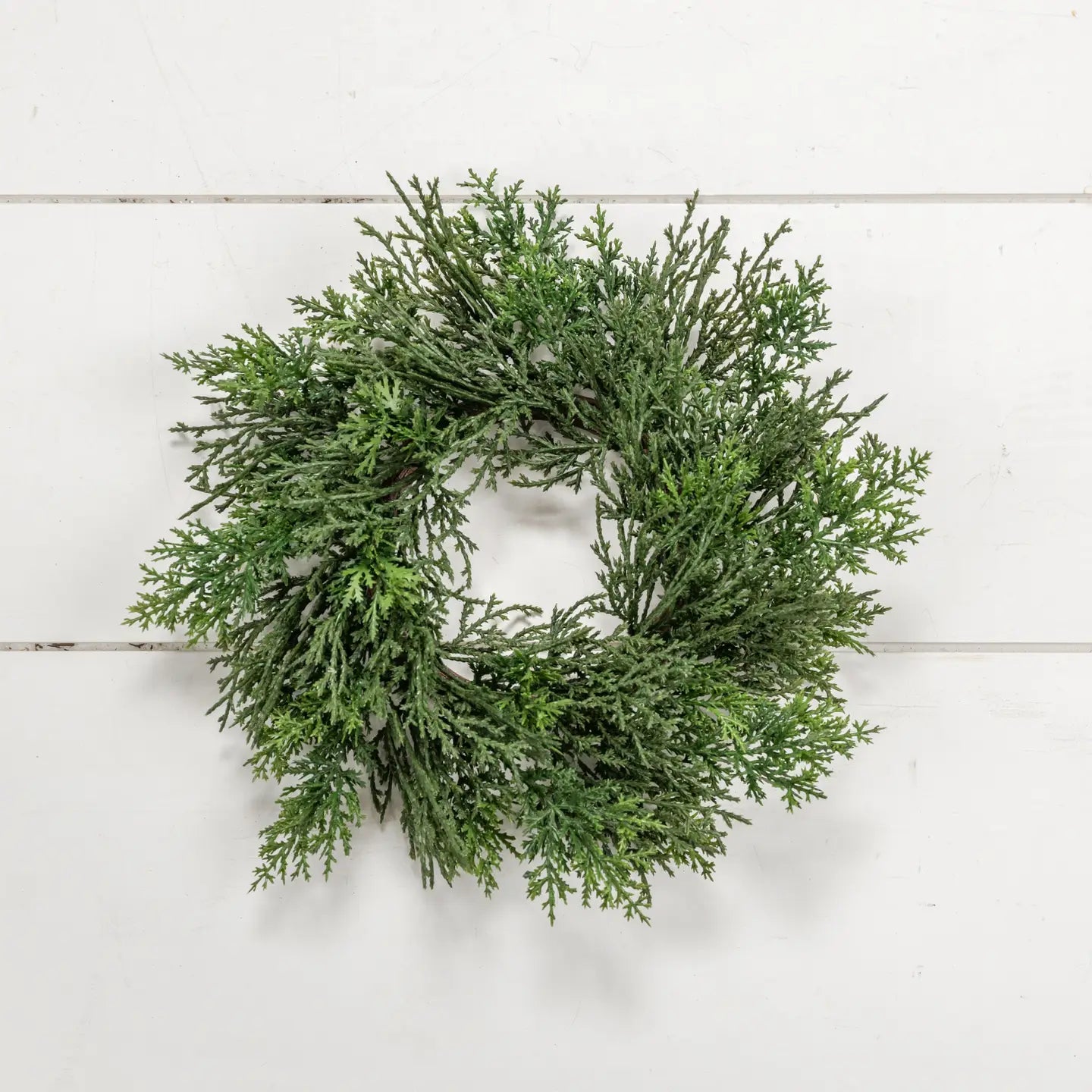 Add a touch of natural, wintery charm to your décor with this lush 10" cedar wreath. Its soft, realistic greenery makes it perfect for layering into shelves, trays, hooks, or holiday displays.