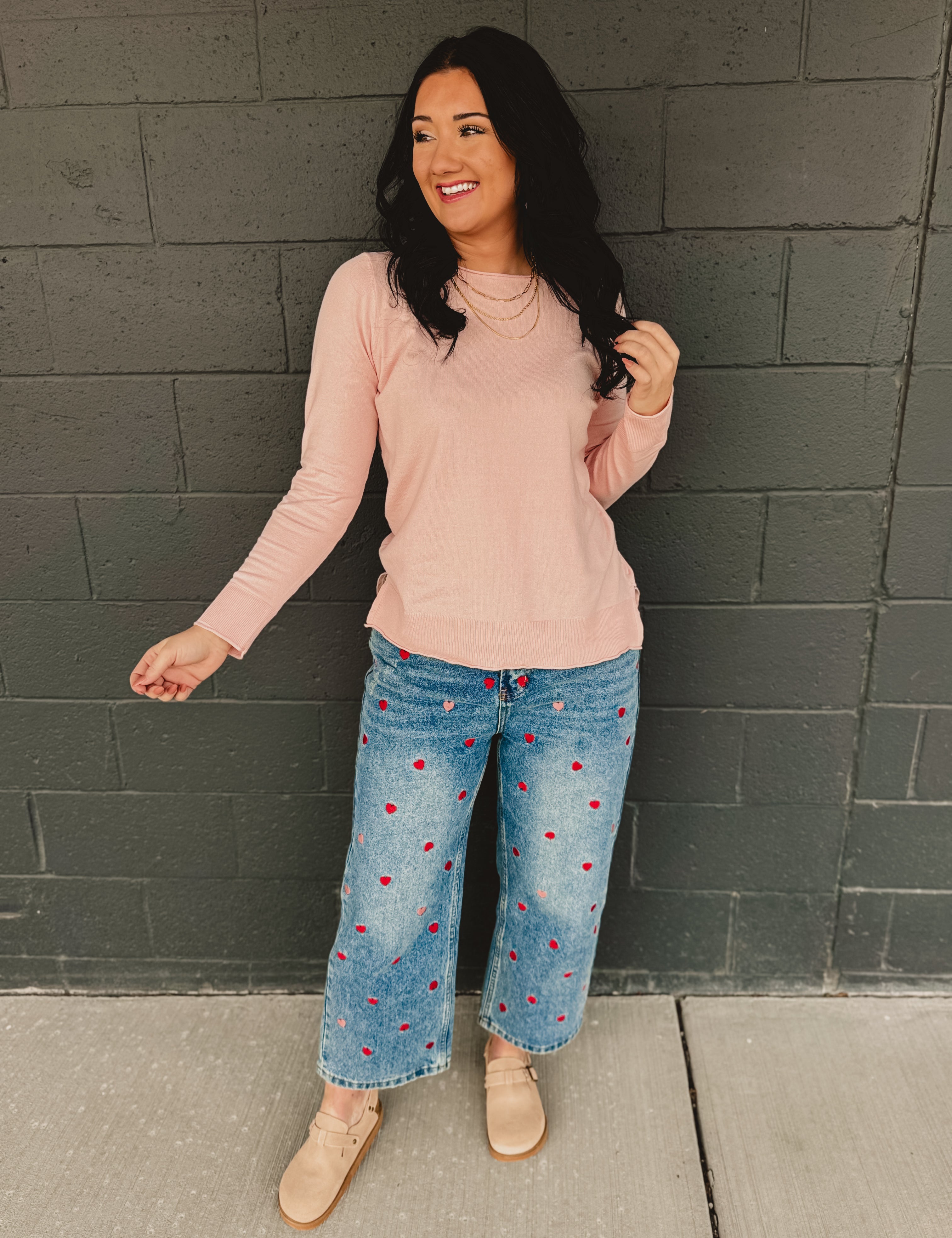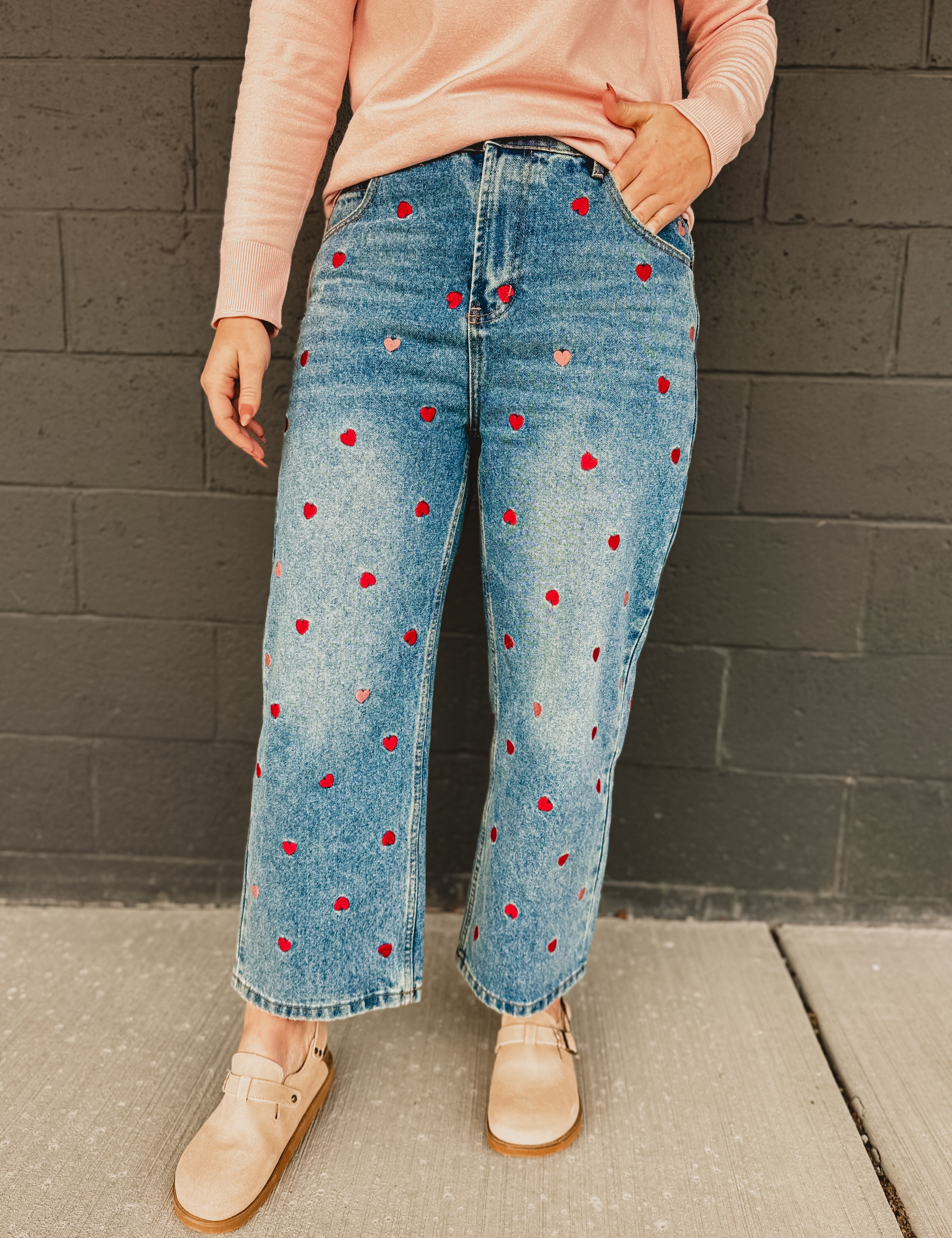 Oli & Hali Washed Heart Embroidered Boyfriend Jeans