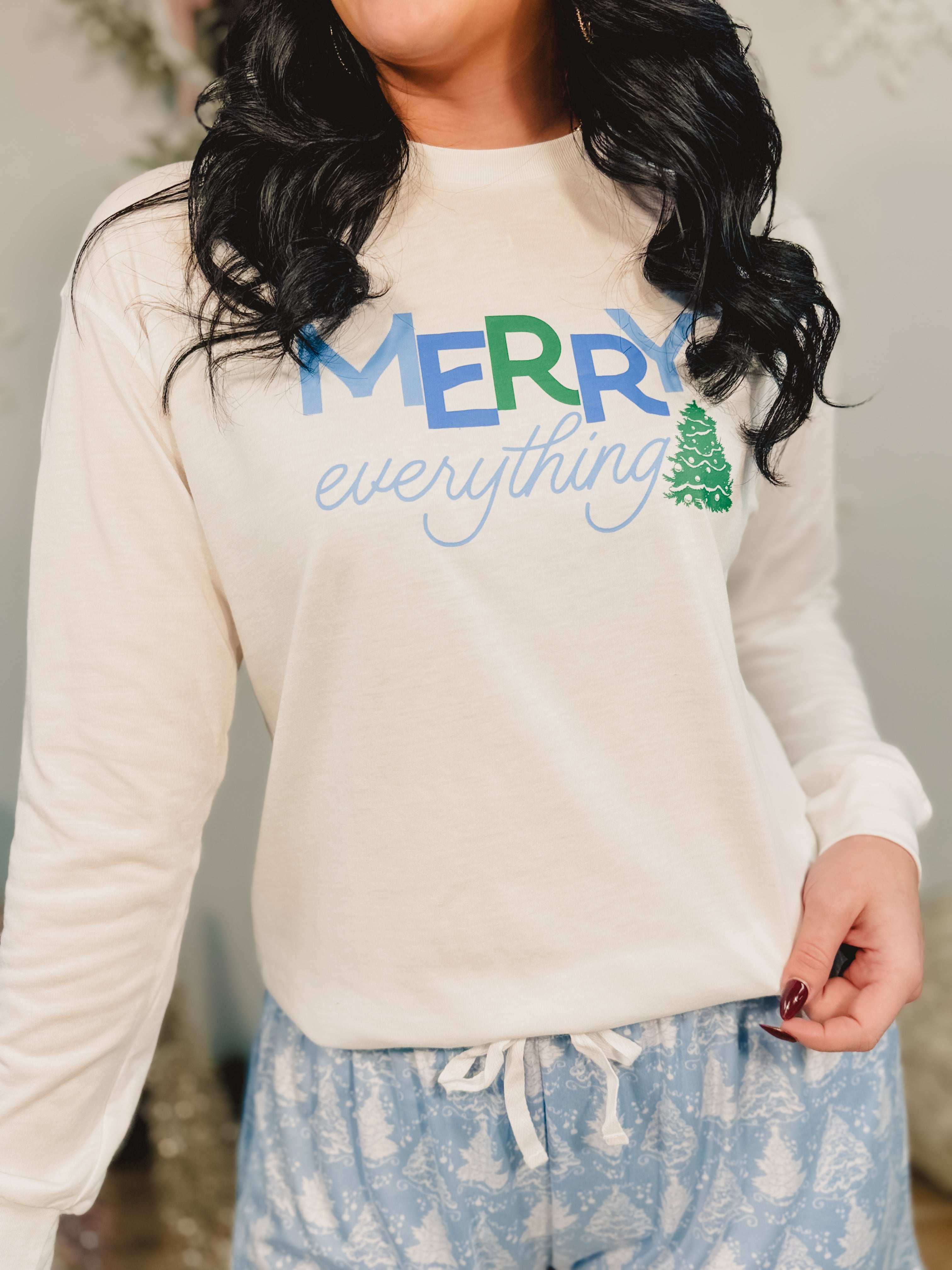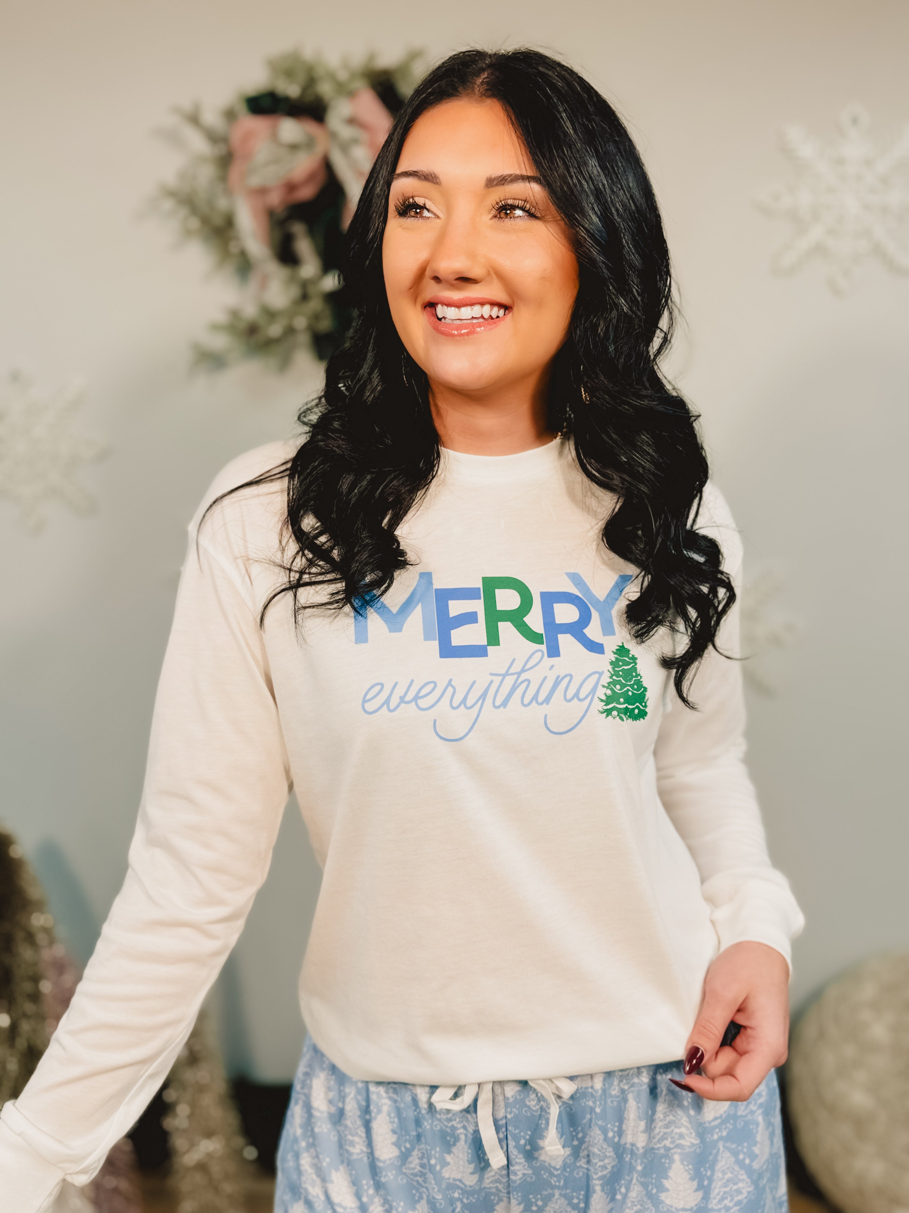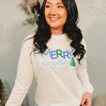 Merry Everything Long Sleeve Crewneck Tee - White Multi