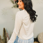 Keep your holiday style bright and joyful with this soft long sleeve crewneck featuring a cheerful Christmas tree graphic. Its comfy fabric makes it perfect for all-season lounging and layering. Pair it with the Winter Dreams shorts for the perfect lounge set!