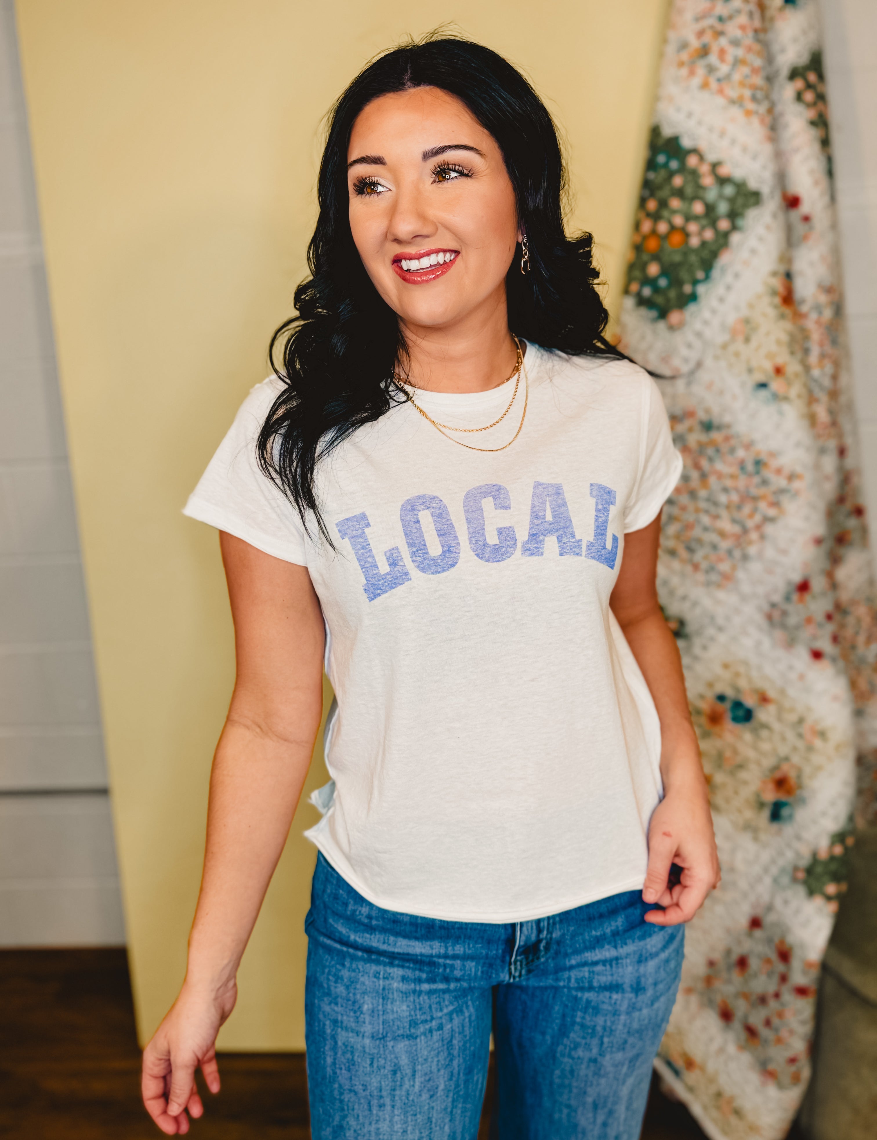 Local Raw Edge Heather Tee - Off White/Blue