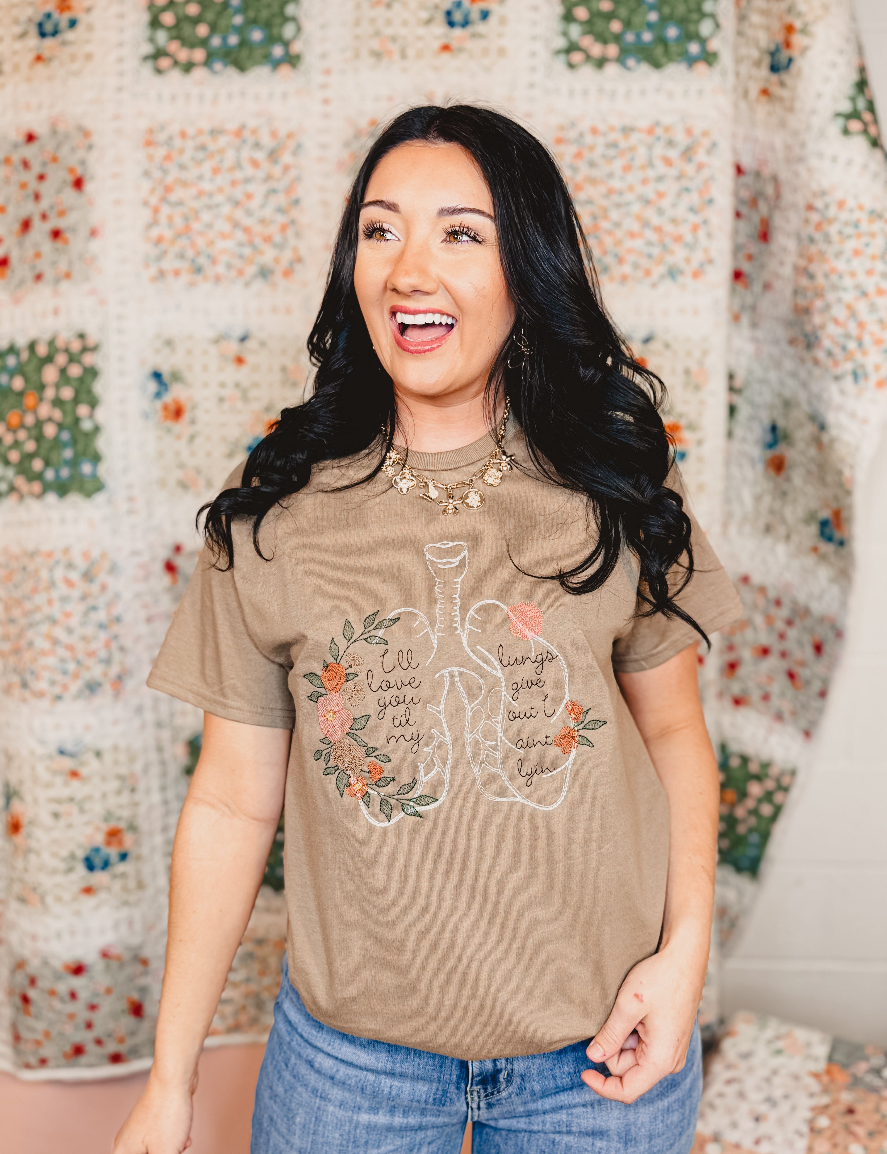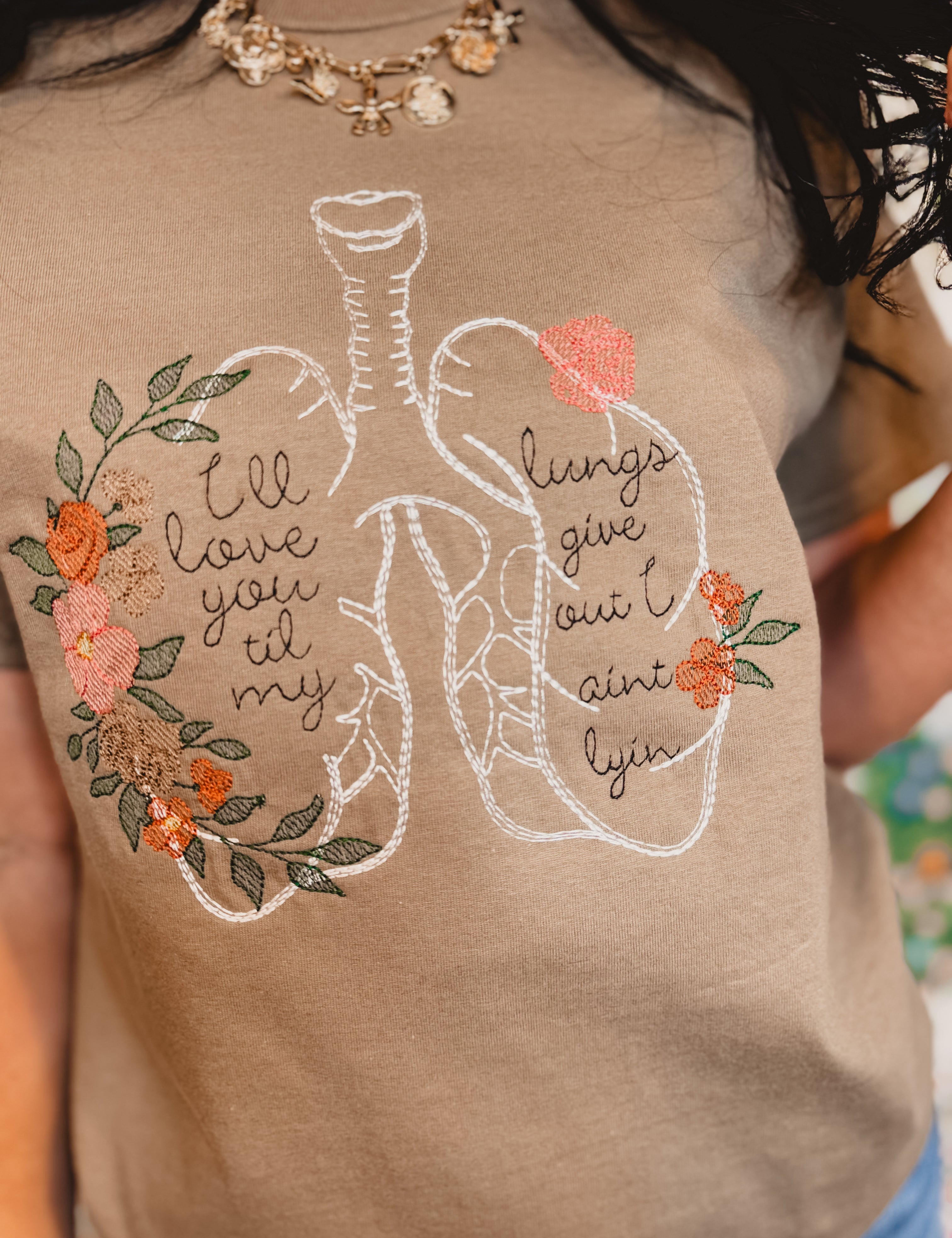 Love You Til' Embroidered Graphic Tee - Brown