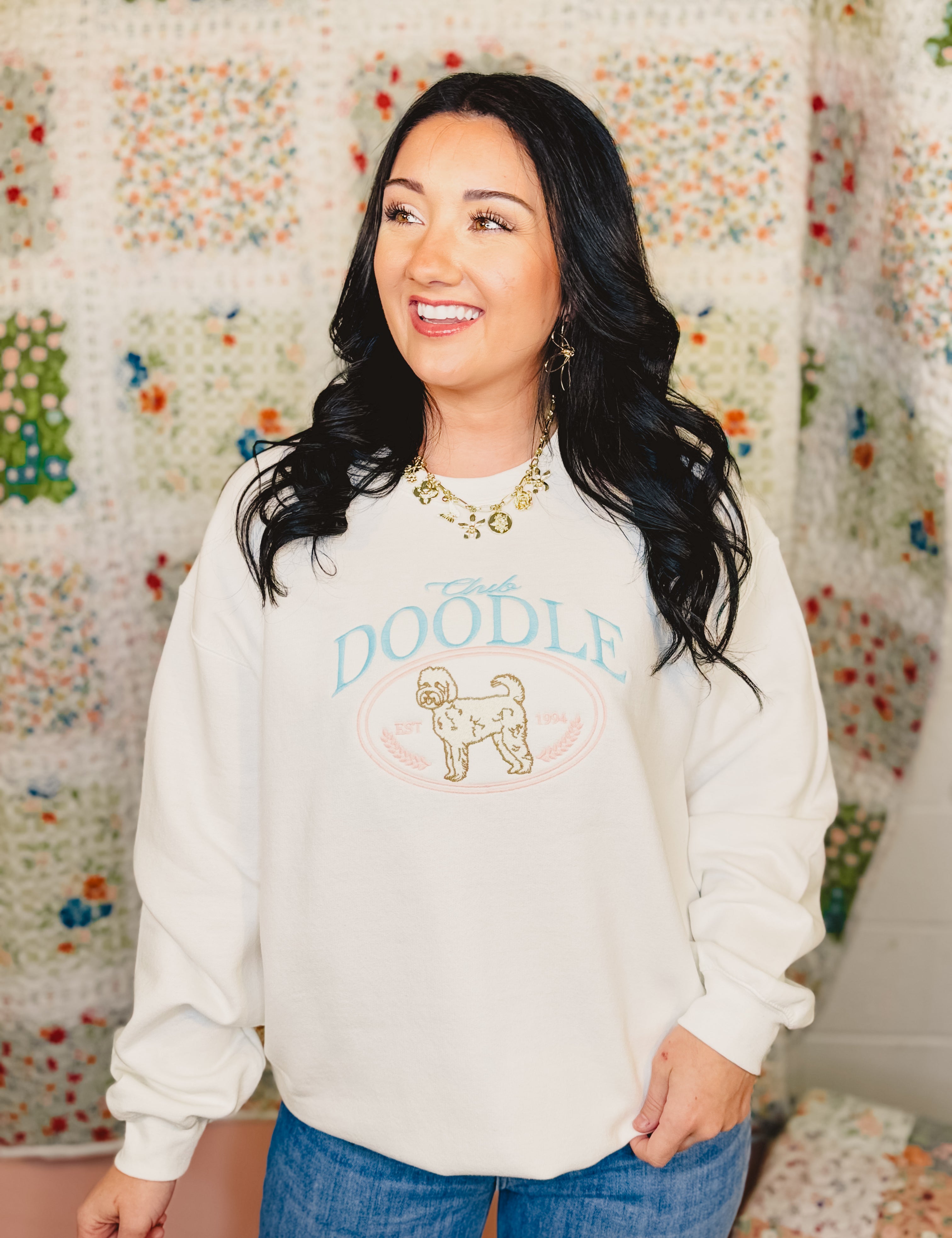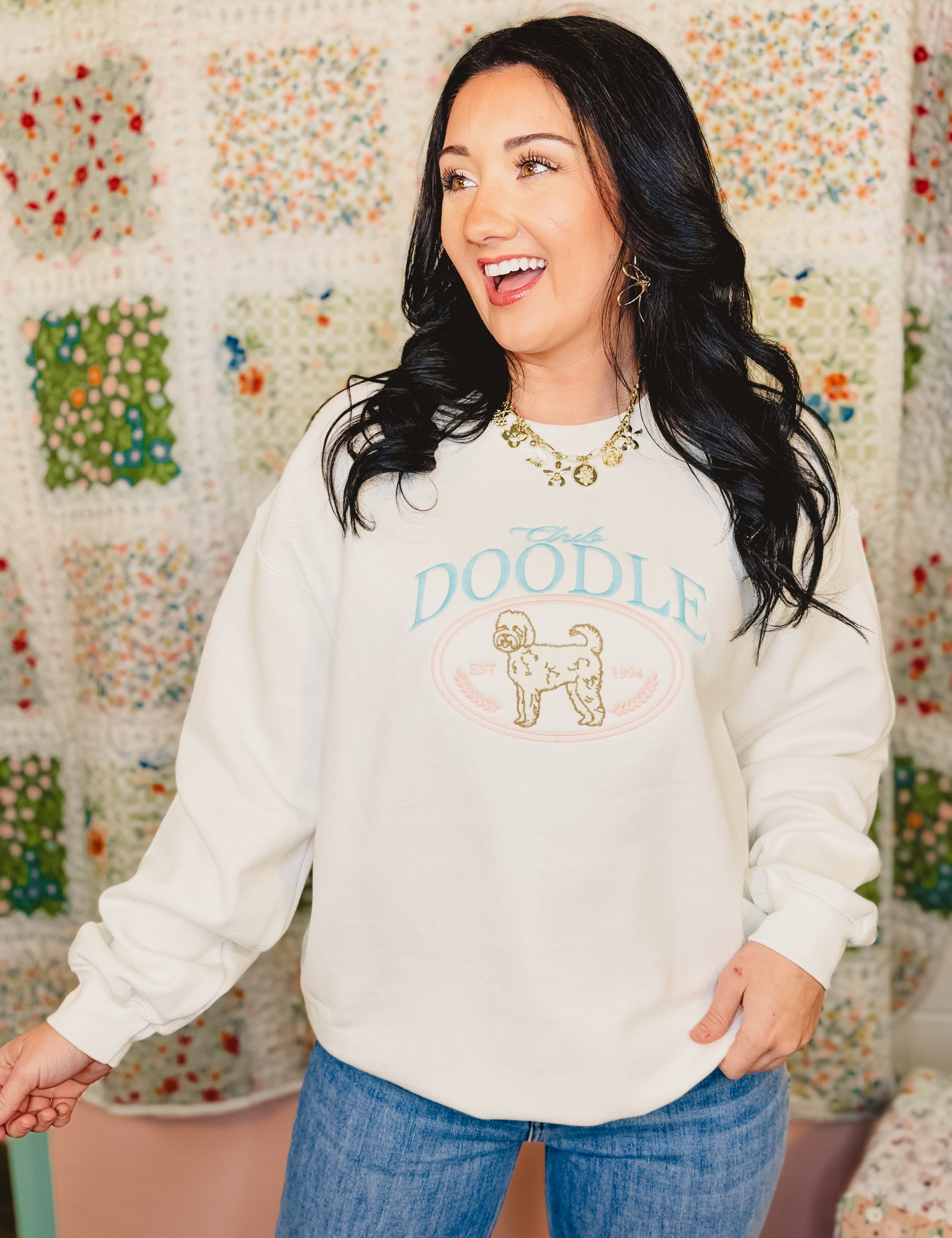 Club Doodle Embroidered Sweatshirt - White