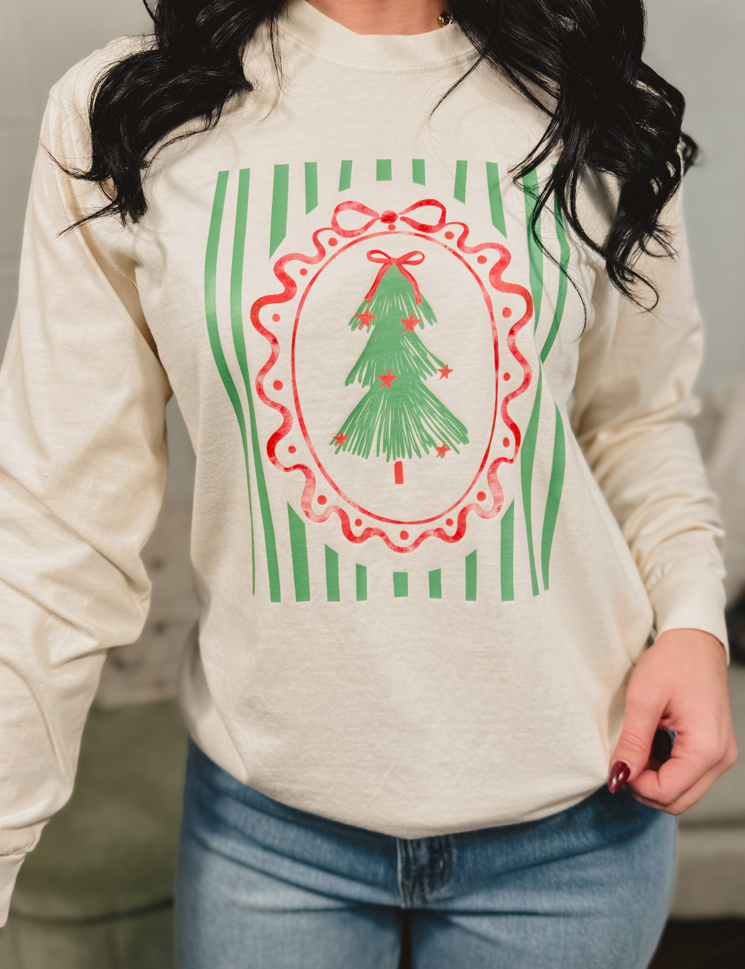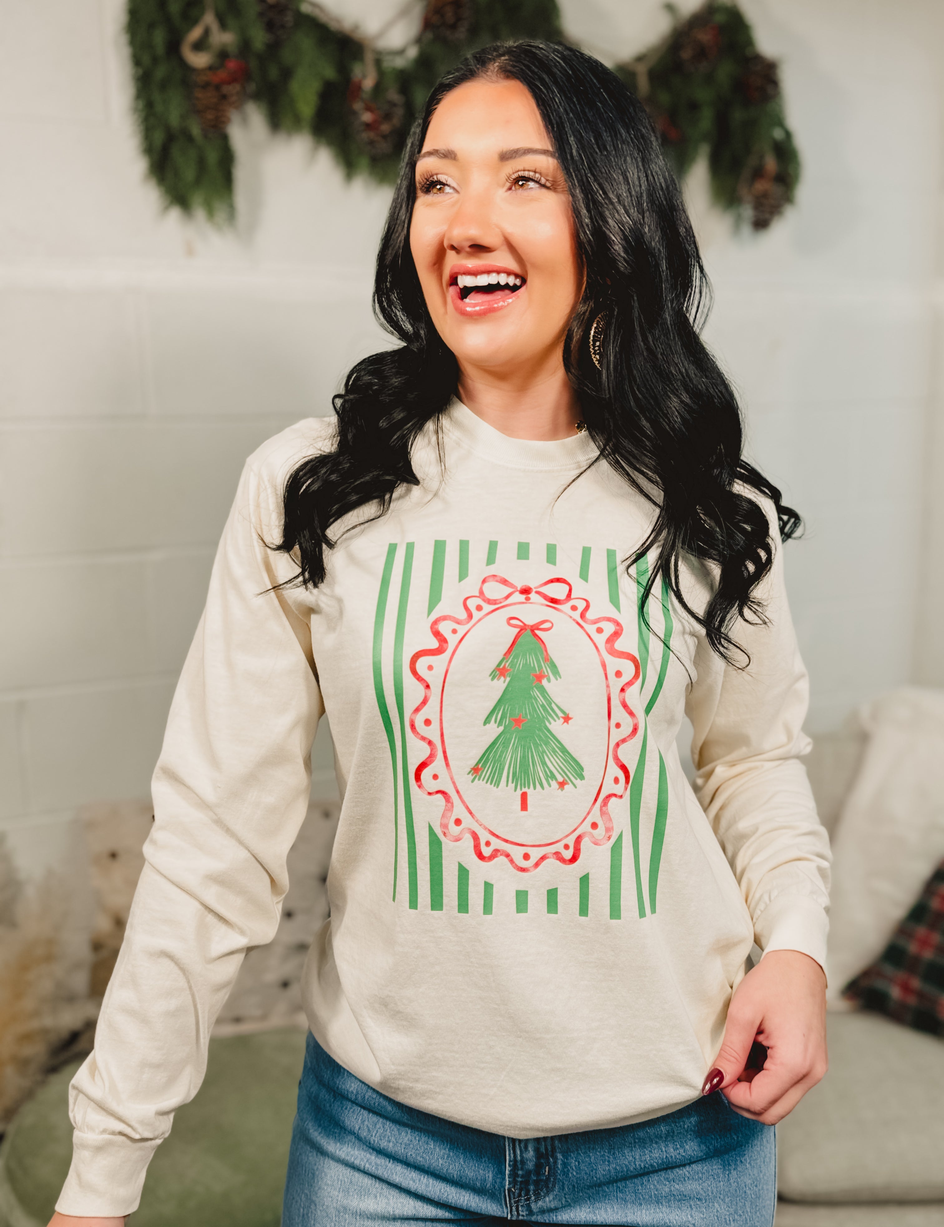 Striped Tree Long Sleeve Graphic Tee - Ivory