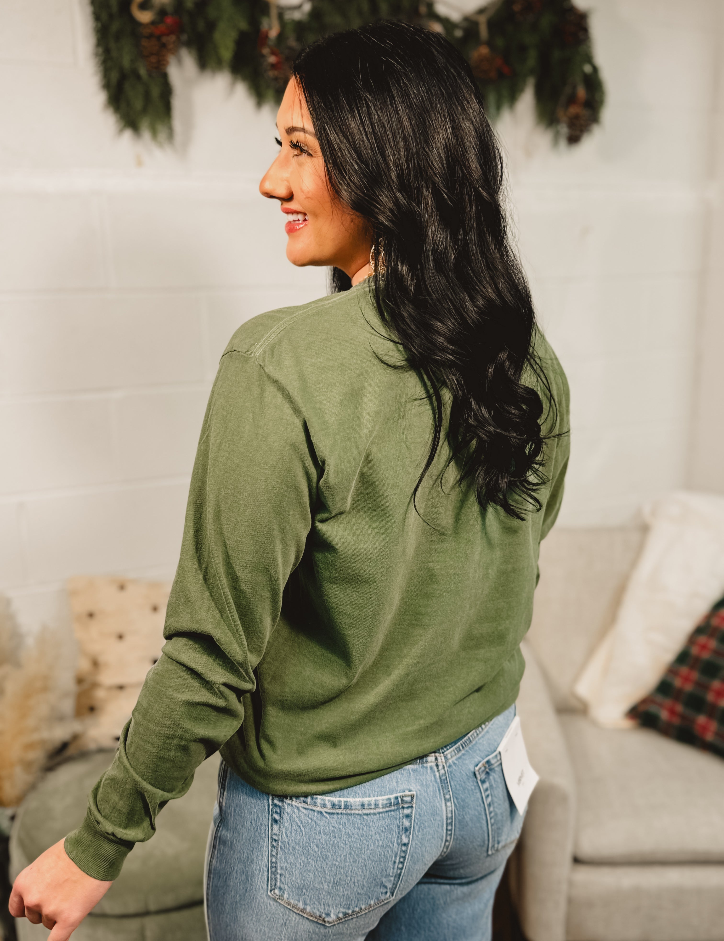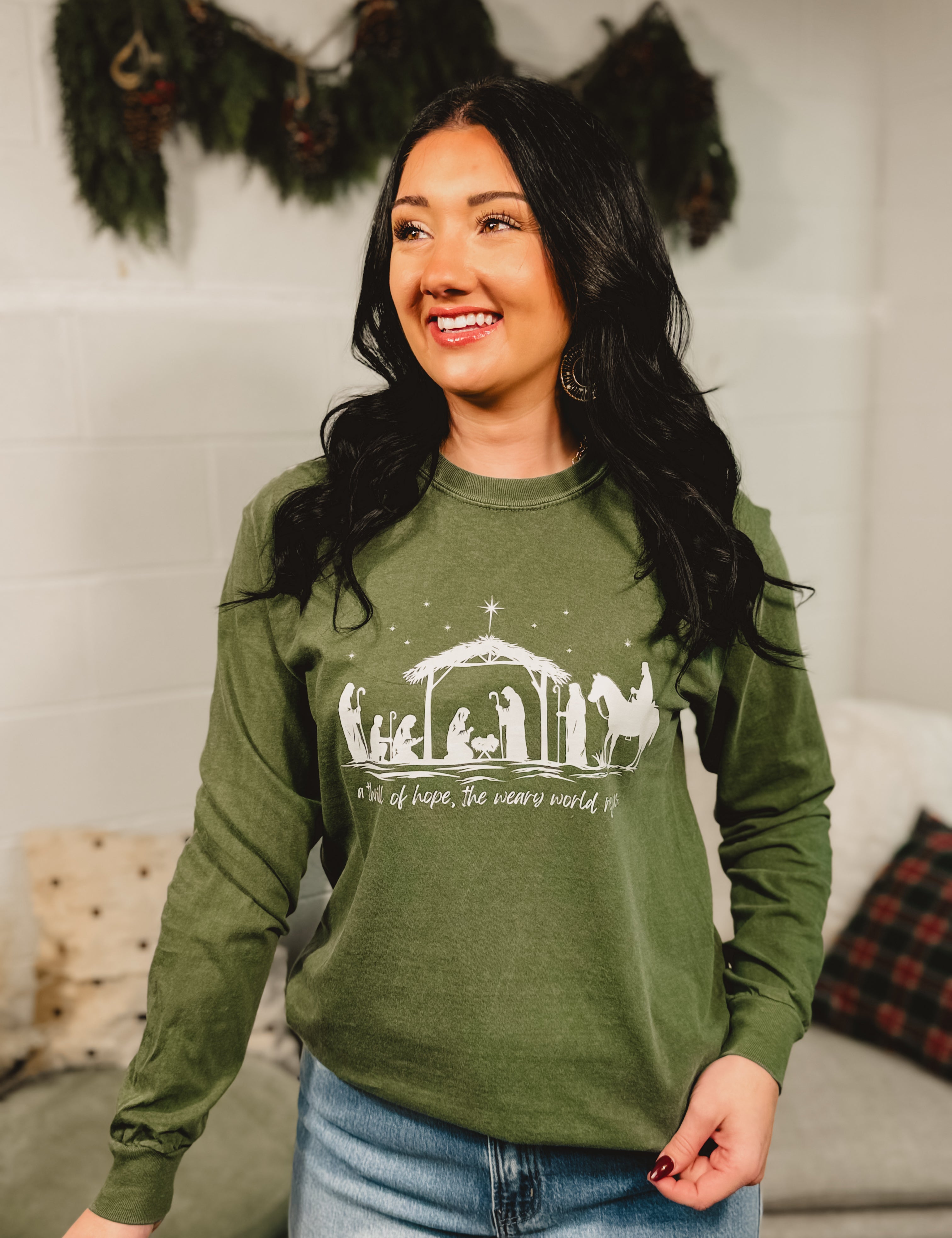 Nativity Scene Long Sleeve Graphic Tee - Olive