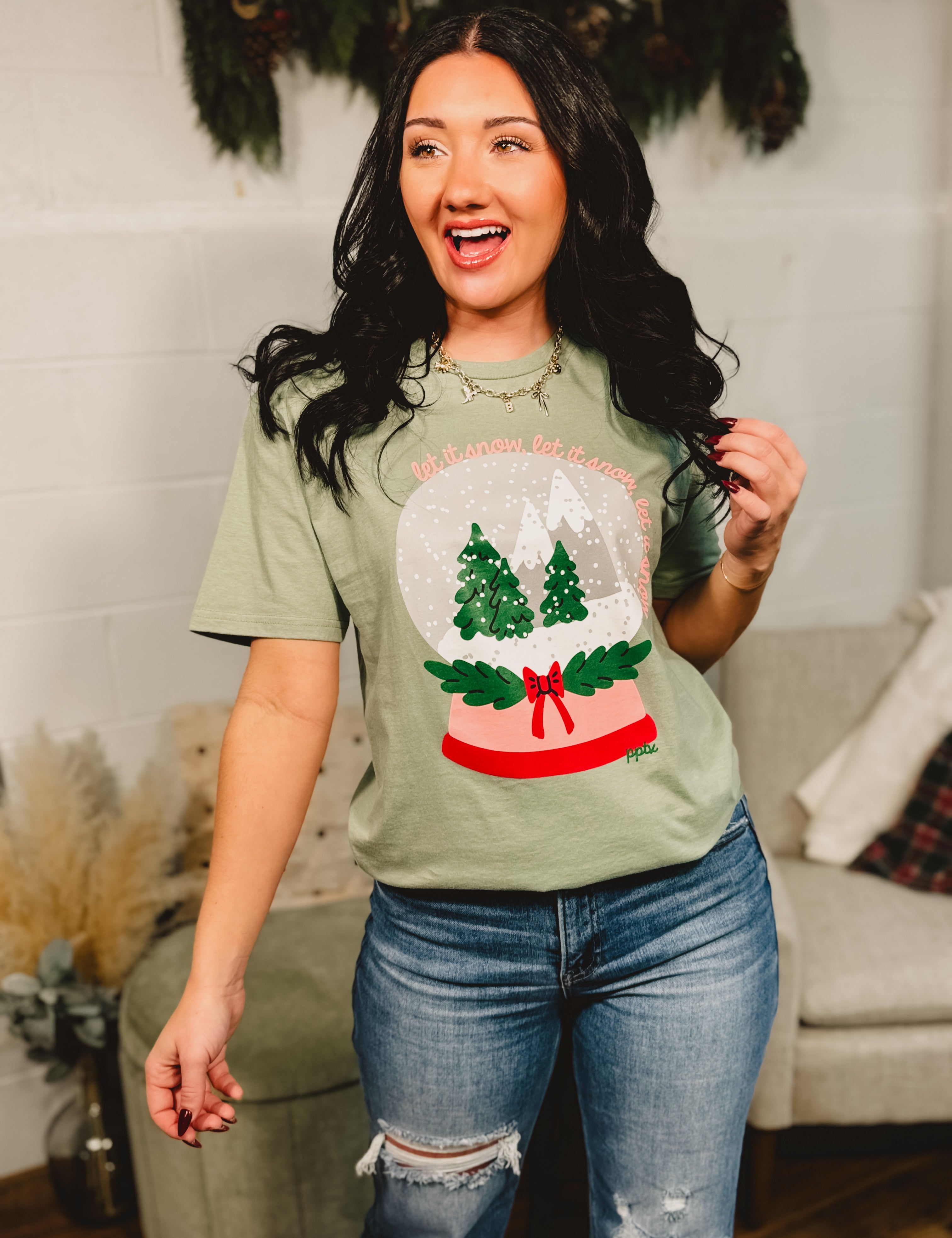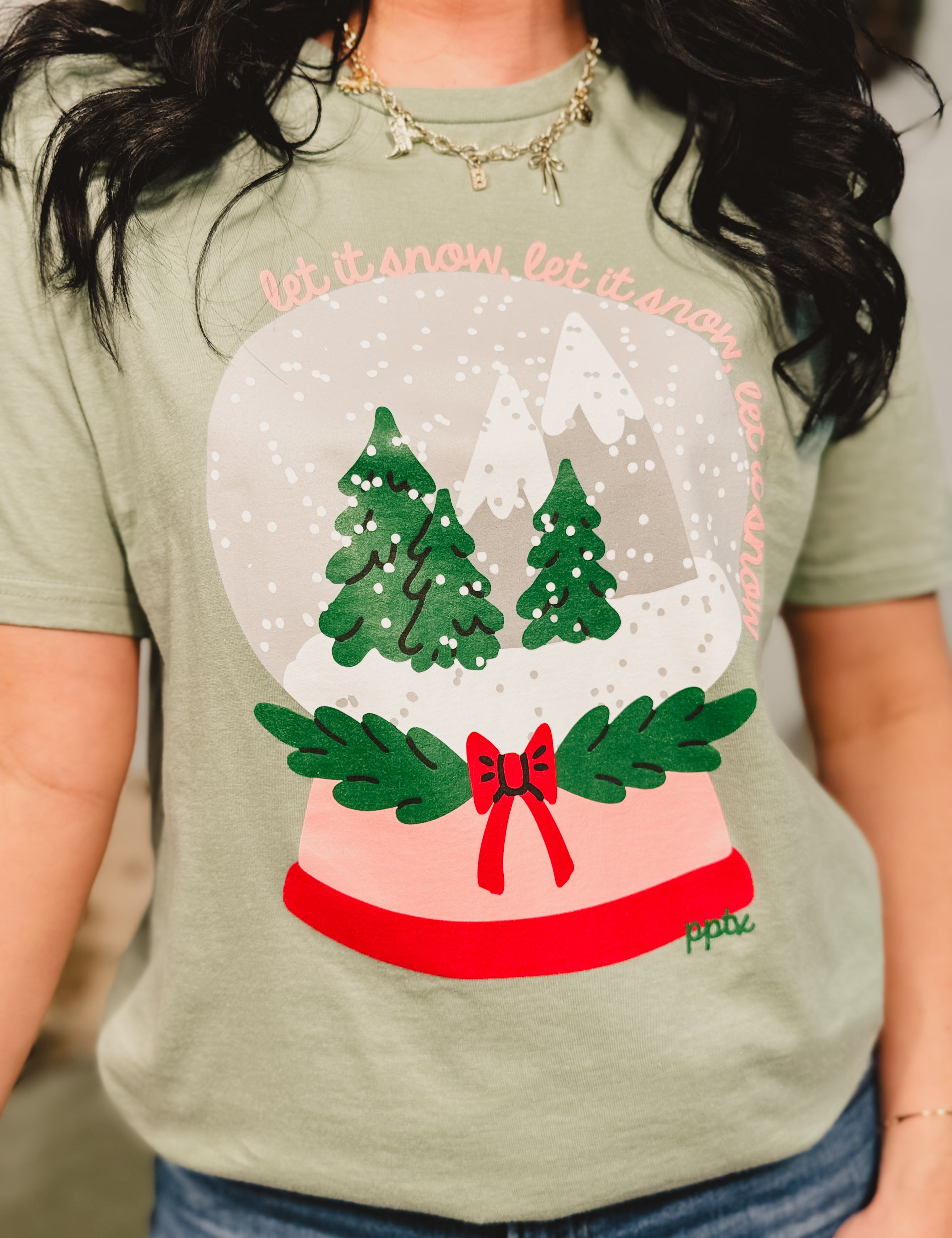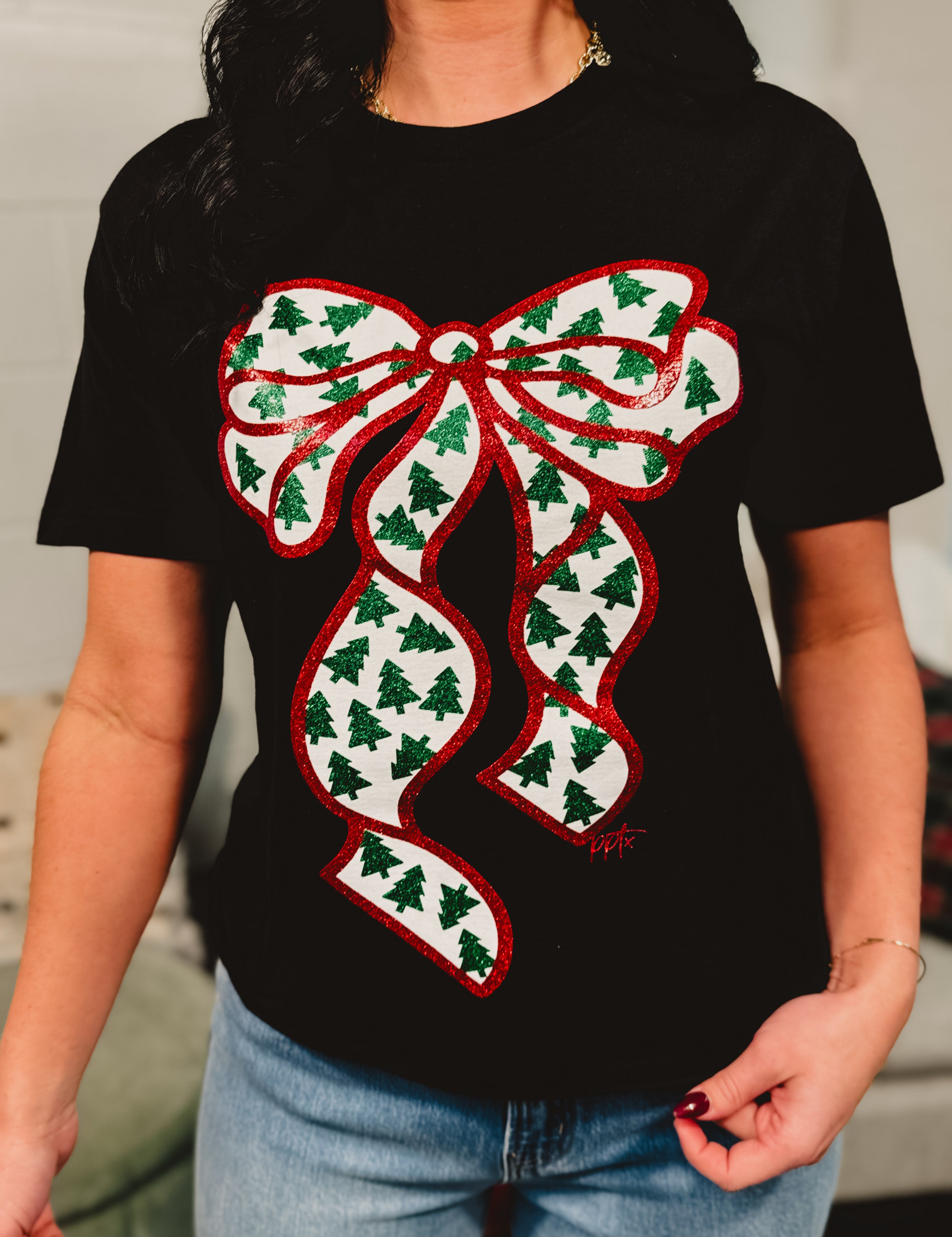 Glitter & Christmas Tree Bow Graphic Tee - Black
