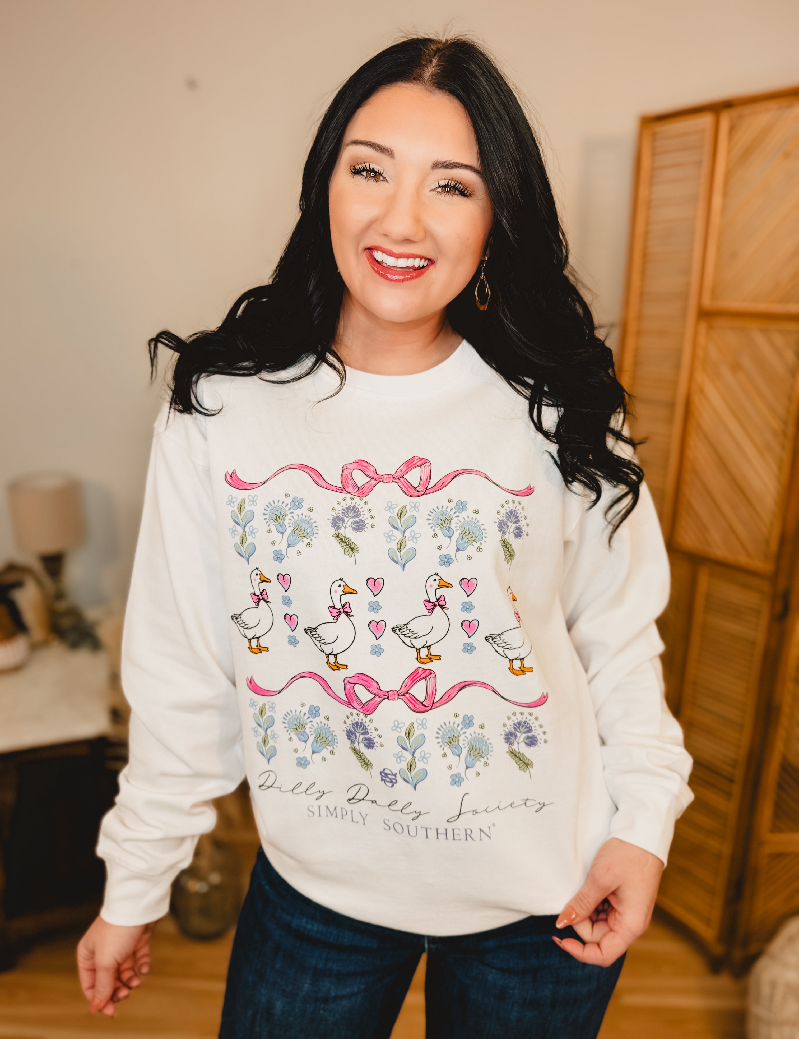 Simply Southern Dilly Dally Long Sleeve Crewneck Sweatshirt - White