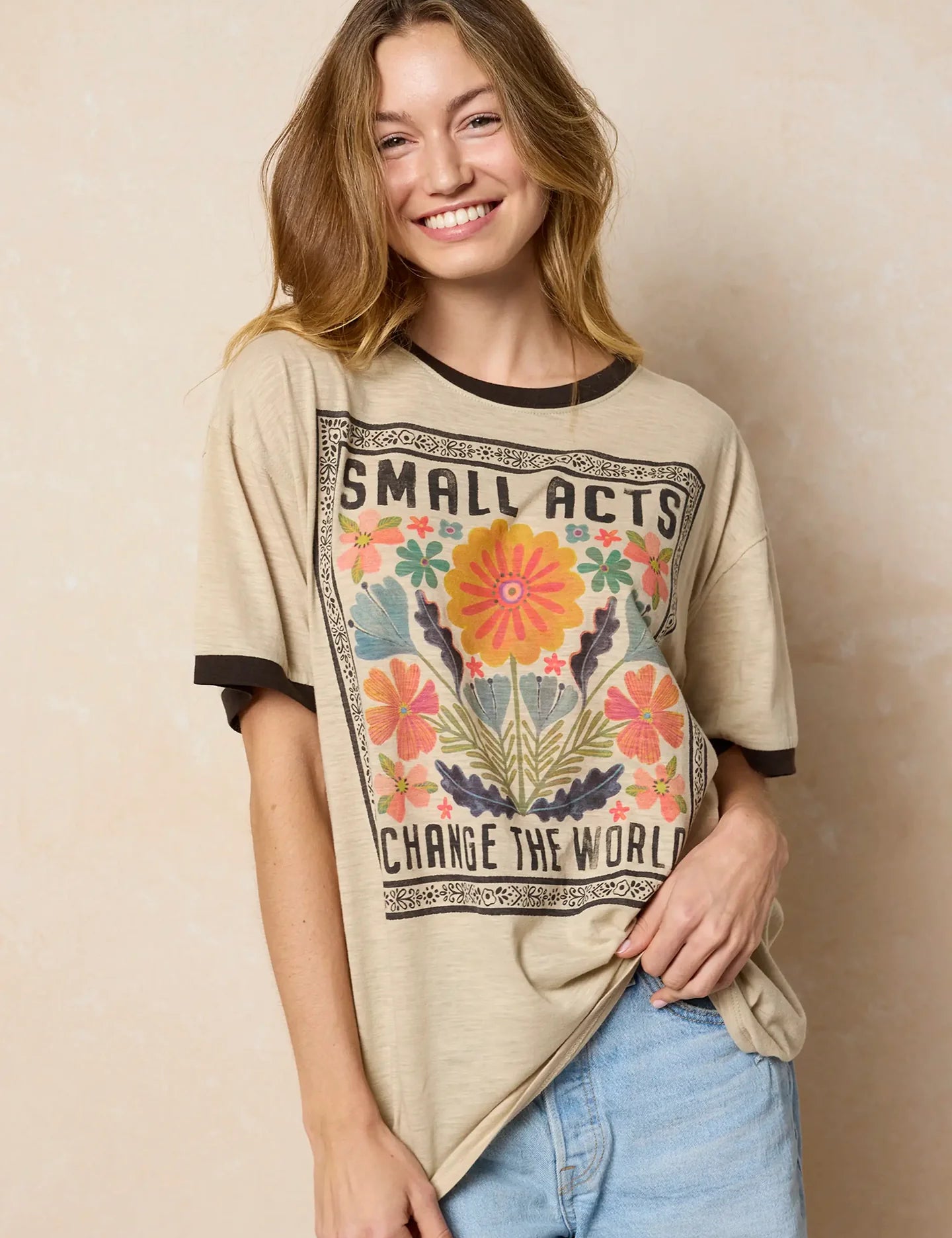 Natural Life Ringer Oversized Tee - Small Acts