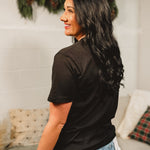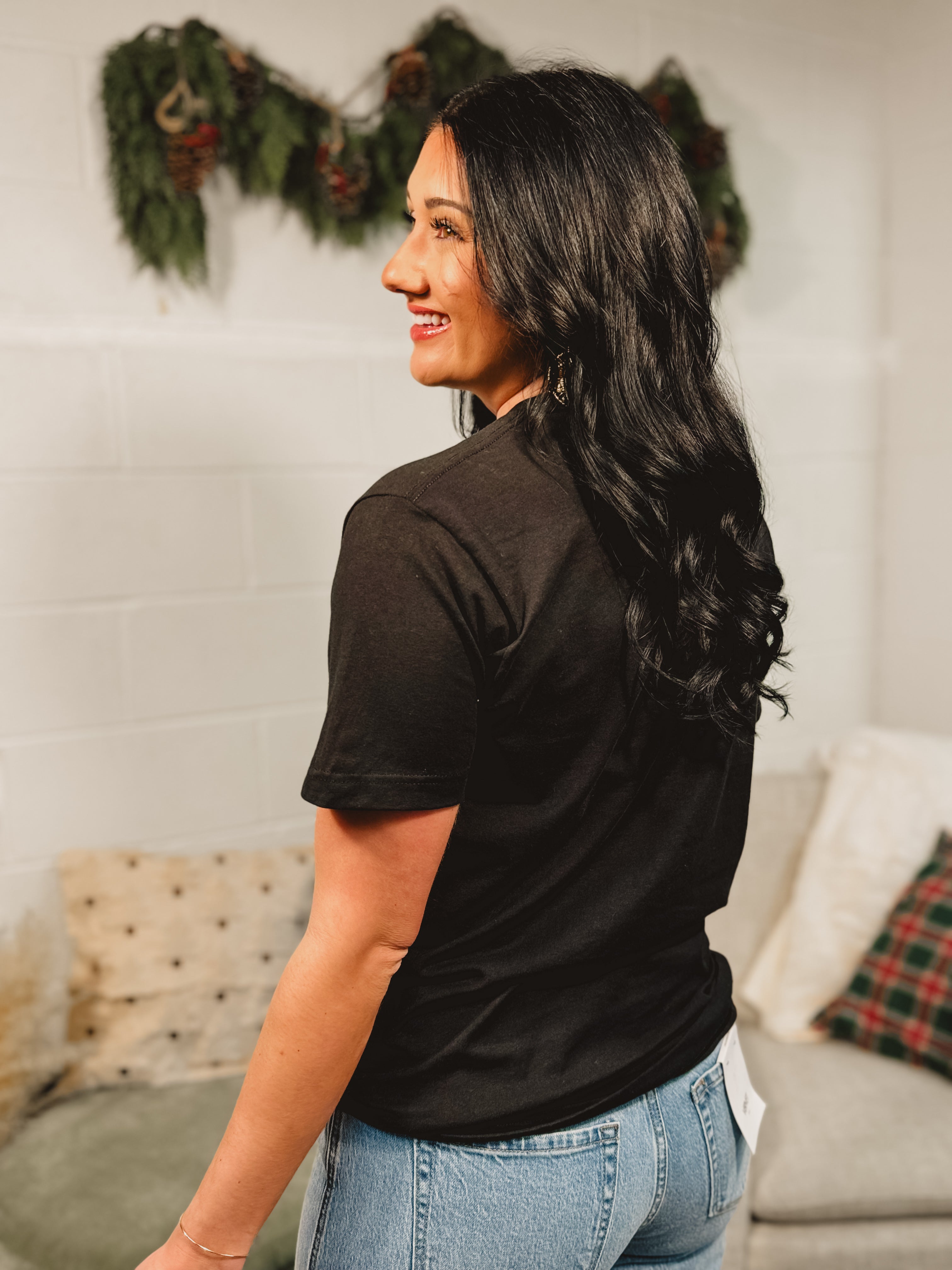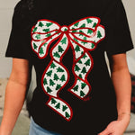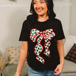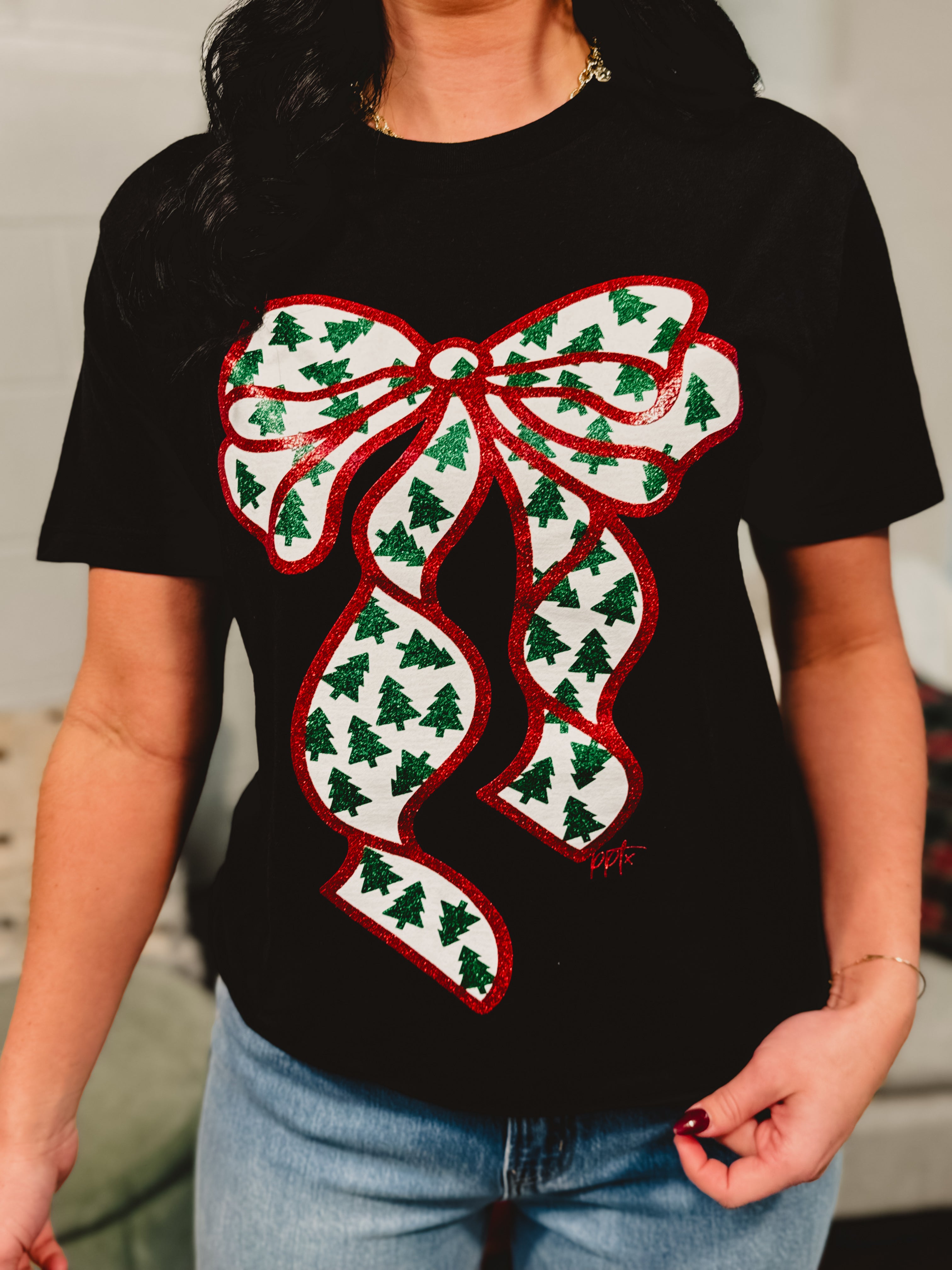 Glitter & Christmas Tree Bow Graphic Tee - Black