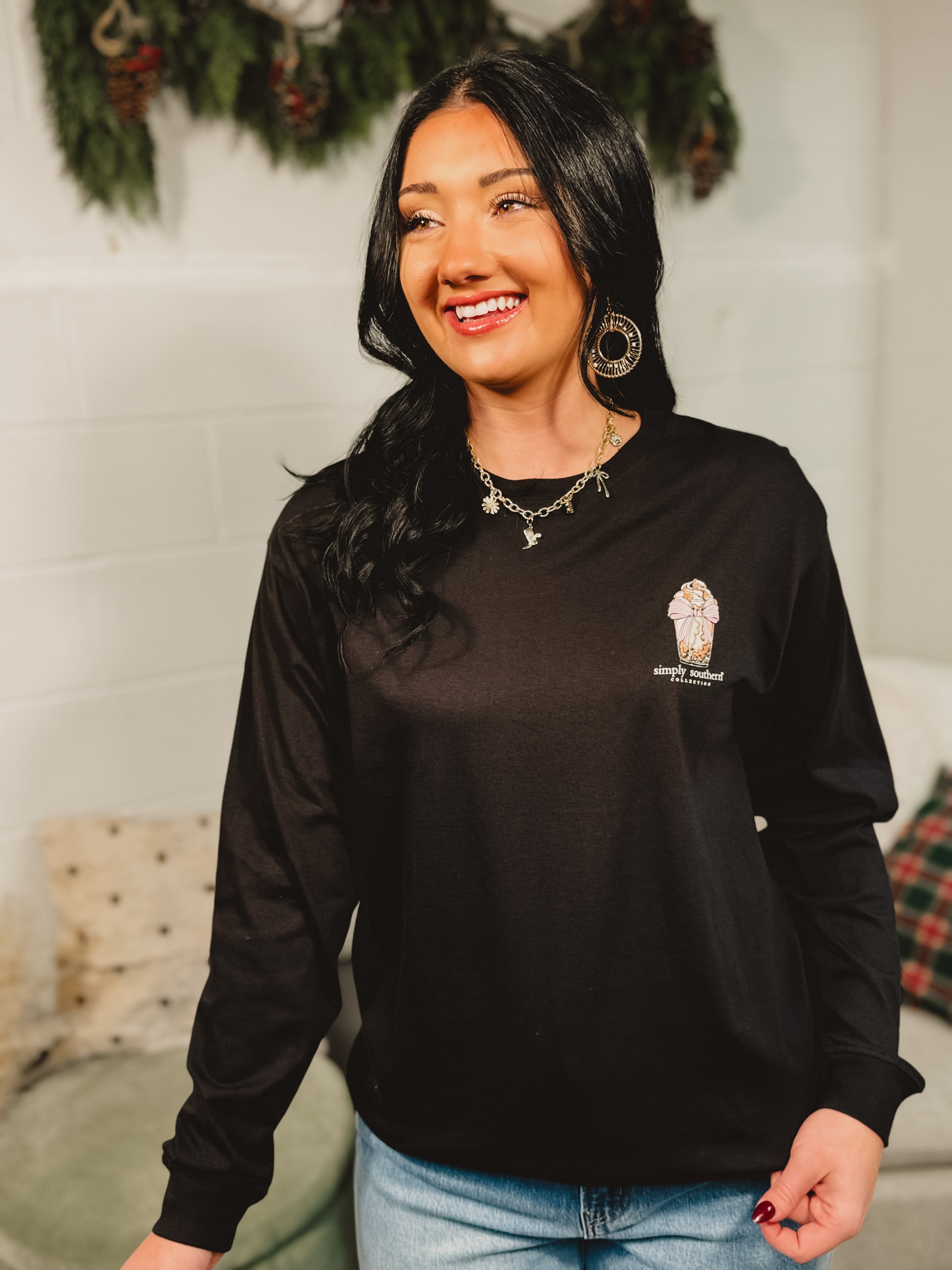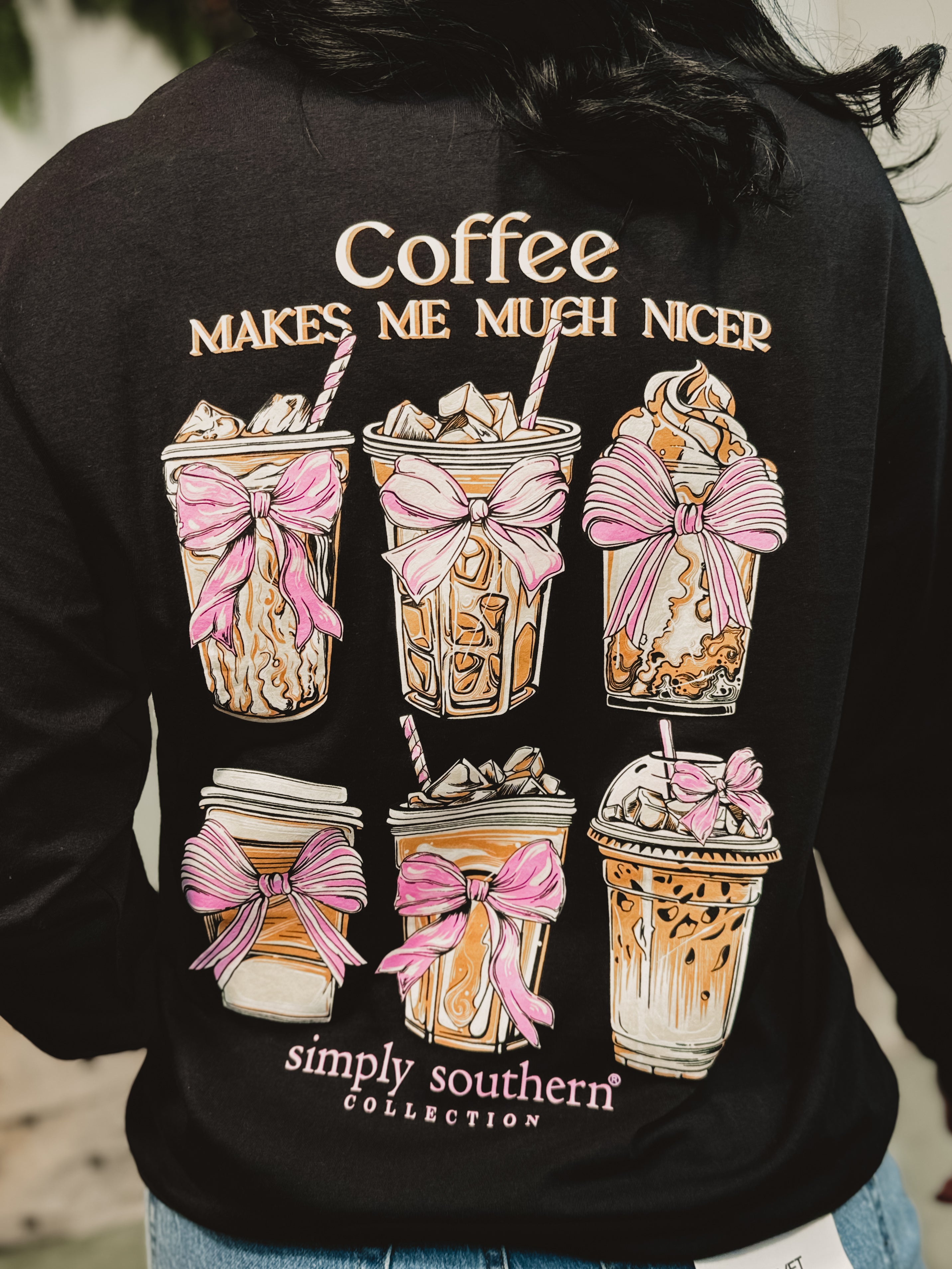 Share your caffeine-loving personality with the Simply Southern Coffee Long Sleeve Tee in black. This cozy graphic tee brings a playful touch to your everyday style—because a little coffee really does go a long way.