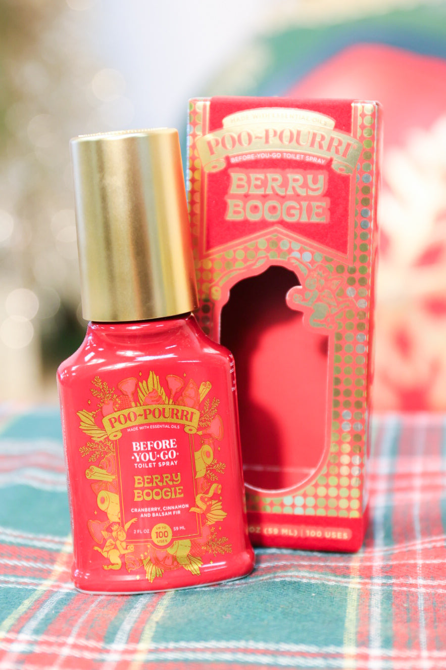 Fill your loo with the traditional smells of the season. Poo~Pourri Berry Boogie is a complex blend to remind you of simpler times. Its nostalgic blend of traditional spices like cinnamon, clove and ginger is paired with tart fruits like green apple, cranberry and lemon and rounded out with vanilla and fir. This scent will have you wondering if Aunt Linda just made a cup of apple cider or just dropped a yule log—with Poo~Pourri Berry Boogie, you'll never know!