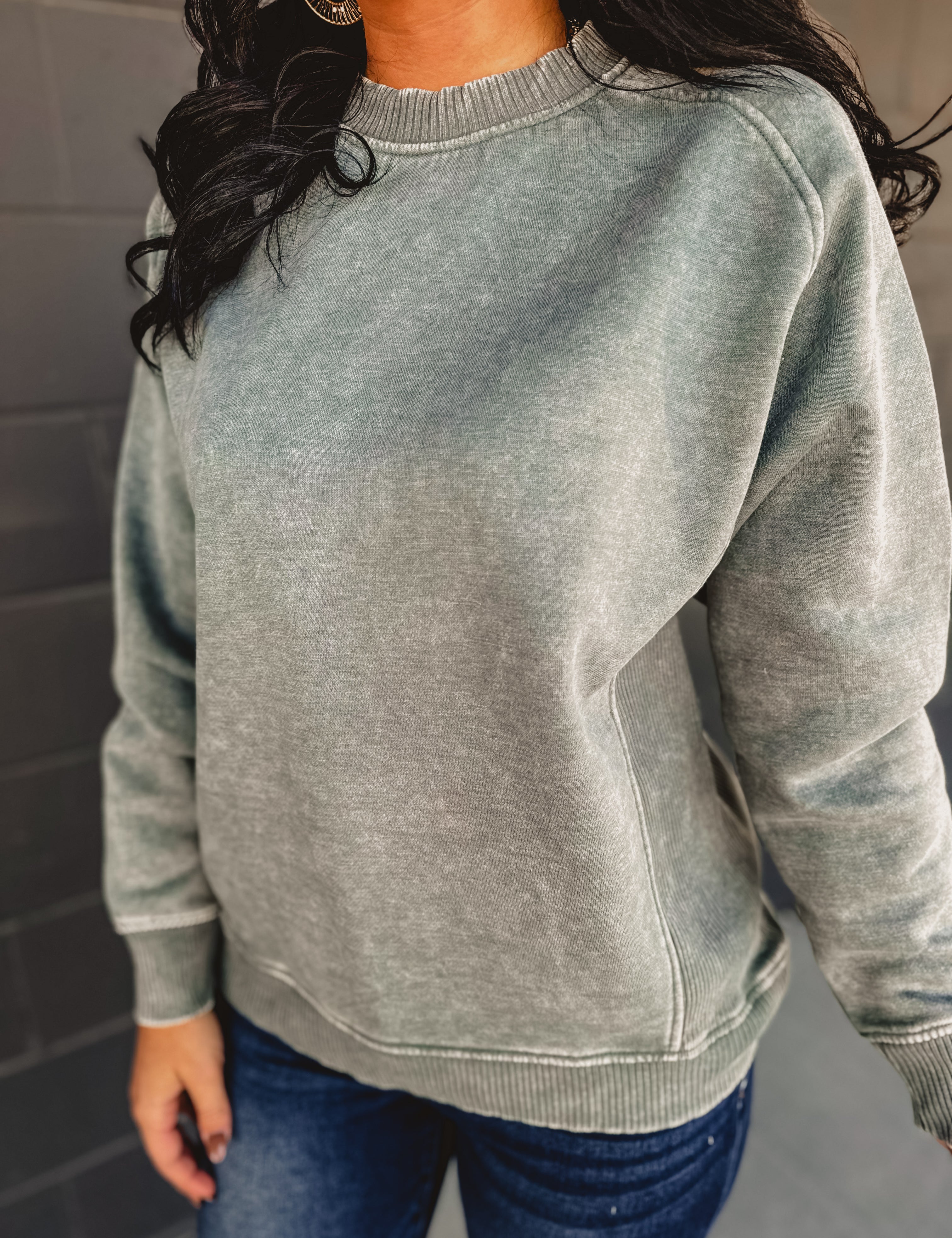 Acid Washed Fleece Crewneck Sweatshirt - Ash Jade