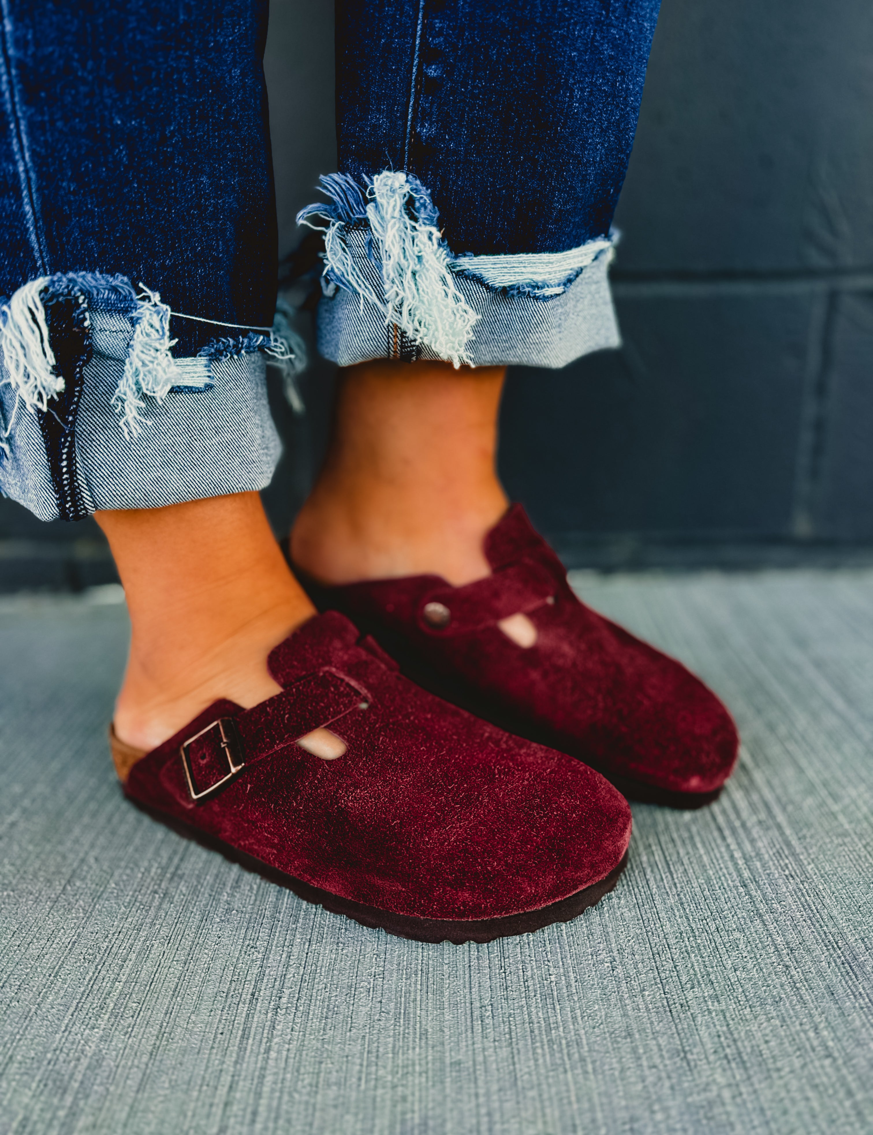 Birkenstock Boston Suede Leather Clog - Zinfandel