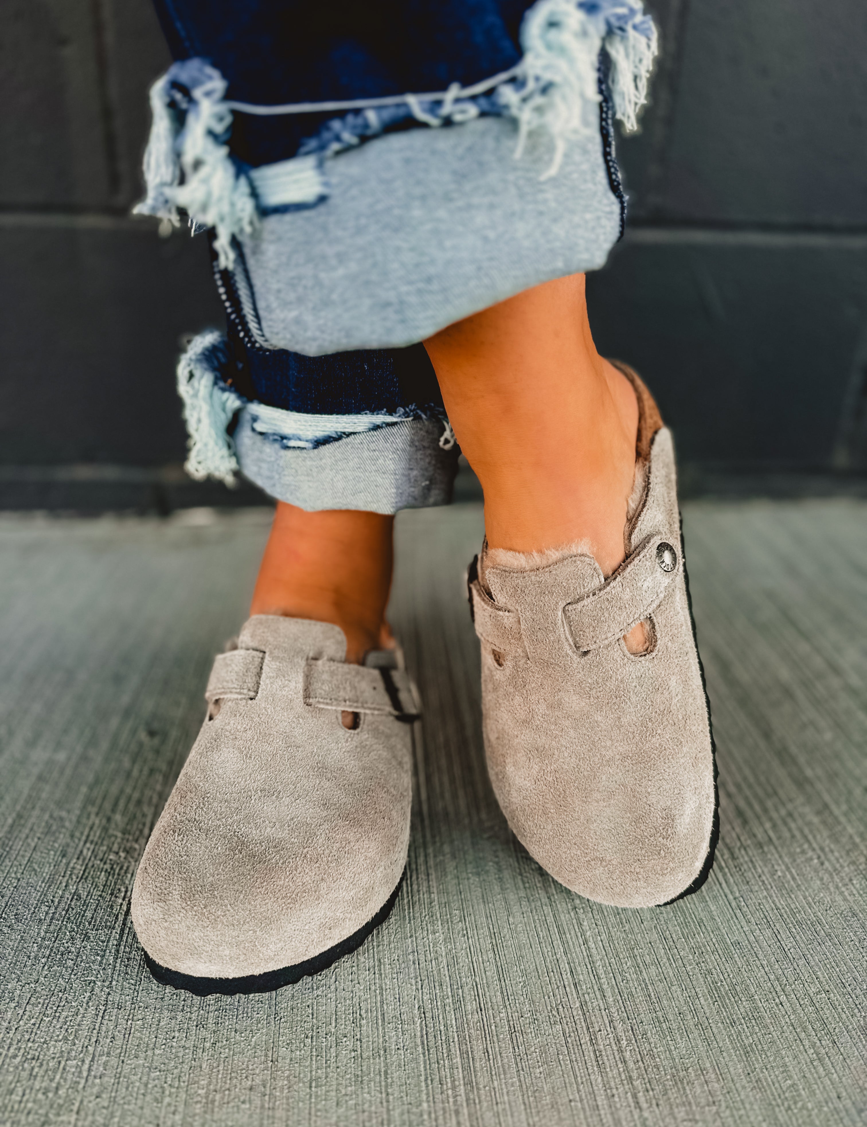 Birkenstock Boston Shearling Suede Clog - Taupe