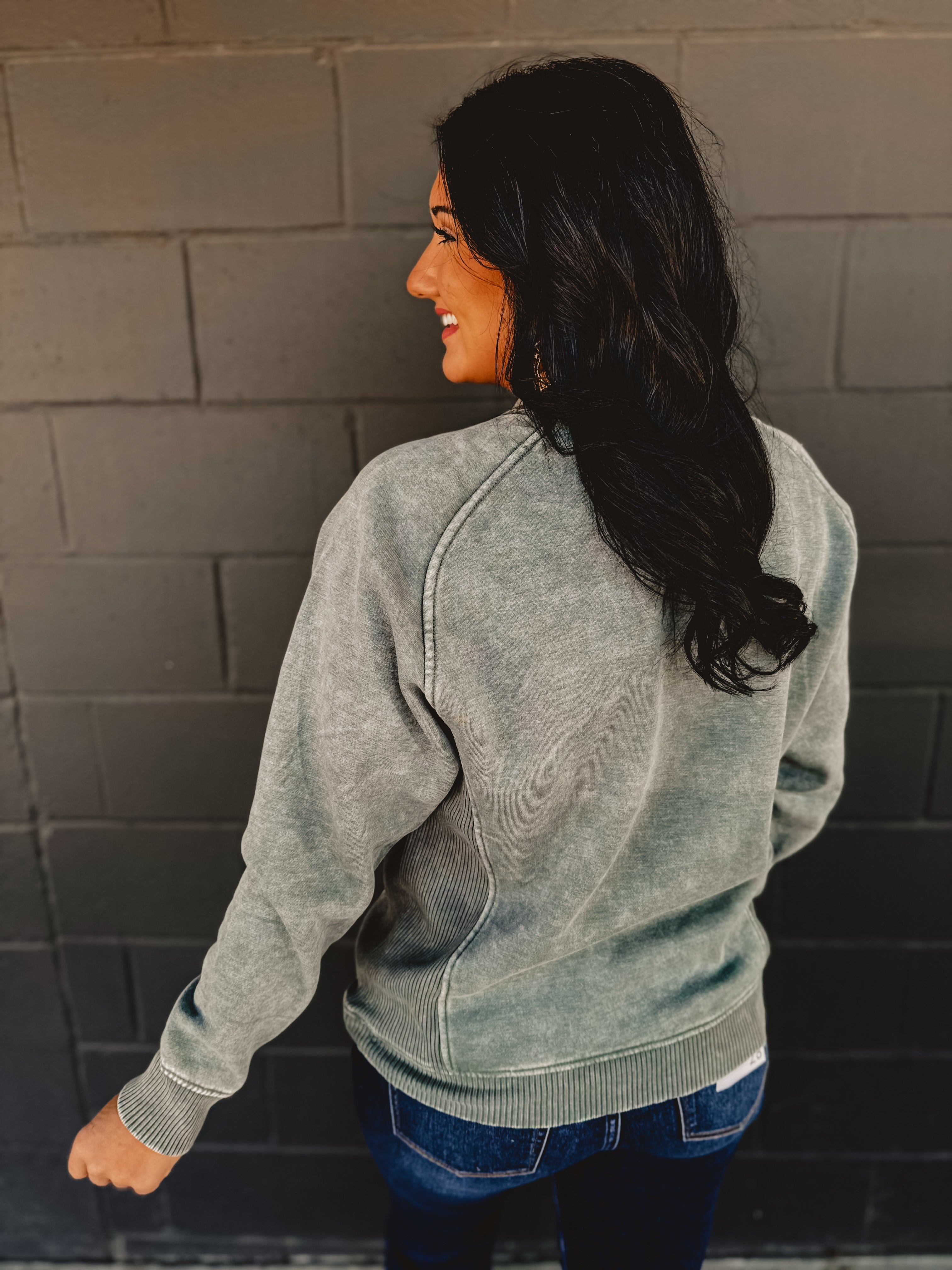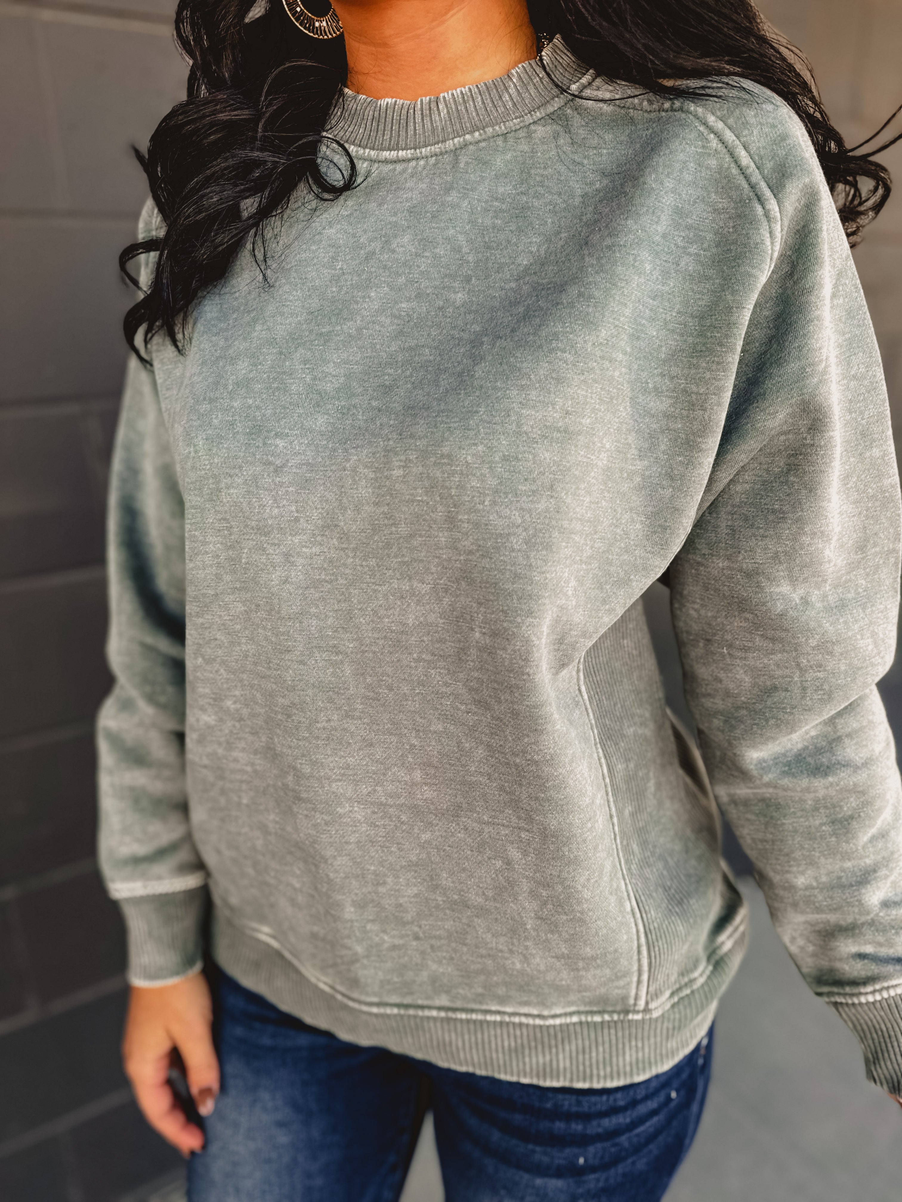 Acid Washed Fleece Crewneck Sweatshirt - Ash Jade