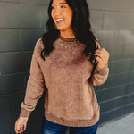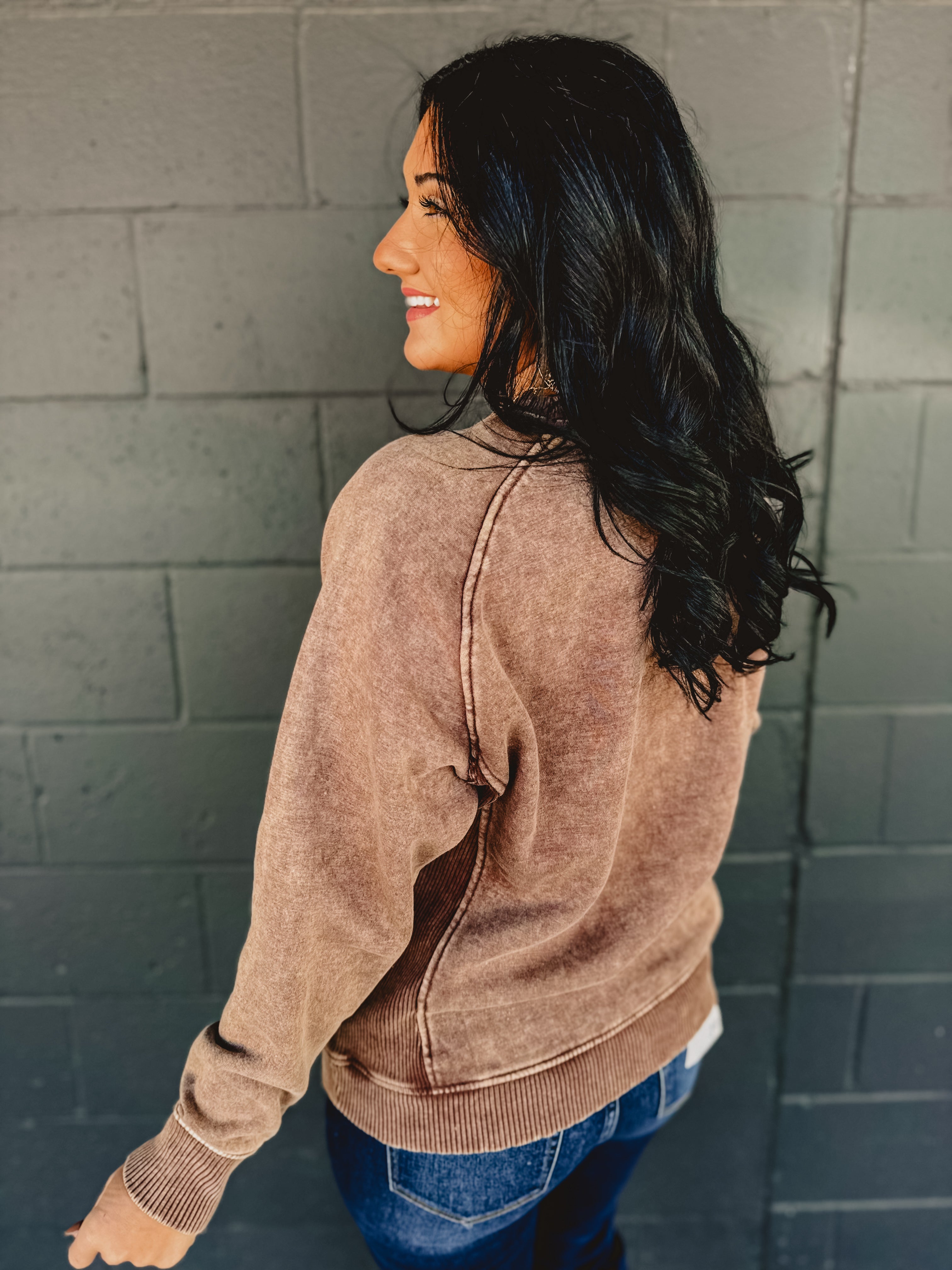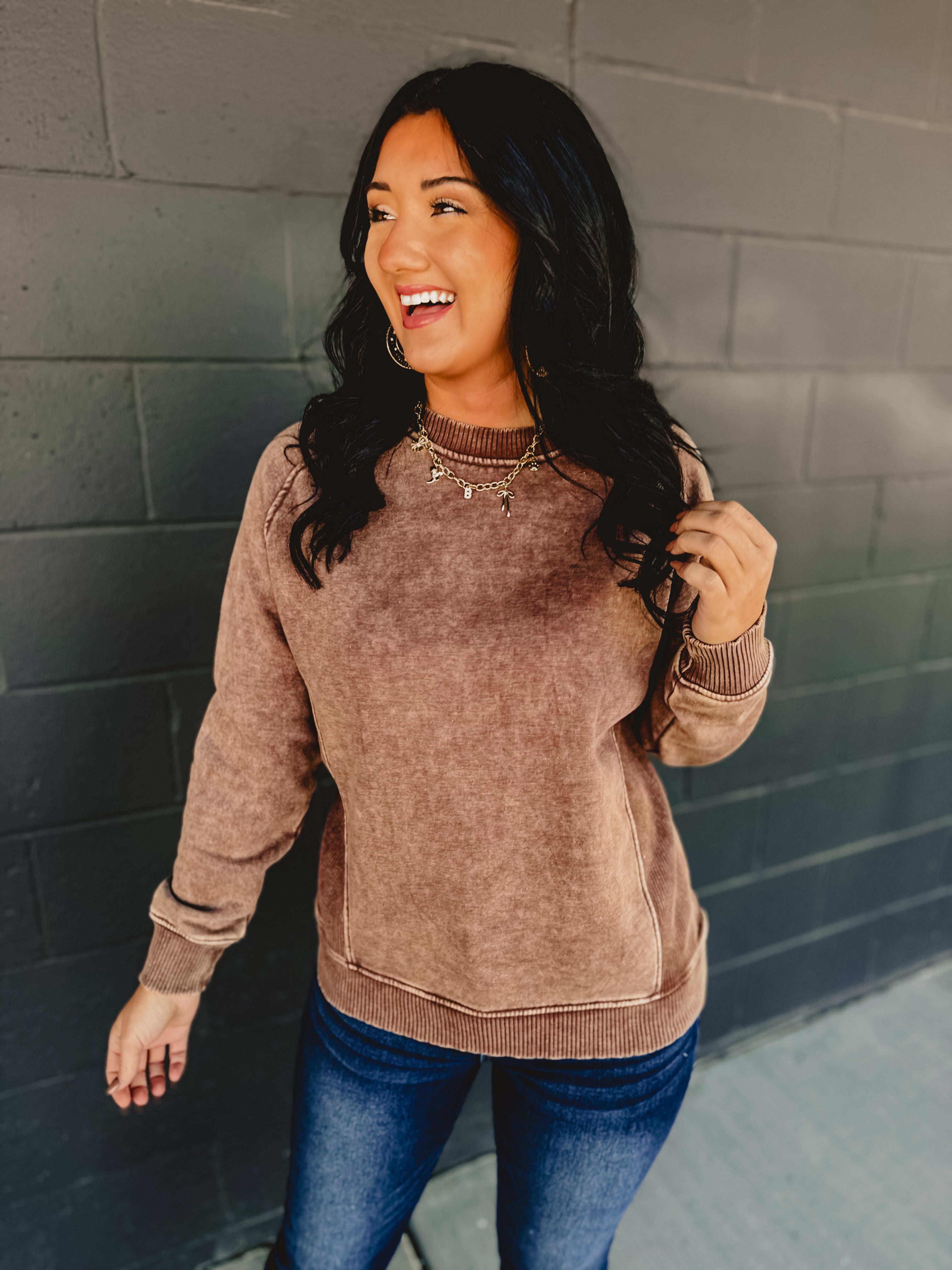 Acid washed crewneck long sleeve sweatshirt in brown.