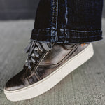 The Bedstu Azeli Sneaker in Graphite Rustic combines timeless style with exceptional comfort, featuring hand-stitched details and a durable white outsole for a sleek, versatile look that adapts effortlessly to any occasion.