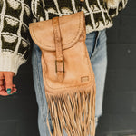 - Fringe Leather Pouch/ Crossbody with adjustable strap