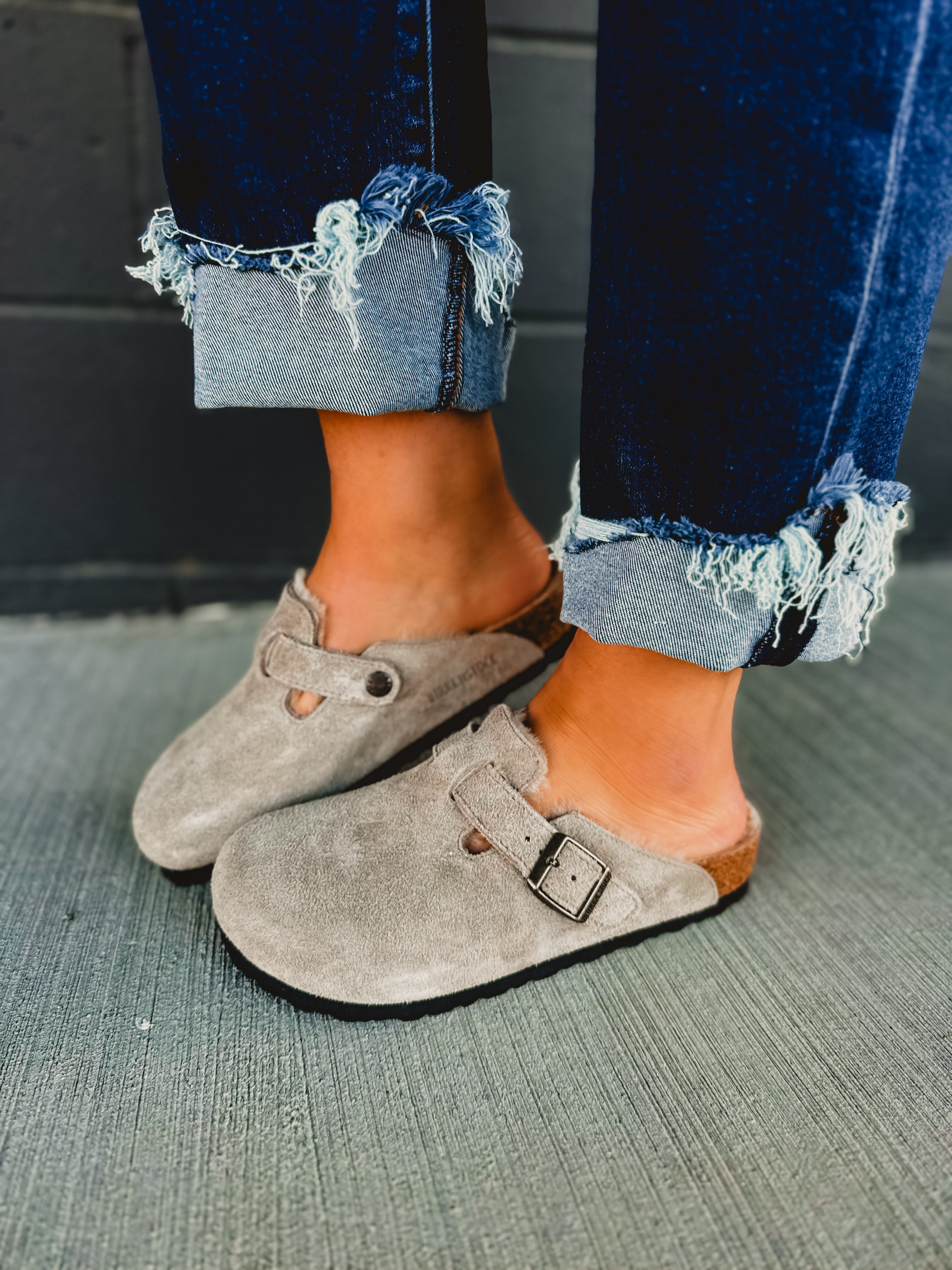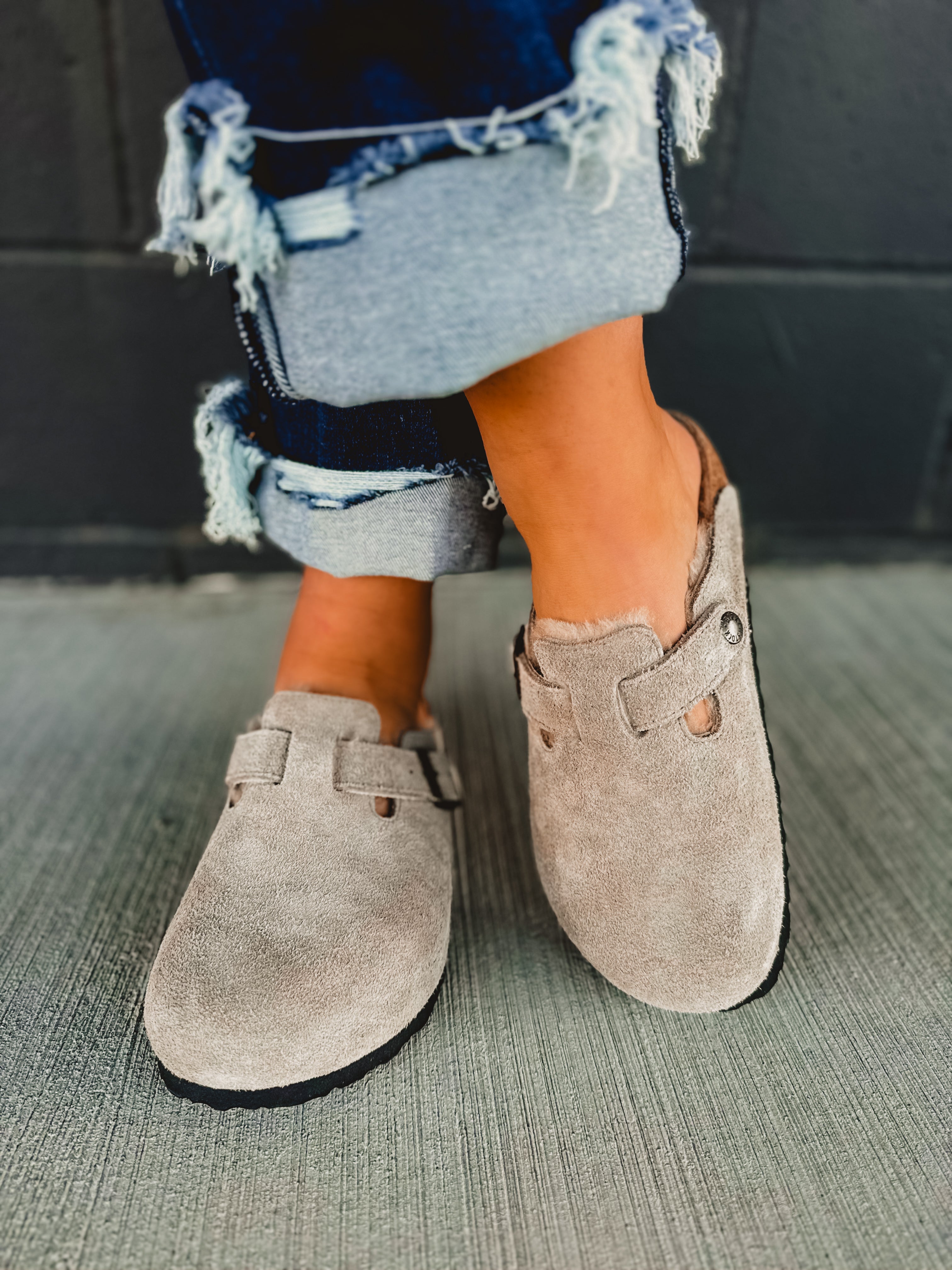Birkenstock Boston Shearling Suede Clog - Taupe
