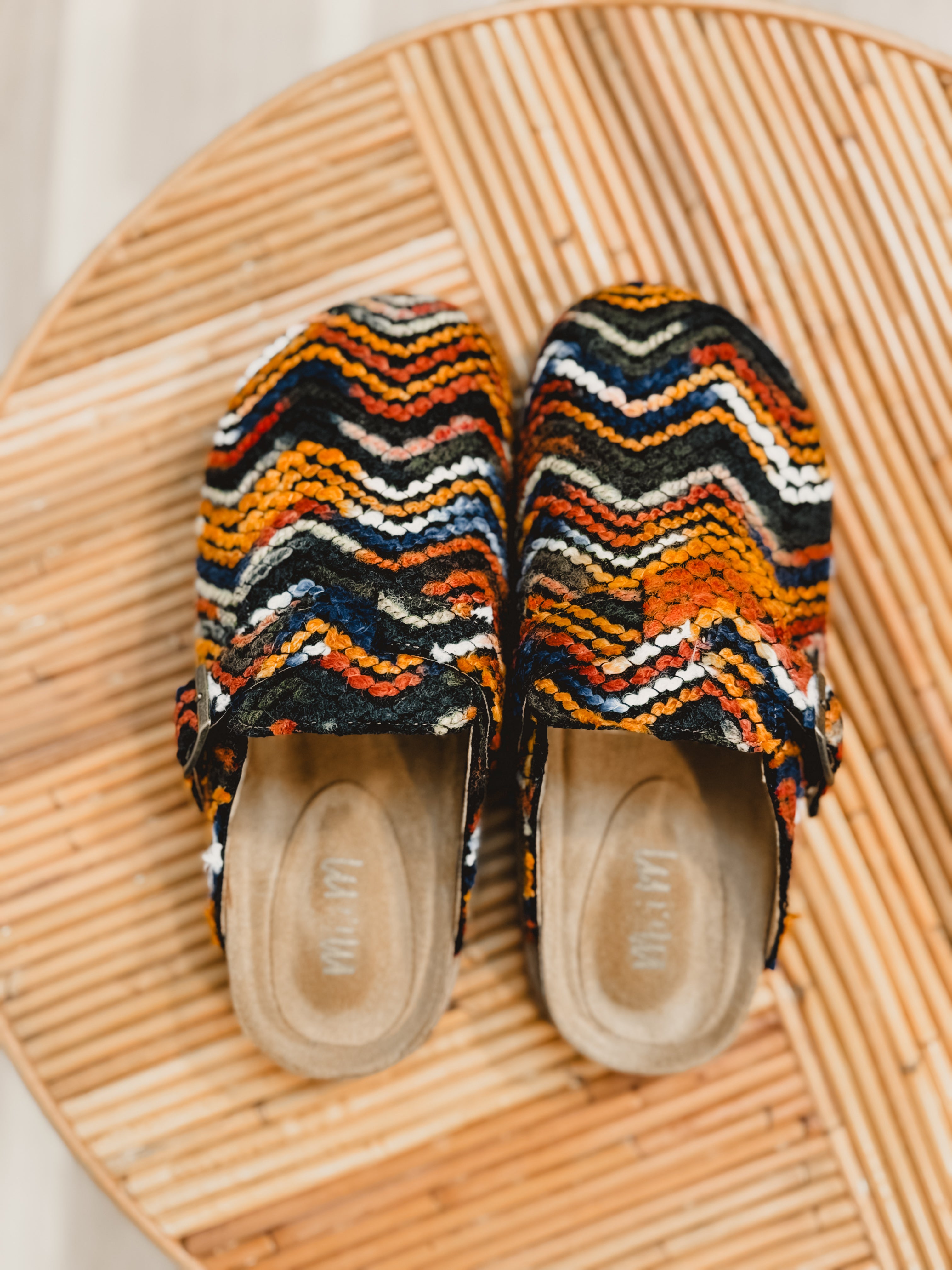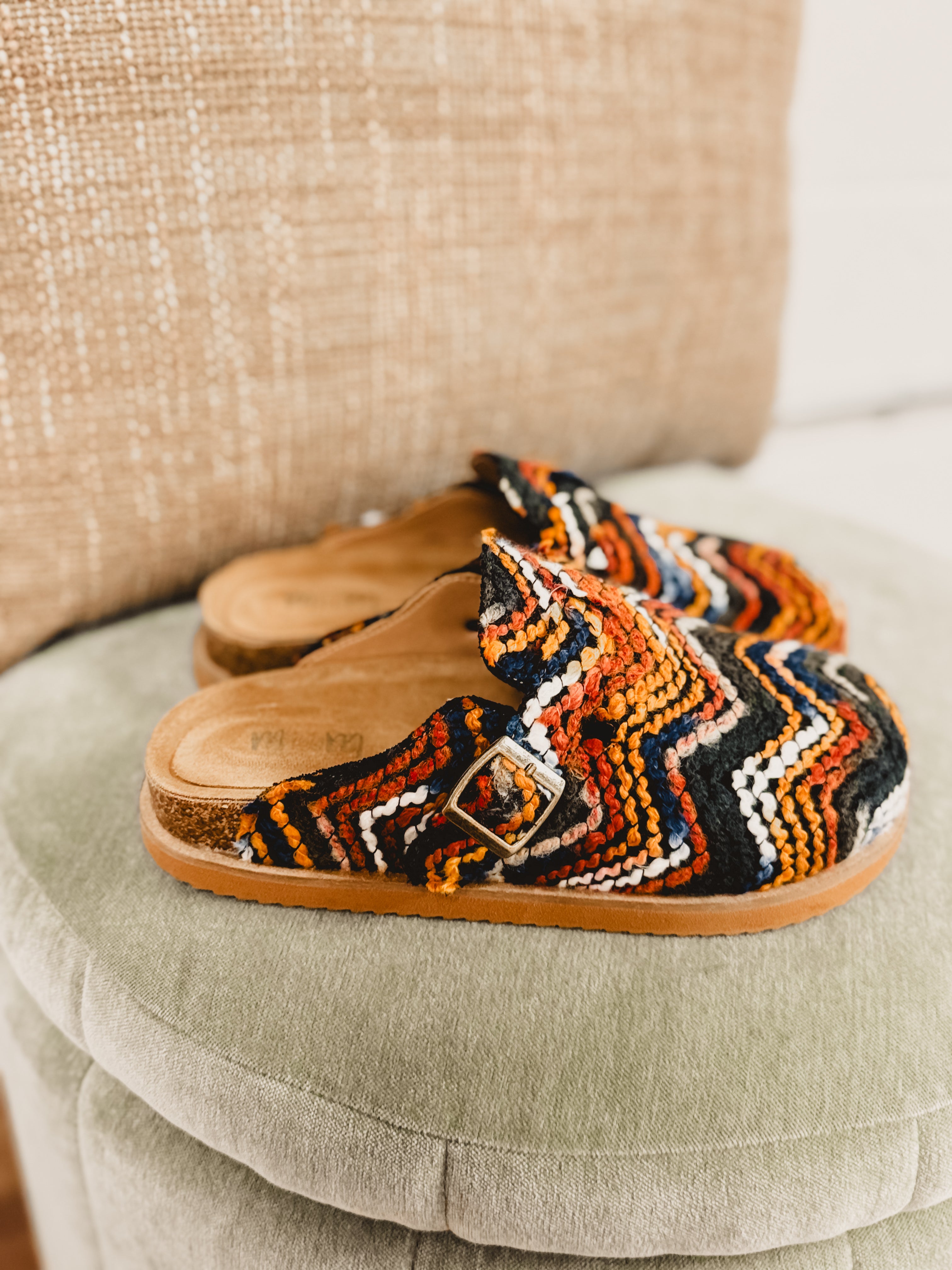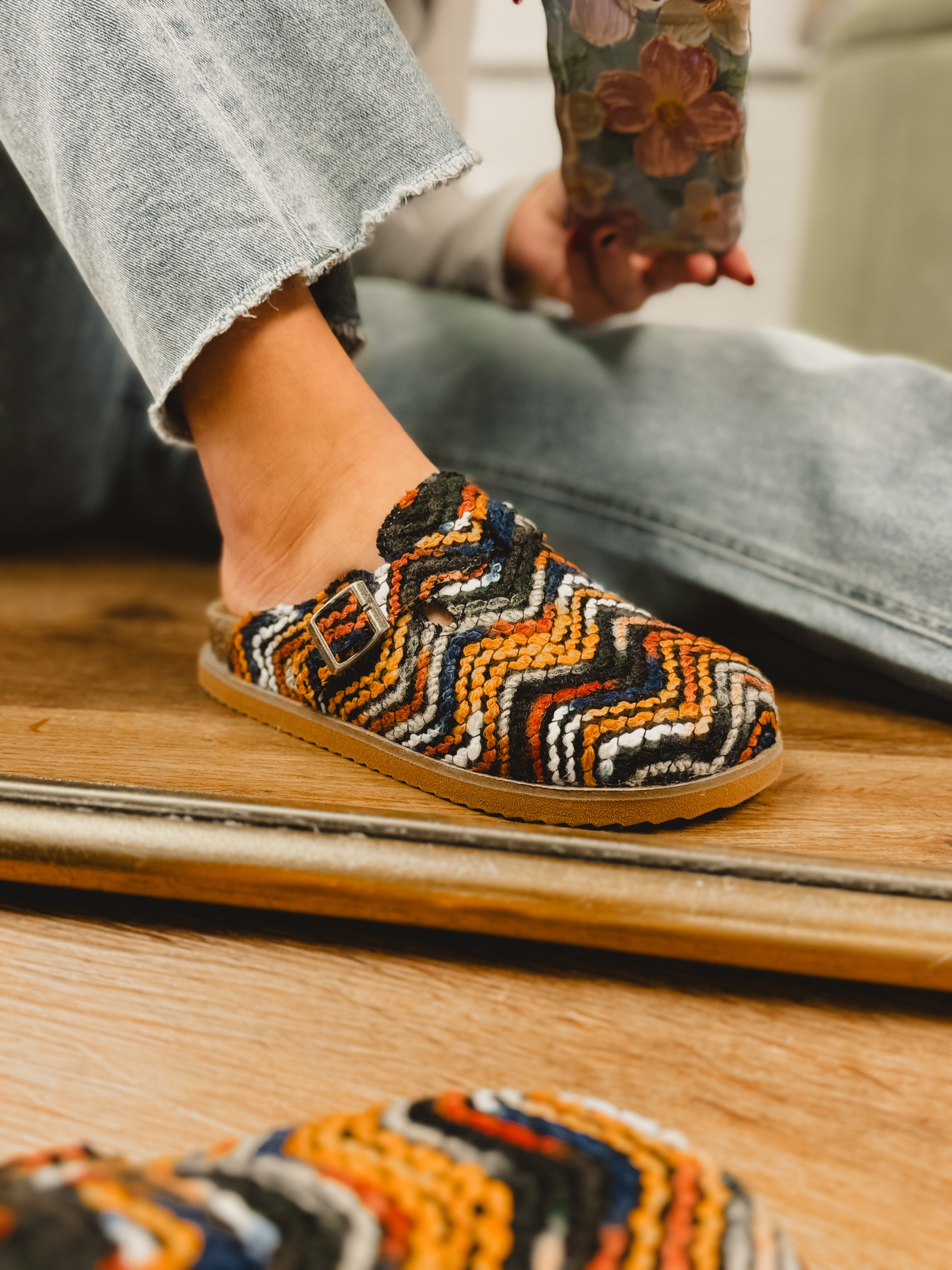 Slide into effortless comfort and cozy style with the multicolor capri suede clog. With its soft suede finish, woven boho accents, and easy slip-on design, this clog brings a relaxed yet stylish touch to your everyday wardrobe. Perfect for running errands, lounging, or casual outings, it’s a go-to shoe that feels as good as it looks.