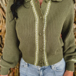 Soft and versatile, this piece combines cozy texture with a feminine collar for a style that’s equal parts chic and comfortable.
