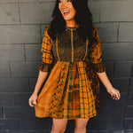 Fit & Flare Boho Patchwork Mini Dress - Camel