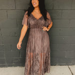 With its midnight hue and delicate lace overlay, this flowing maxi dress captures a romantic, sophisticated feel perfect for evening gatherings or formal occasions.