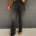 These washed black high rise dad jeans offer a relaxed fit with a vintage vibe, making them a versatile staple for everyday style.