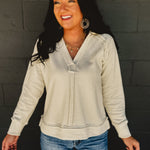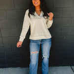 Soft and relaxed, this cream hooded long sleeve top with raw edge detailing is the perfect blend of casual comfort and effortless style.
