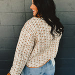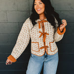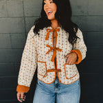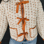 Quilted Bow Tie Puffer Jacket - Cream Multi