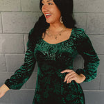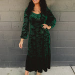 Velvet Embossed Long Sleeve Maxi Dress - Emerald