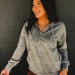 Washed Hooded Button Detail Top - Stone
