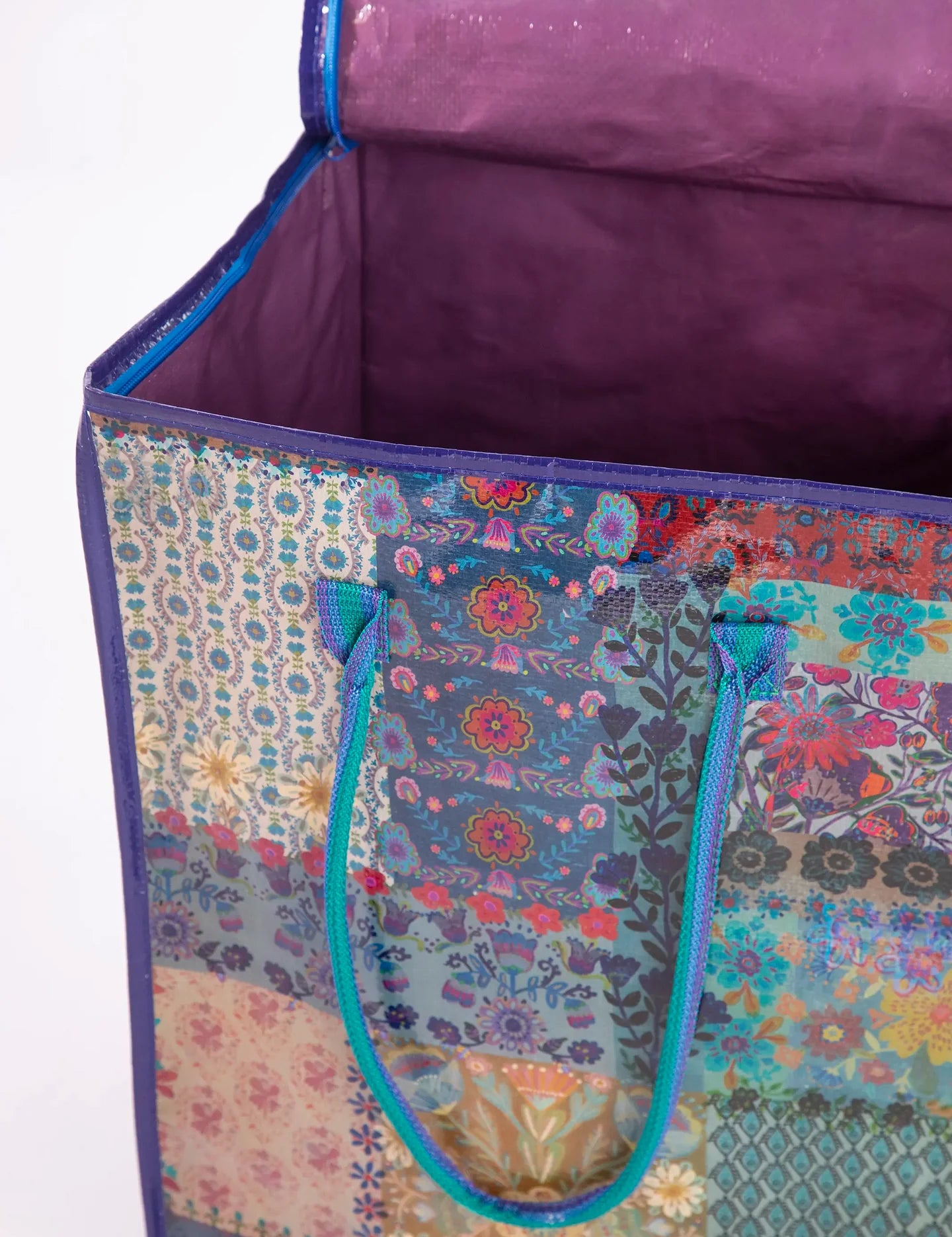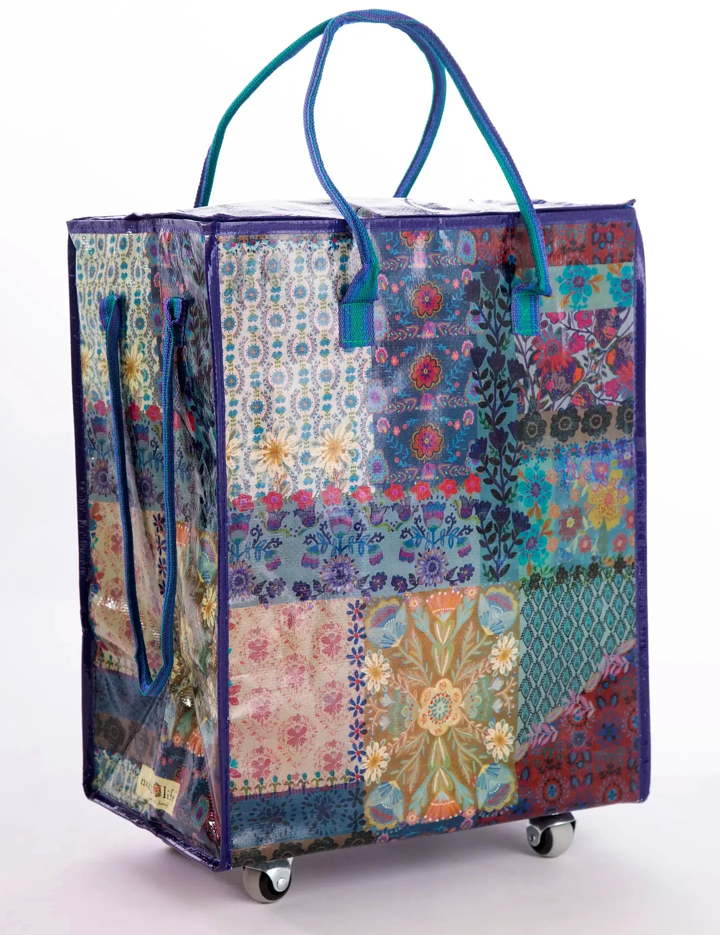 Natural Life Rolling Tote Bag - Blue Patchwork