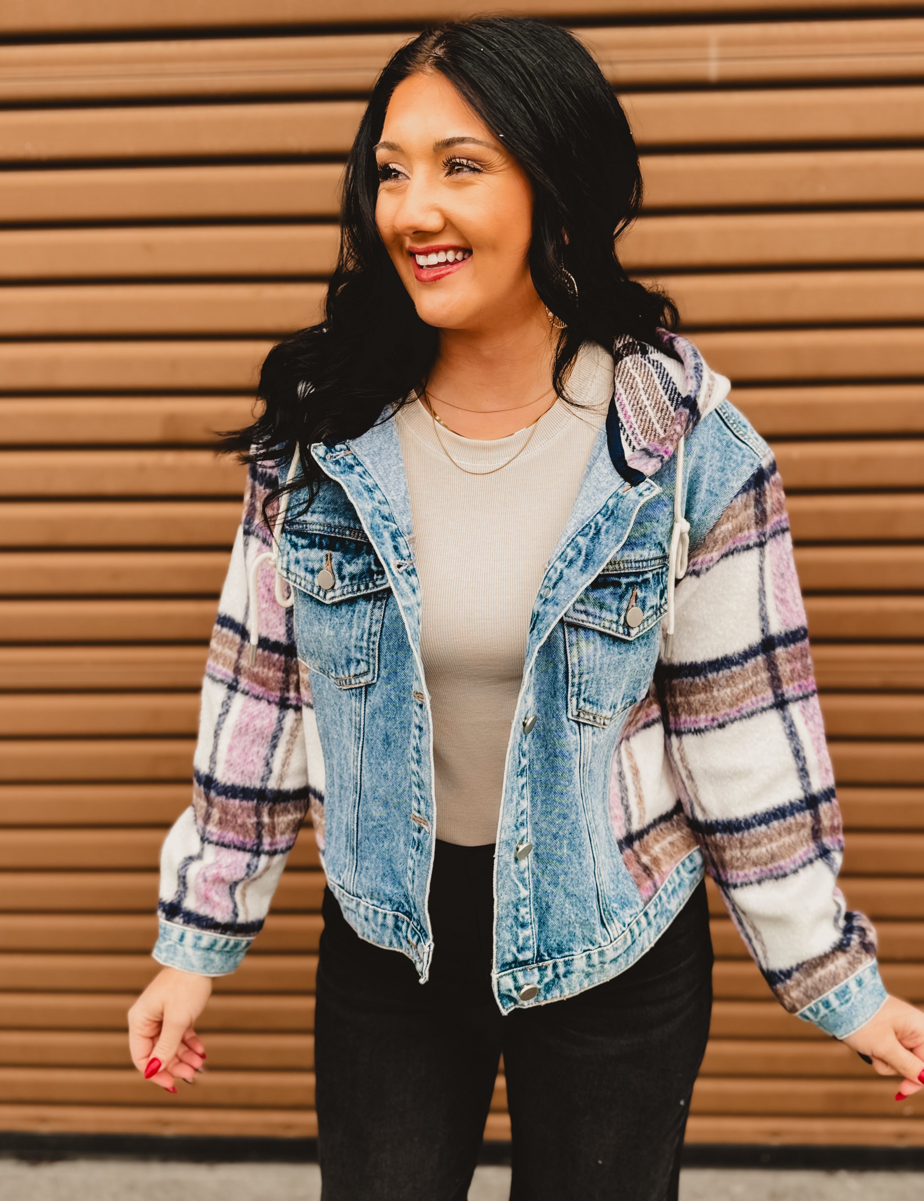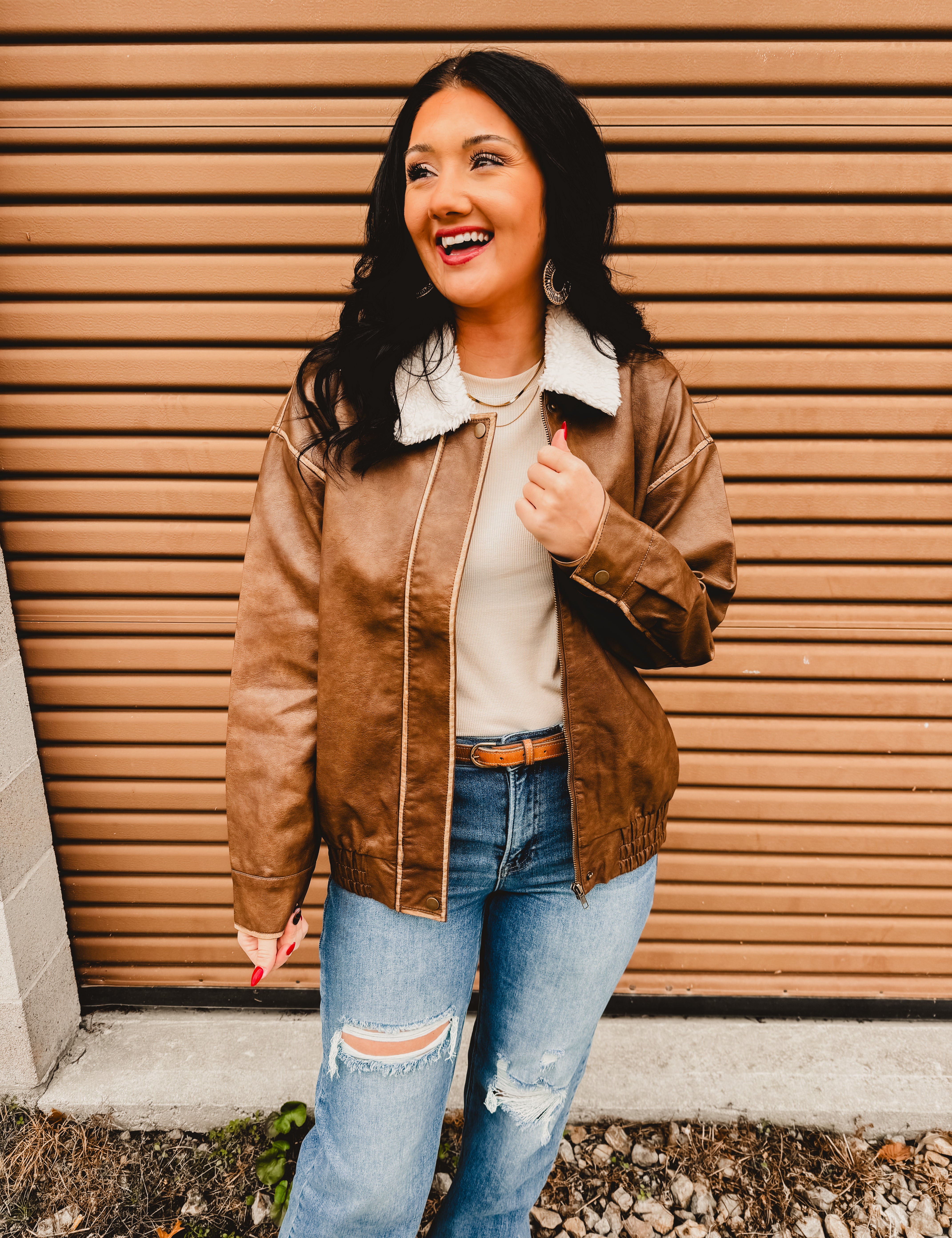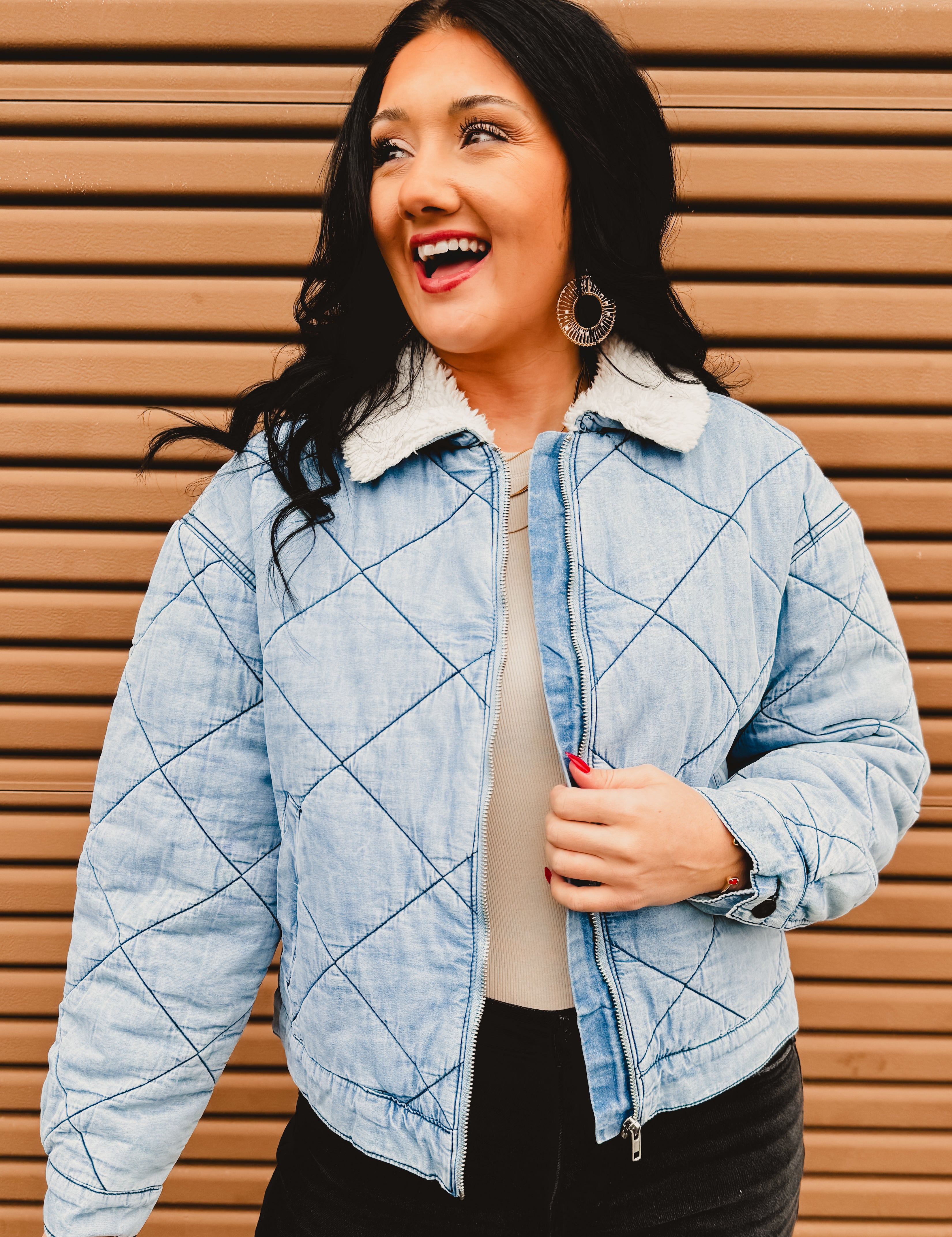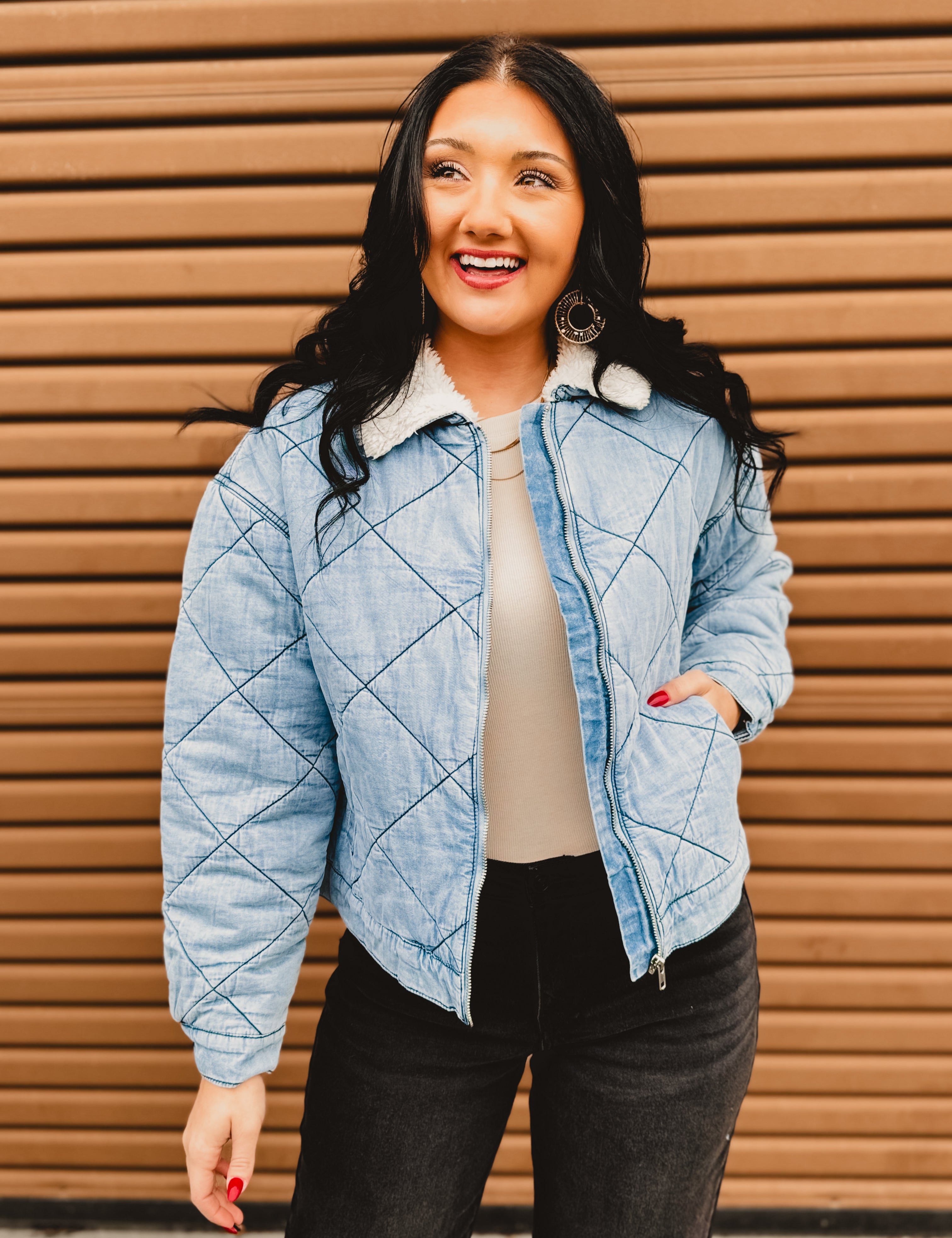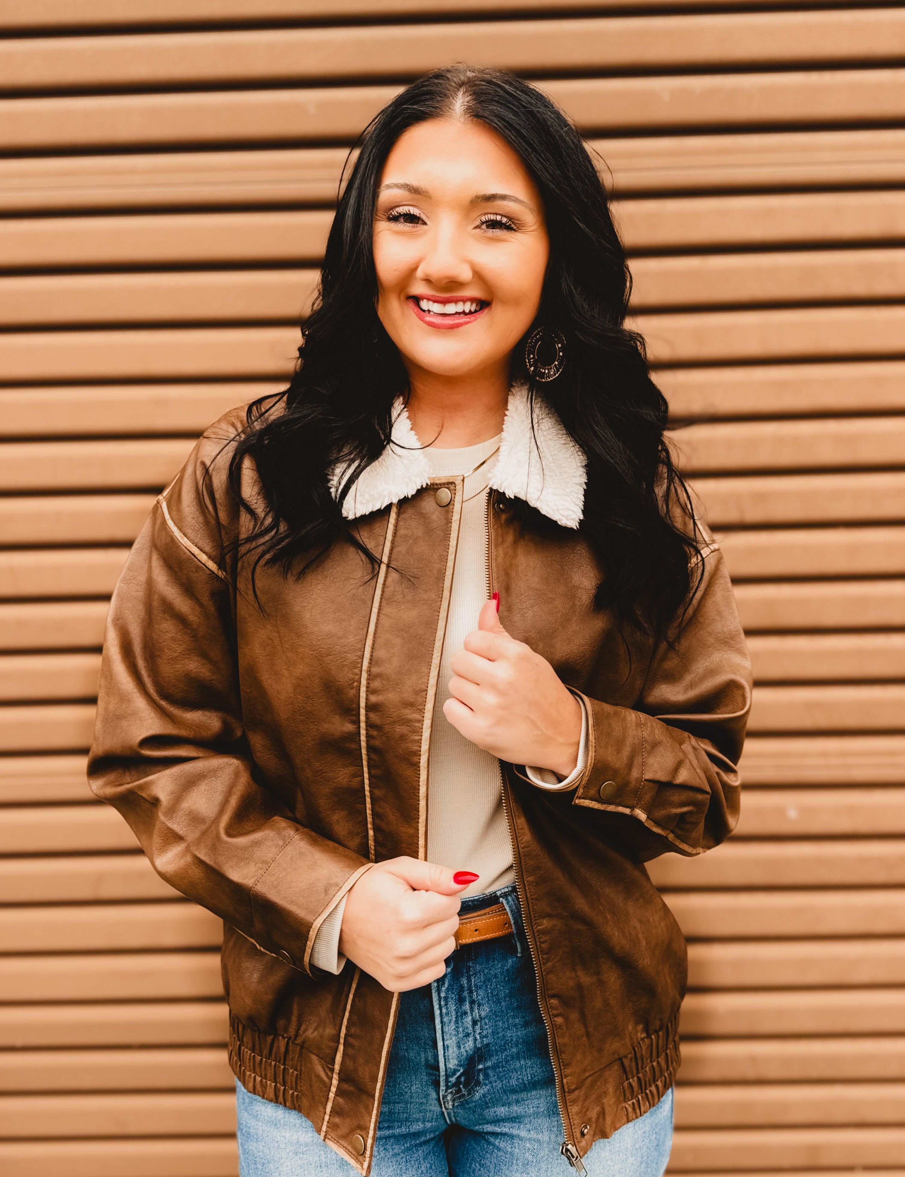 Color Block Quilted Button Down Jacket - Tobacco/Pink