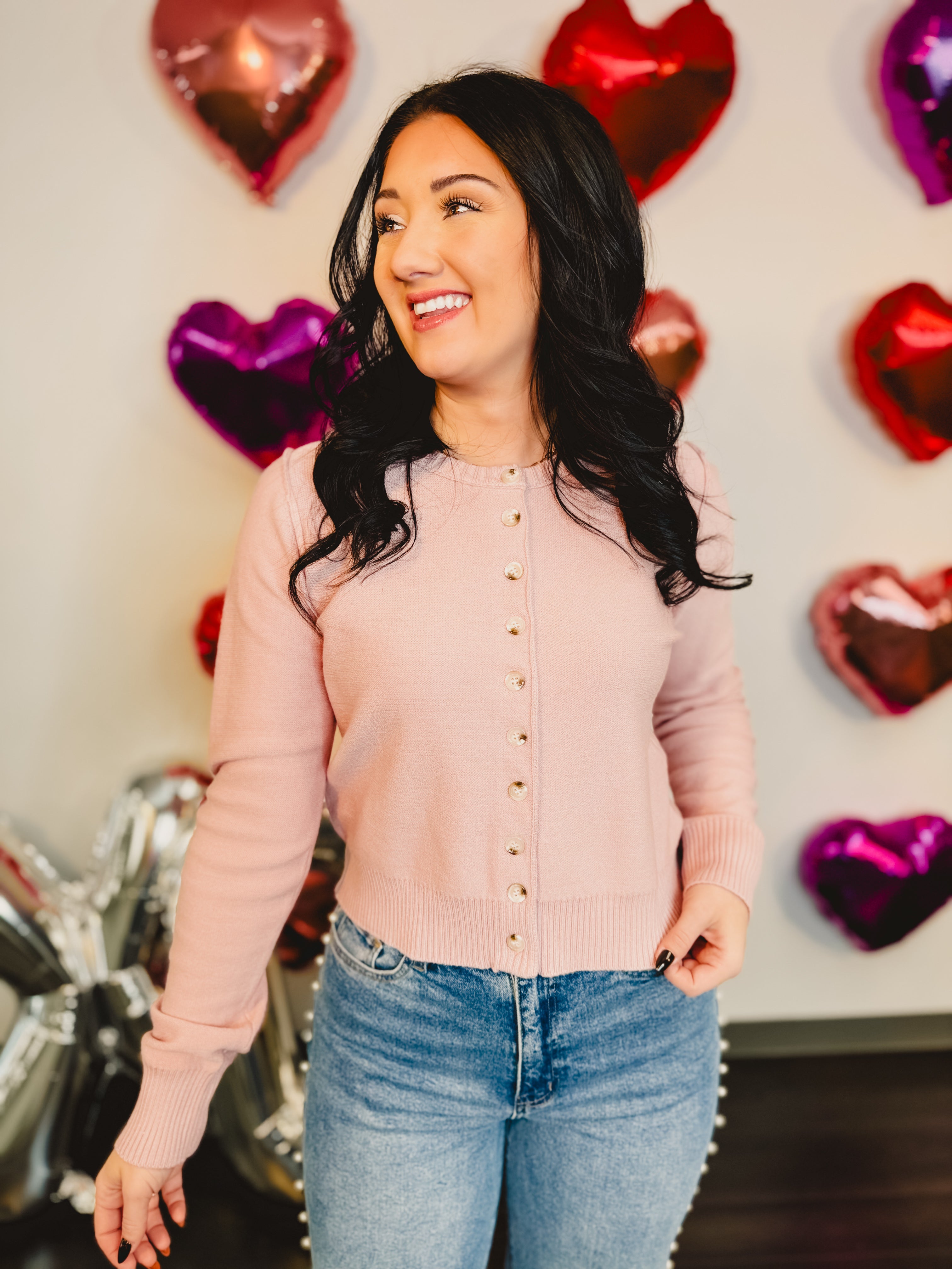 Effortlessly stylish and easy to wear, this soft knit cardigan is a versatile layering piece you’ll reach for season after season. The ballet pink hue and classic button-up design make it perfect for everyday wear, work, or casual outings.